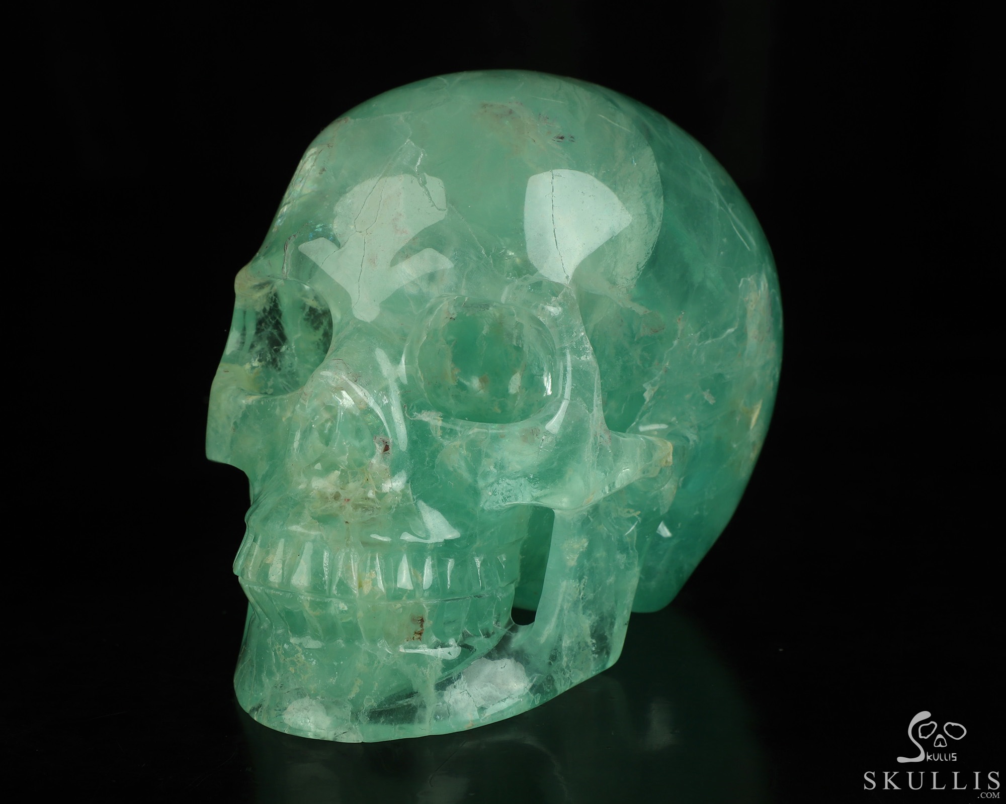 Huge 6.0" Fluorite Carved Crystal Skull, Super Realistic
