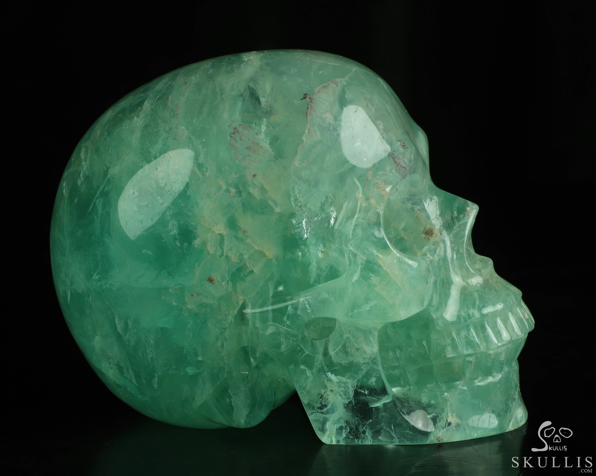 Super Realistic! Lifesized 9.1" Fluorite Hand Carved Crystal Skull, Crystal Healing