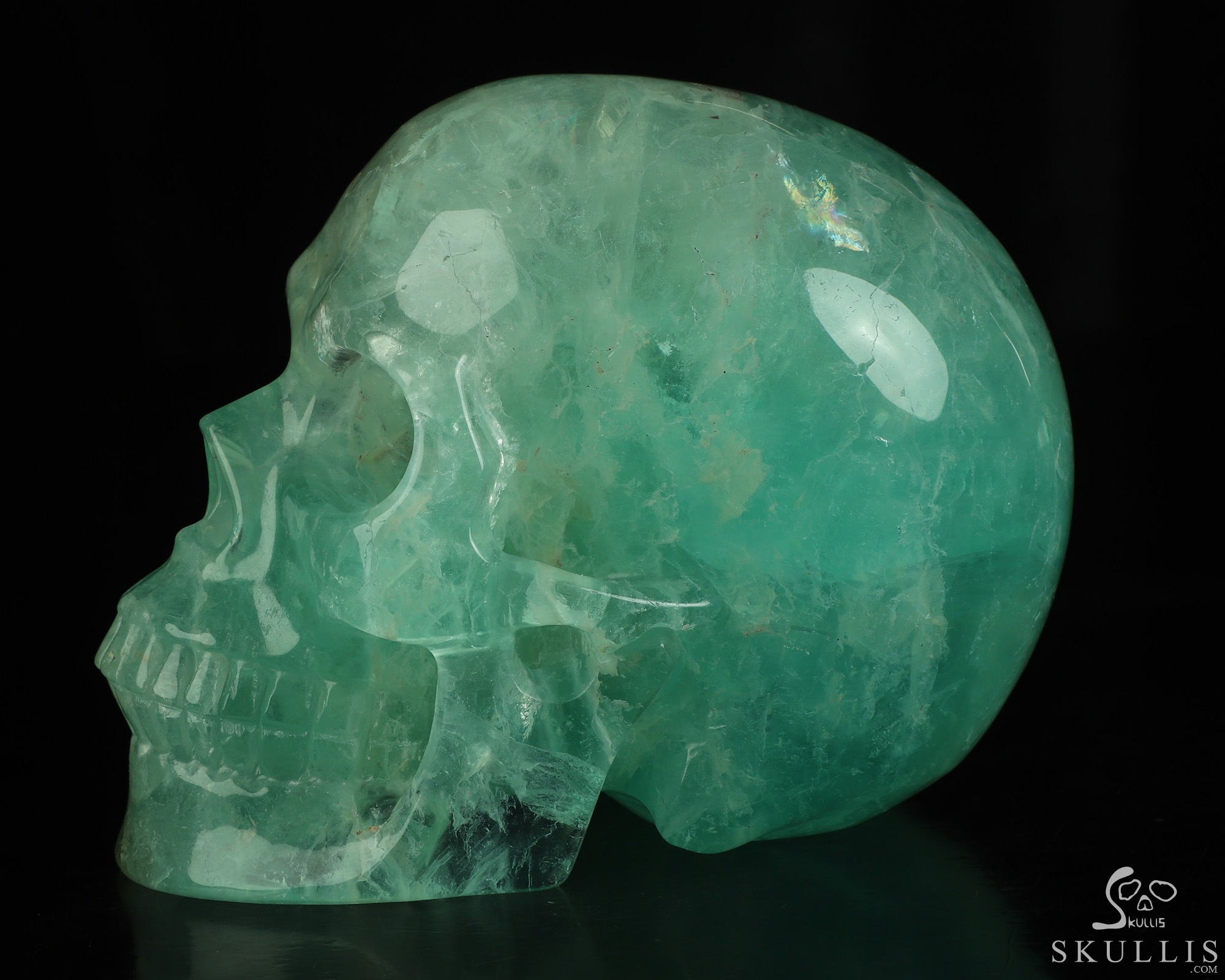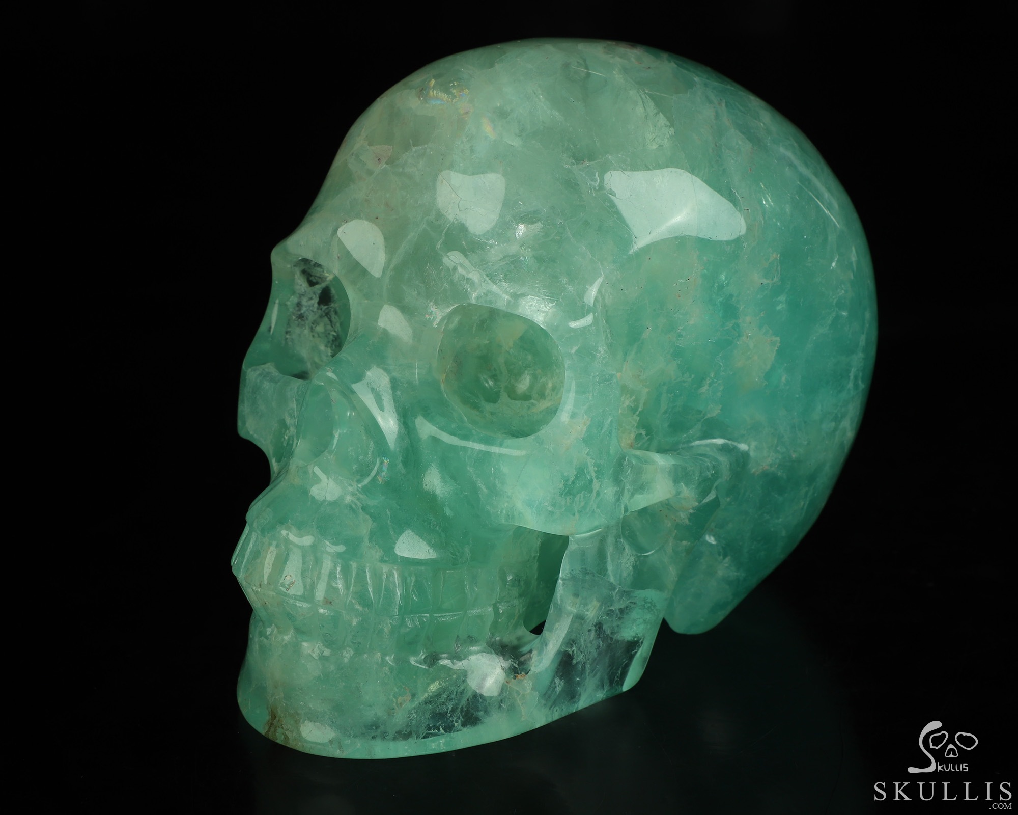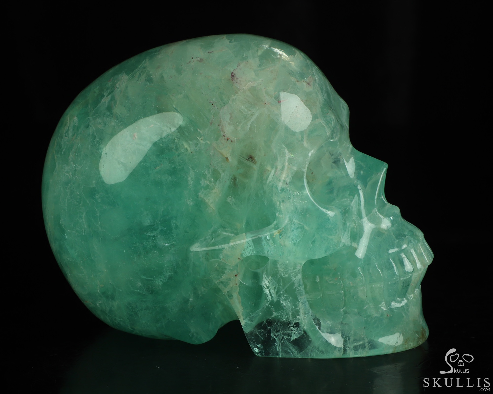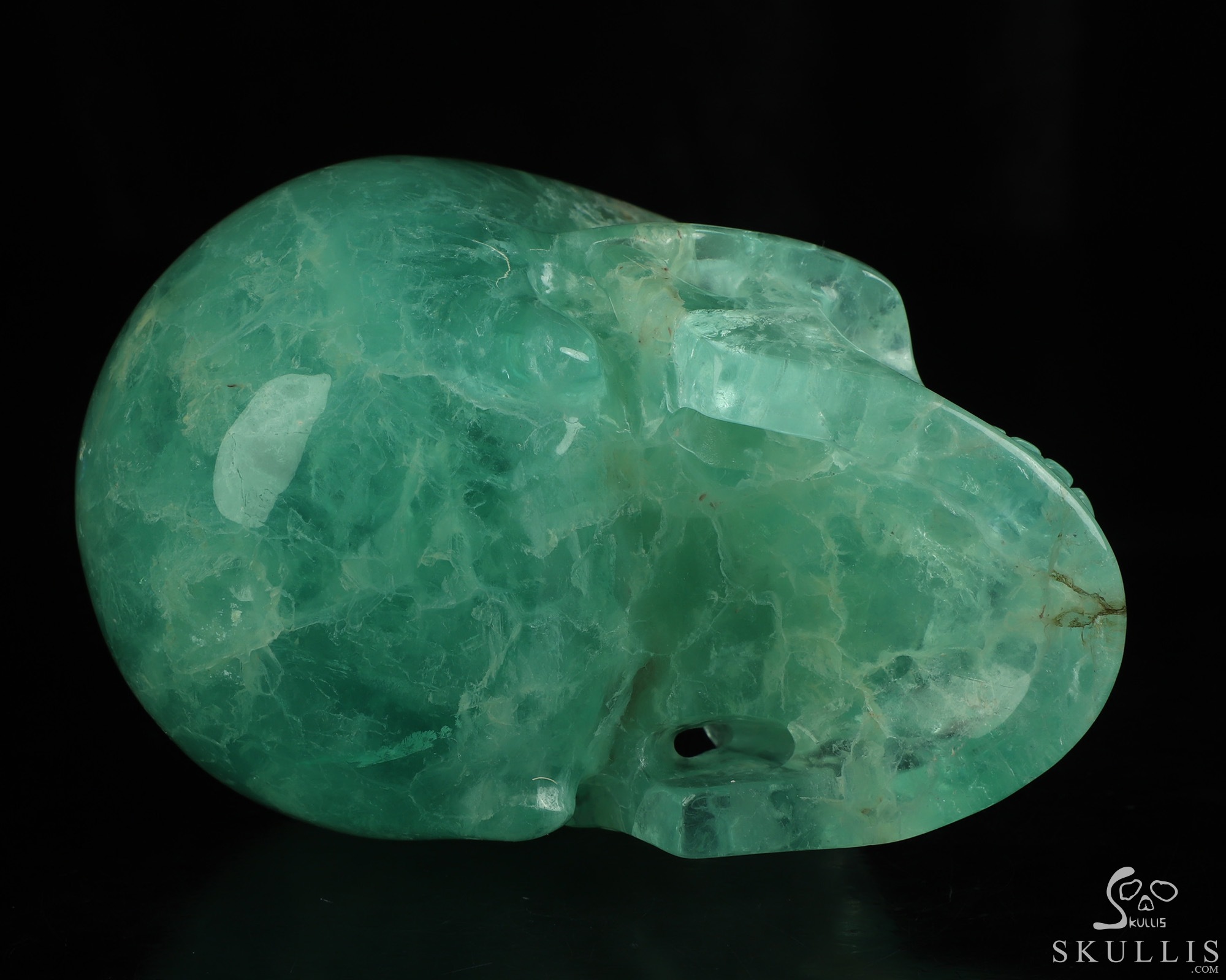 6.9" Fluorite Hand Carved Crystal Skull Fine Art Sculpture, Crystal Healing