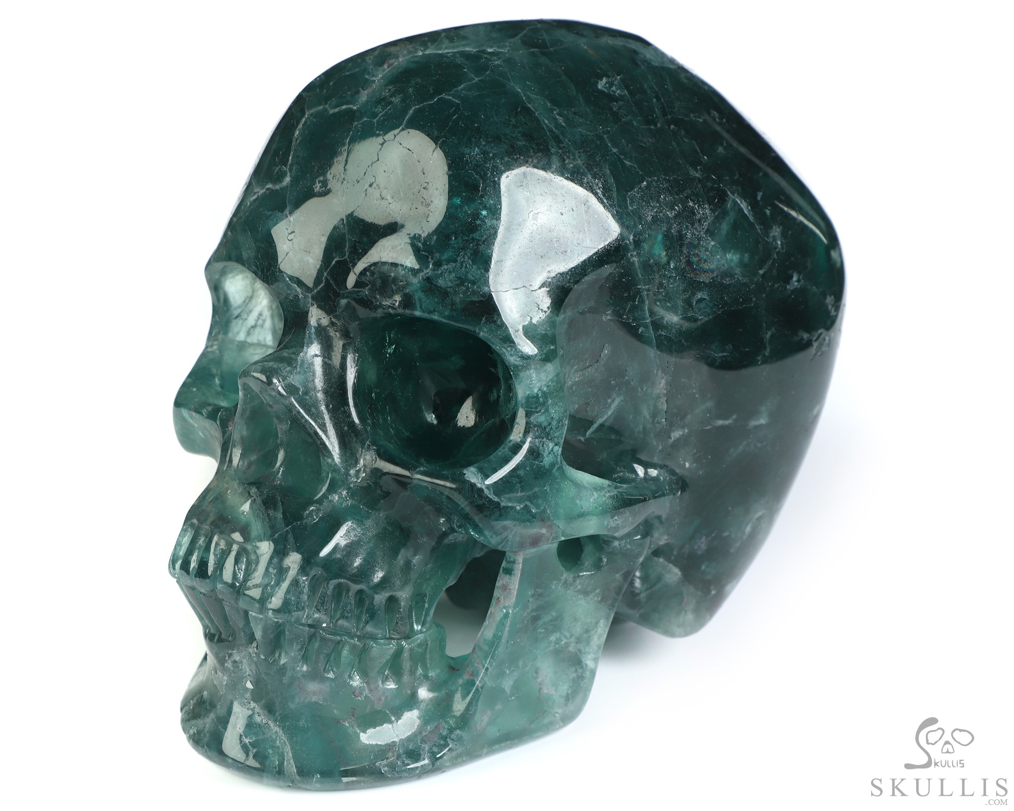 5.1" Fluorite Hand Carved Crystal Skull, Super Realistic, Crystal Healing