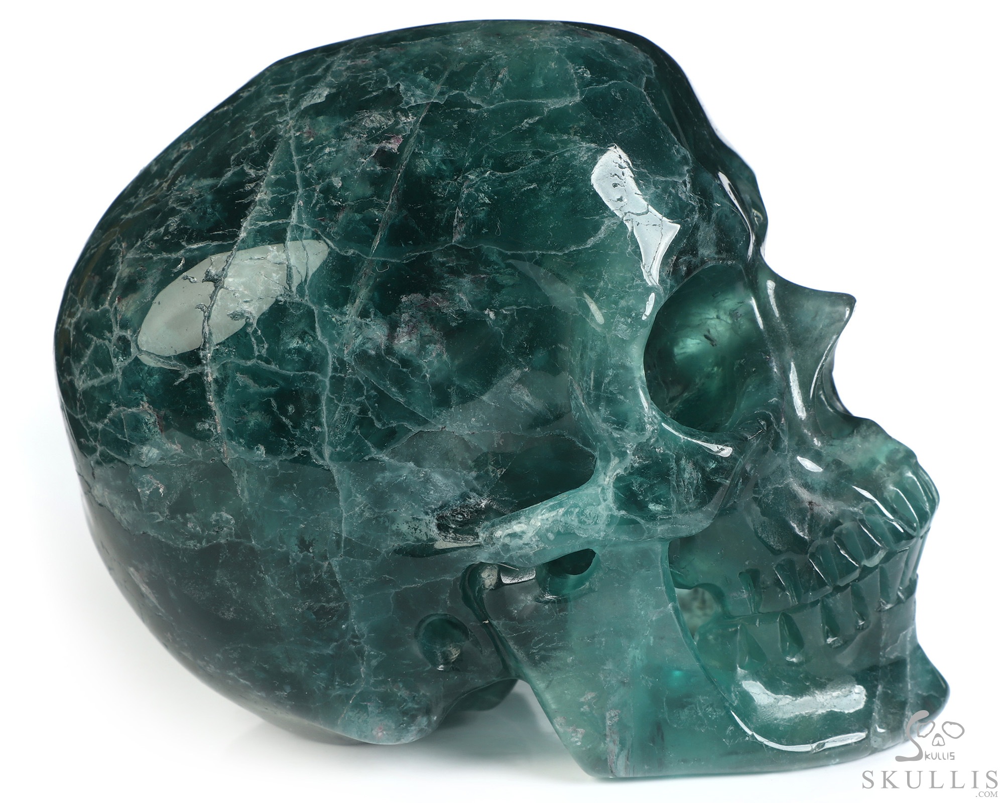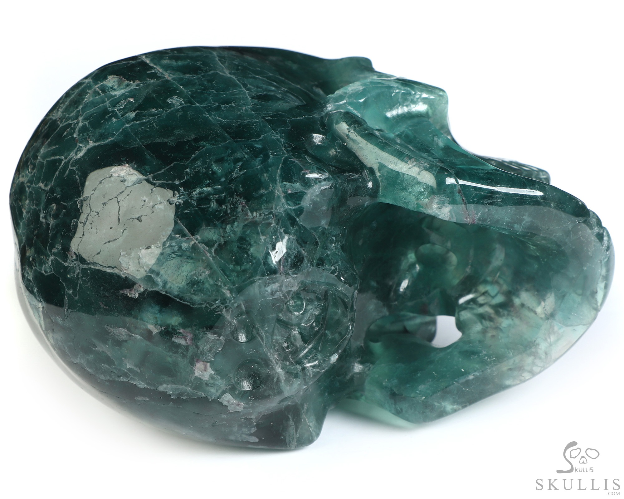 5.1" Fluorite Carved Crystal Headset Skull, Crystal Healing