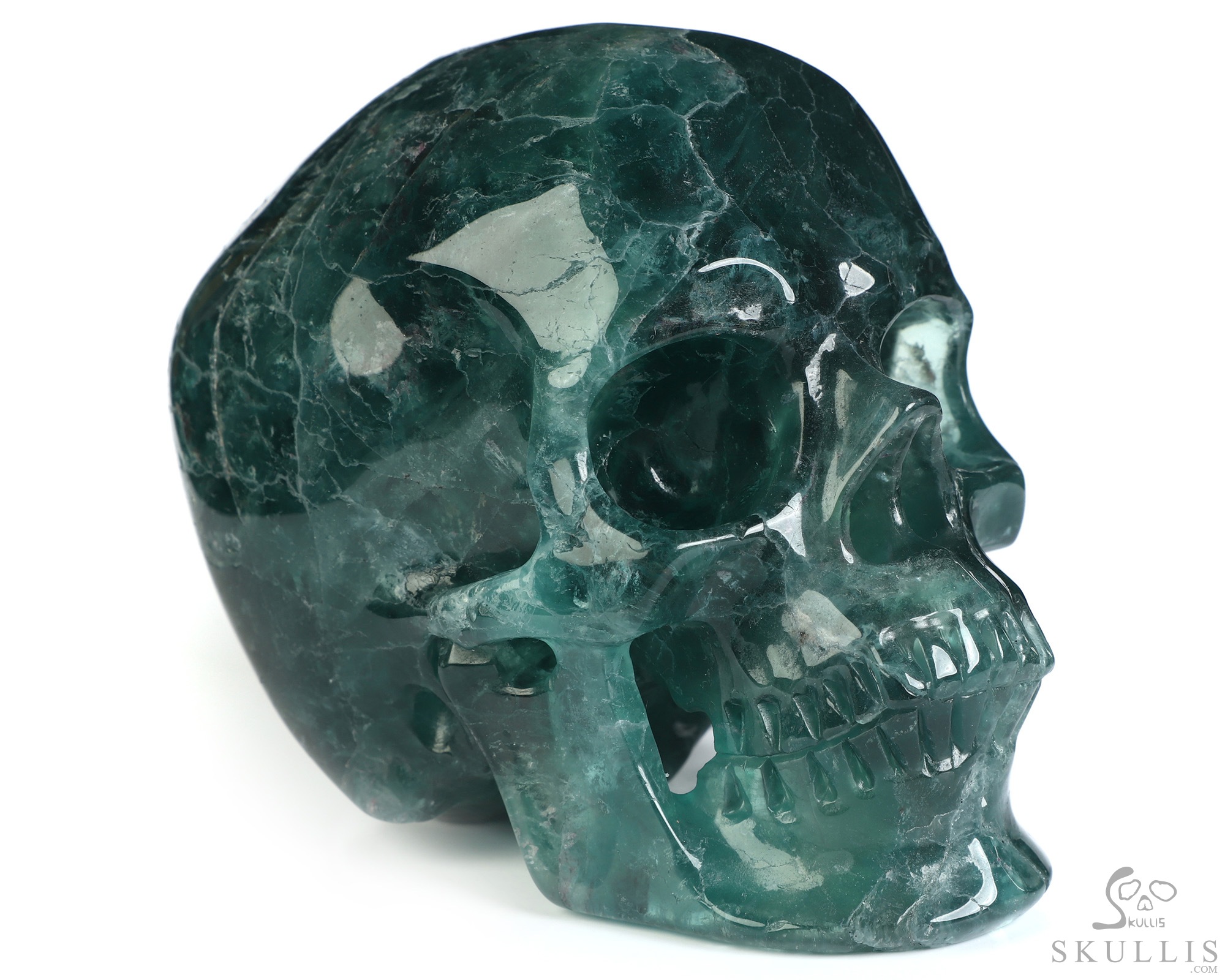 5.0" Fluorite Hand Carved Crystal Skull, Super Realistic, Crystal Healing