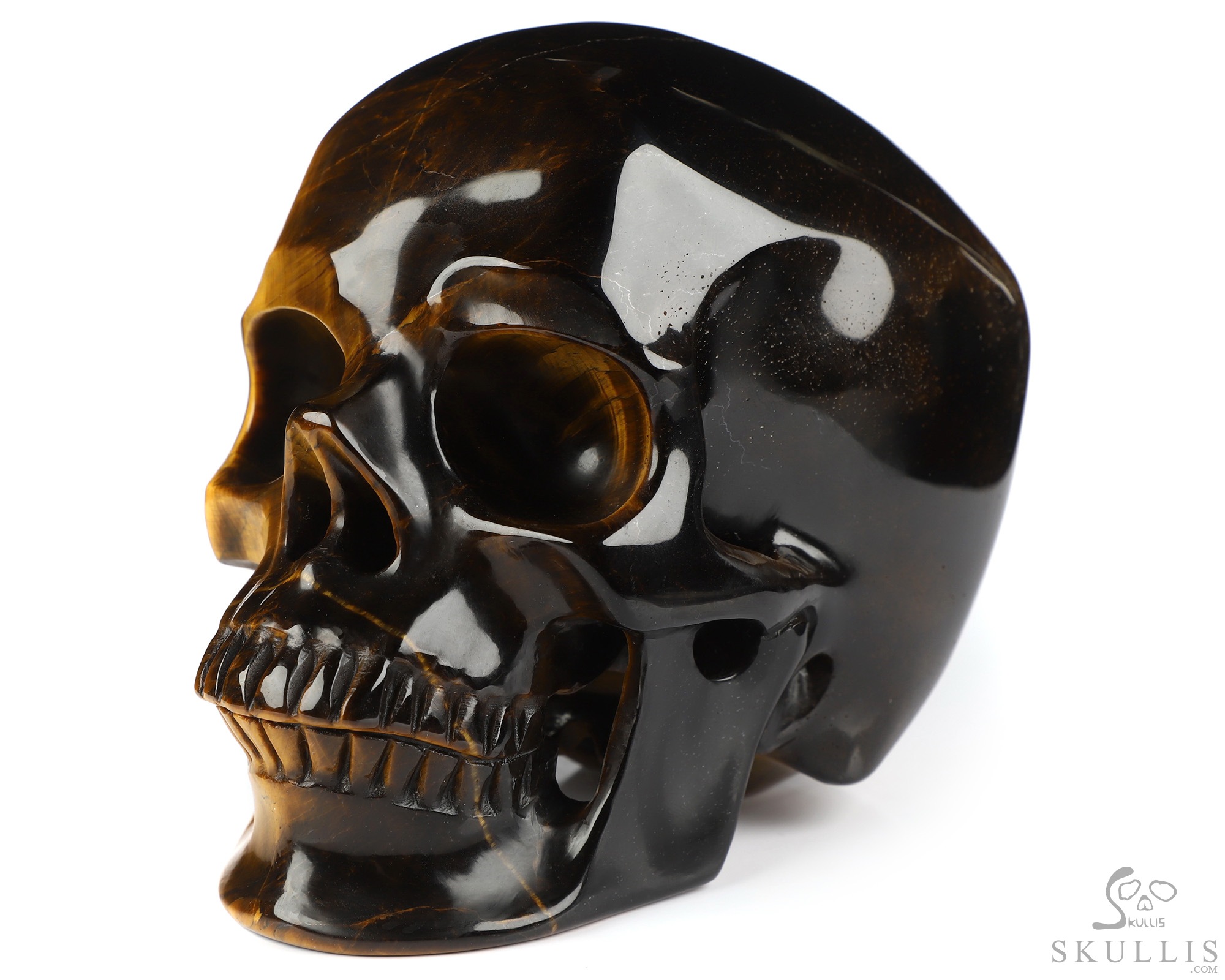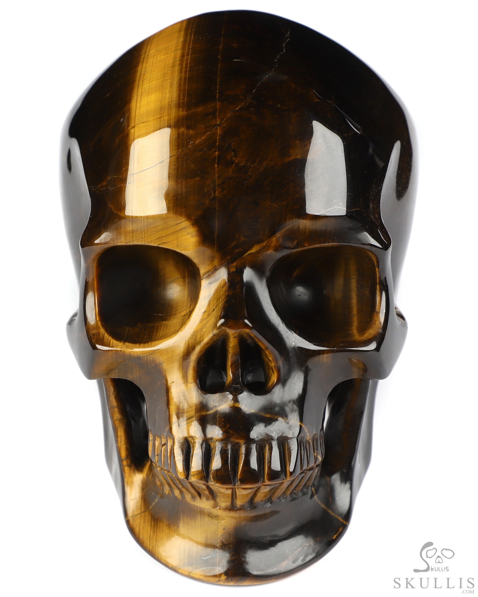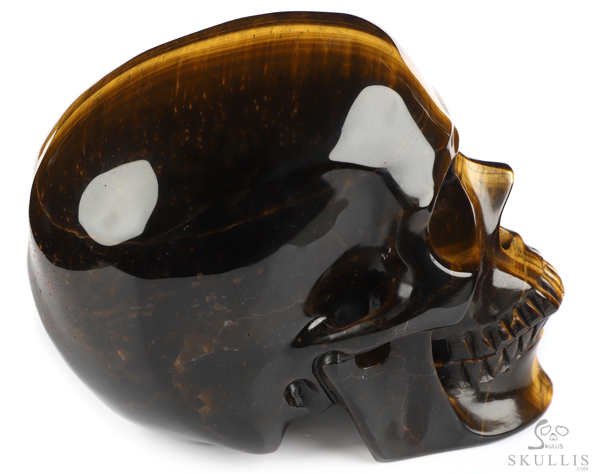 5.0" Gold Tiger's Eye Hand Carved Crystal Skull, Super Realistic, Crystal Healing