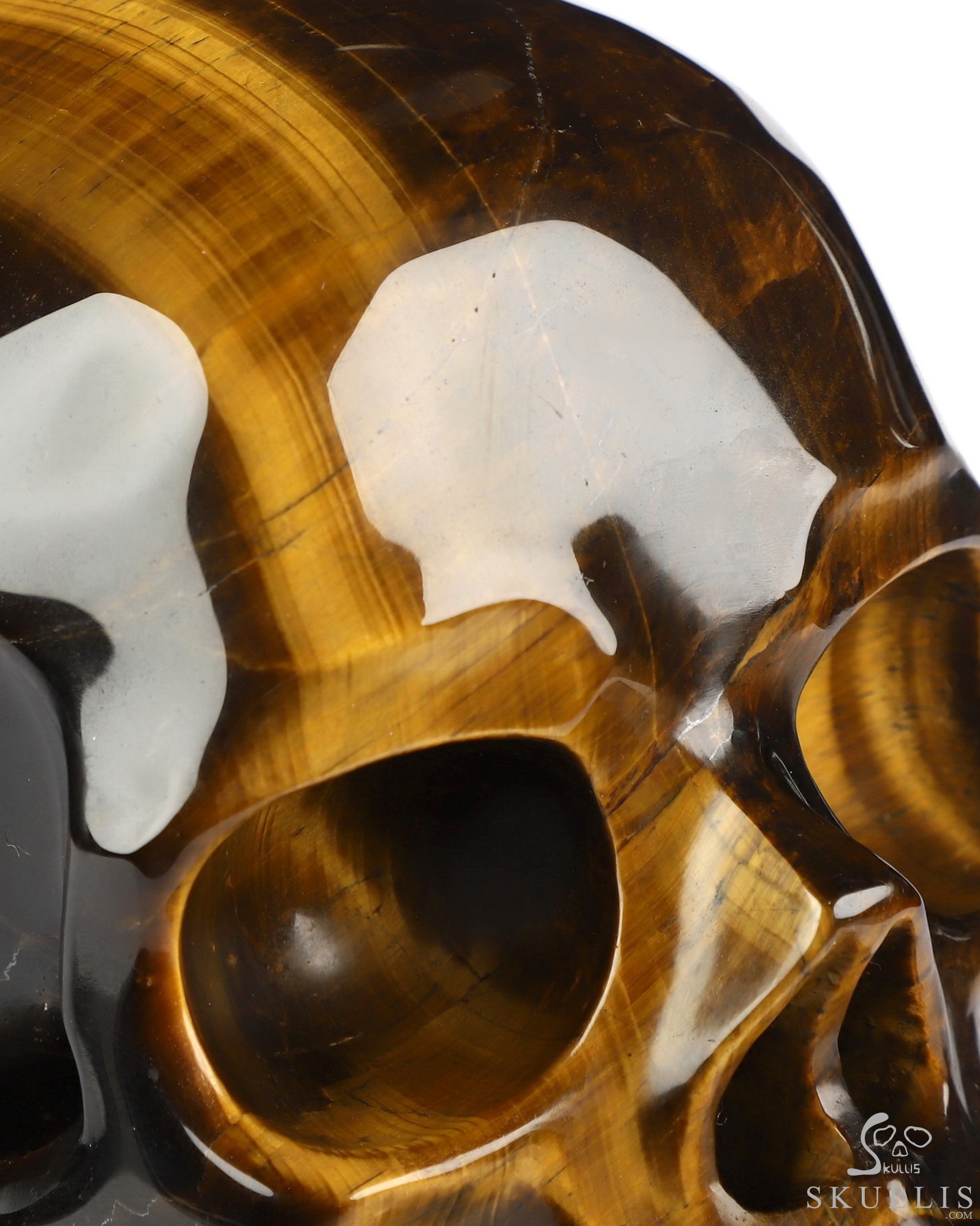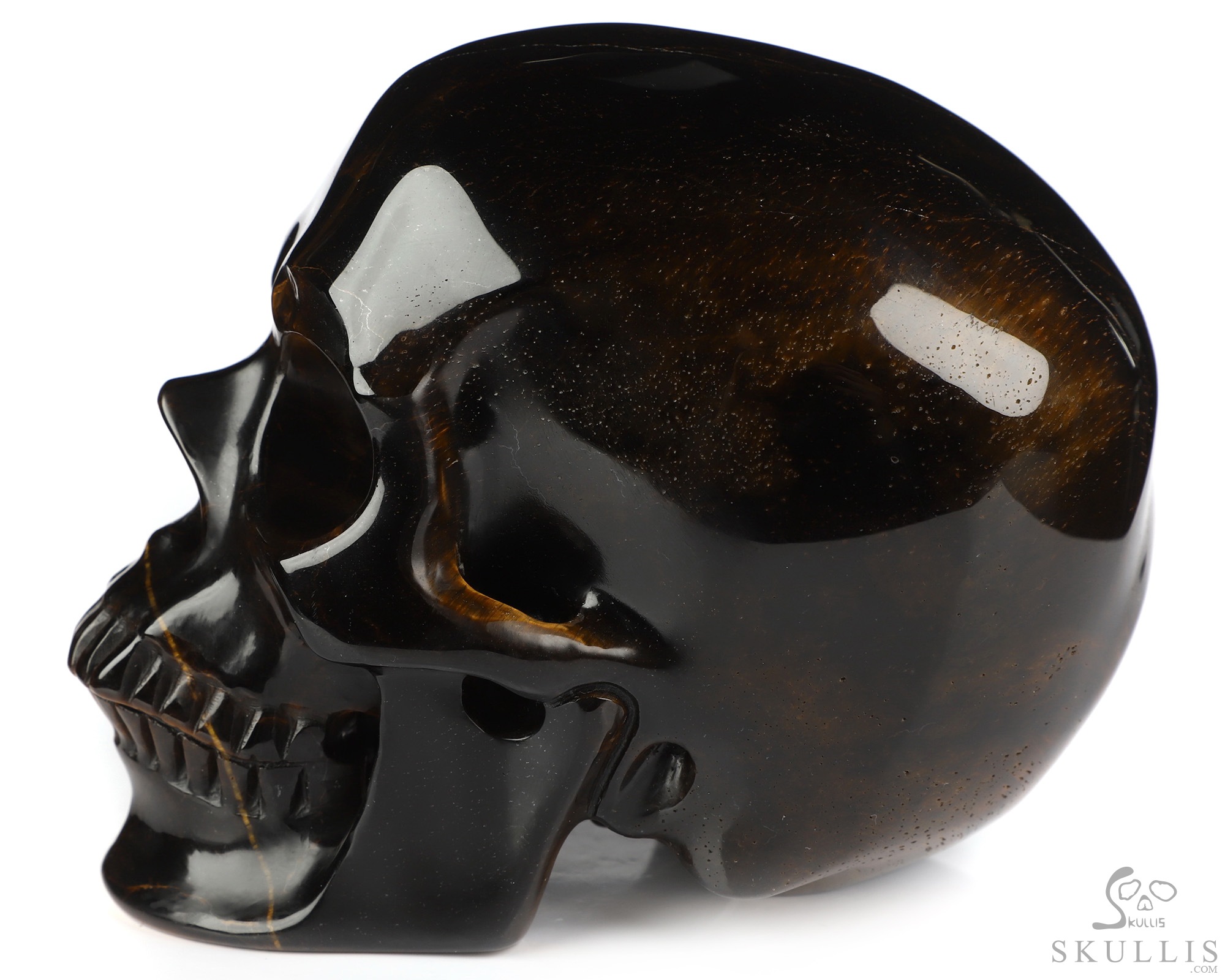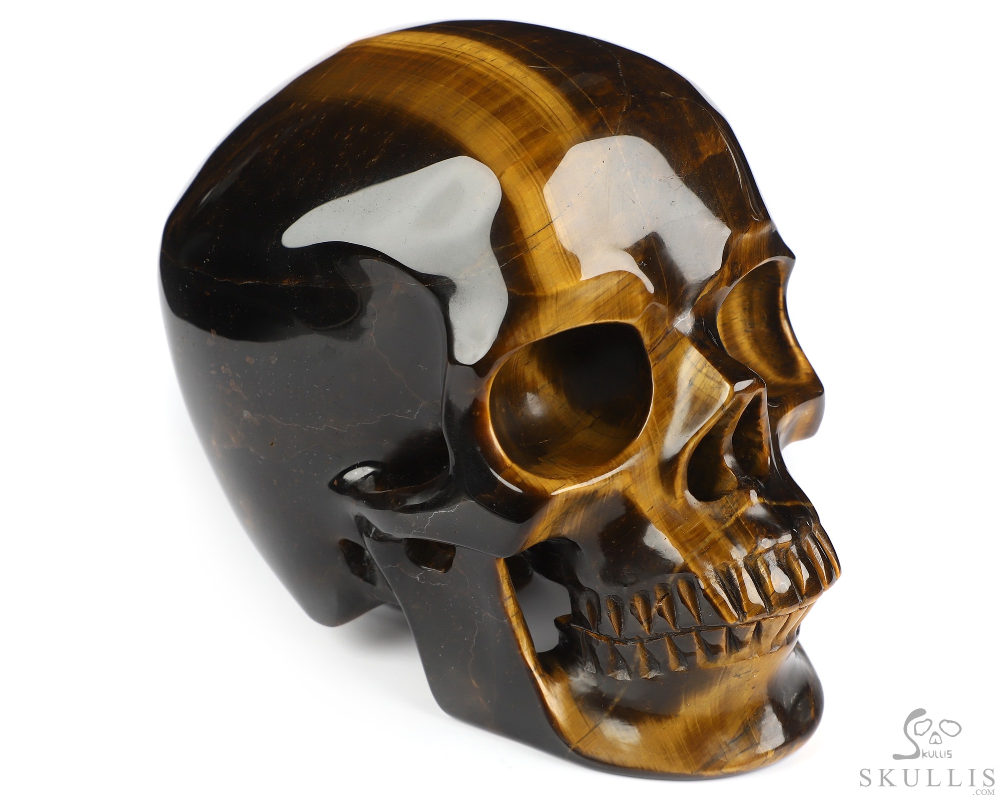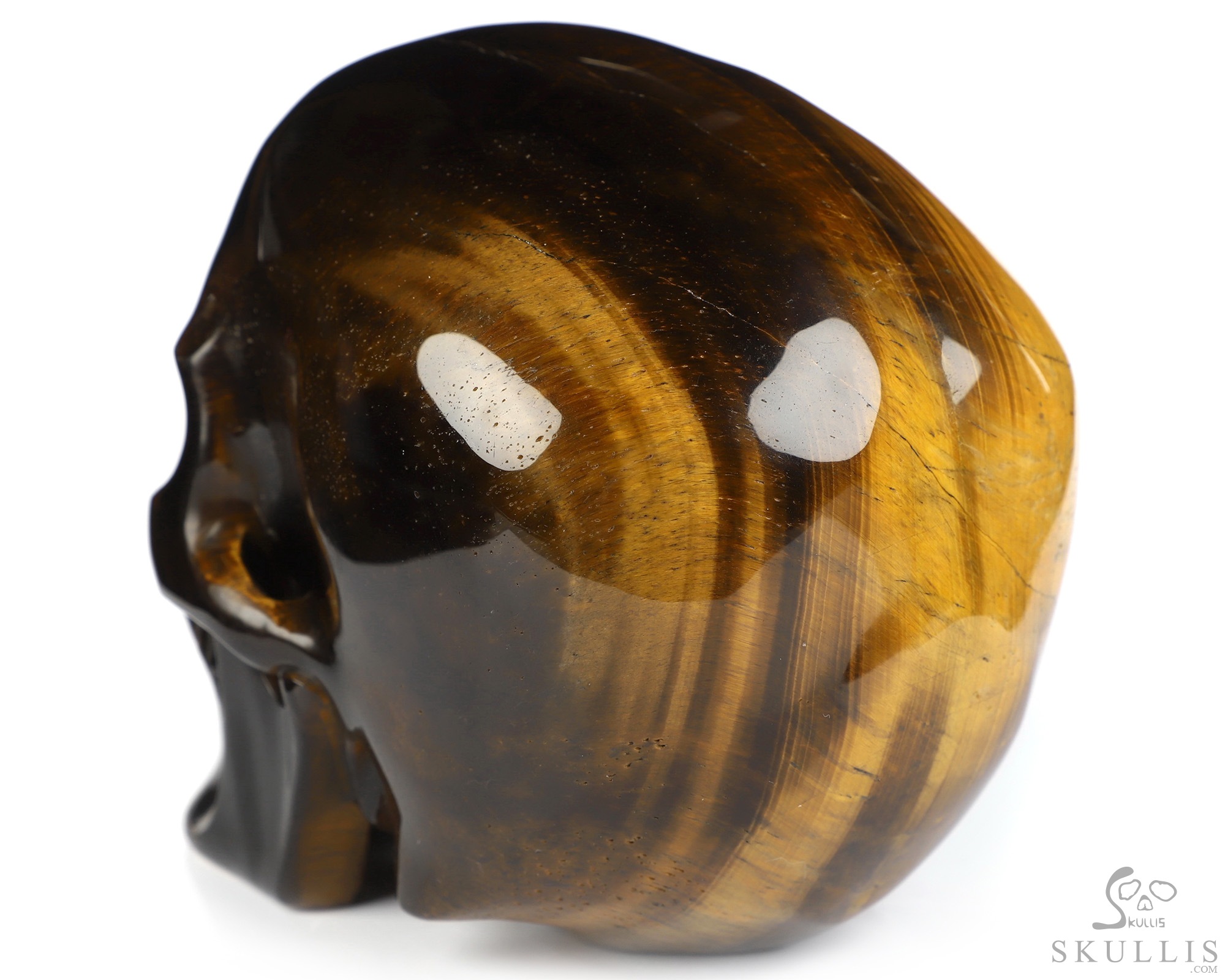 5.0" Gold Tiger's Eye Hand Carved Crystal Skull, Super Realistic, Crystal Healing