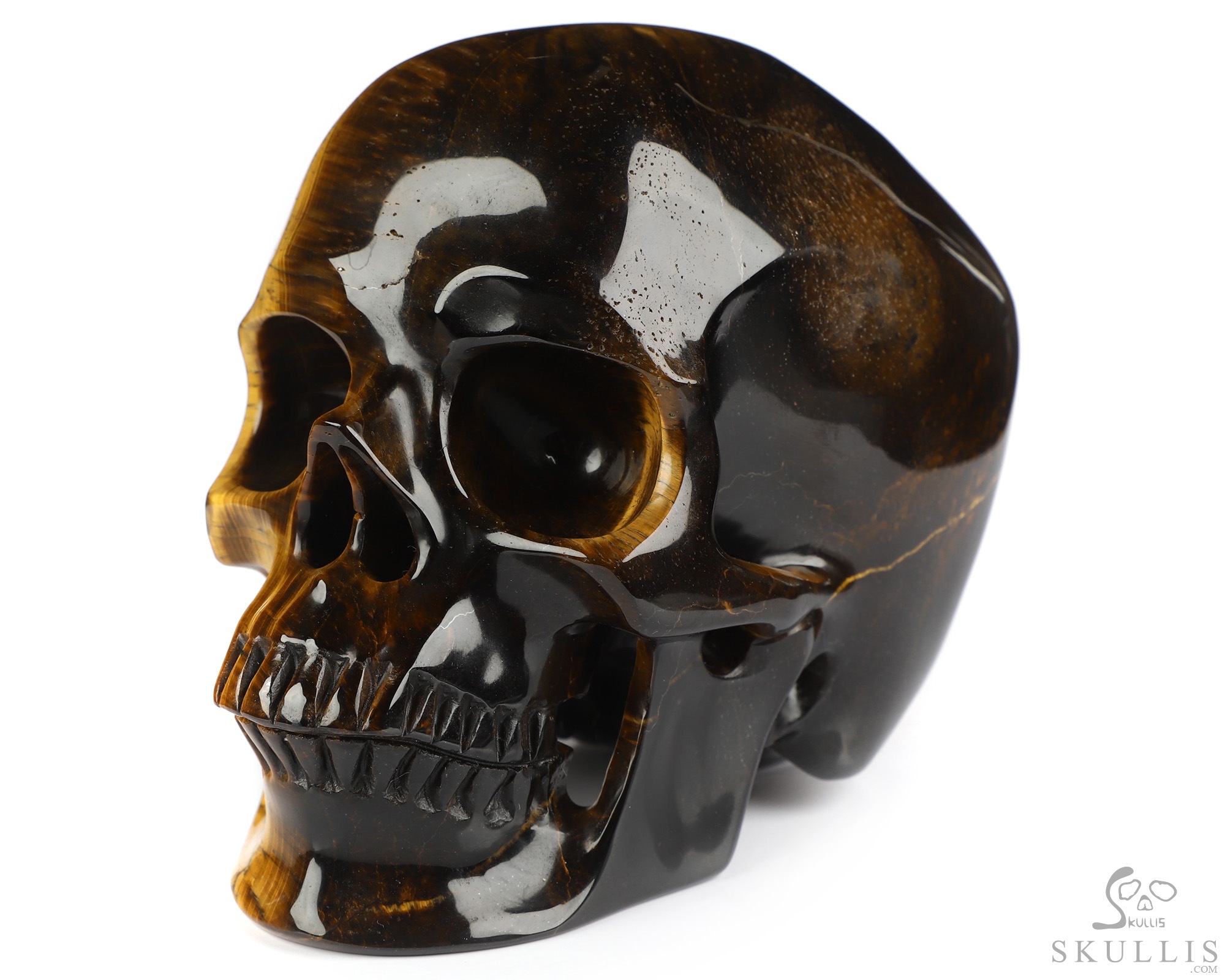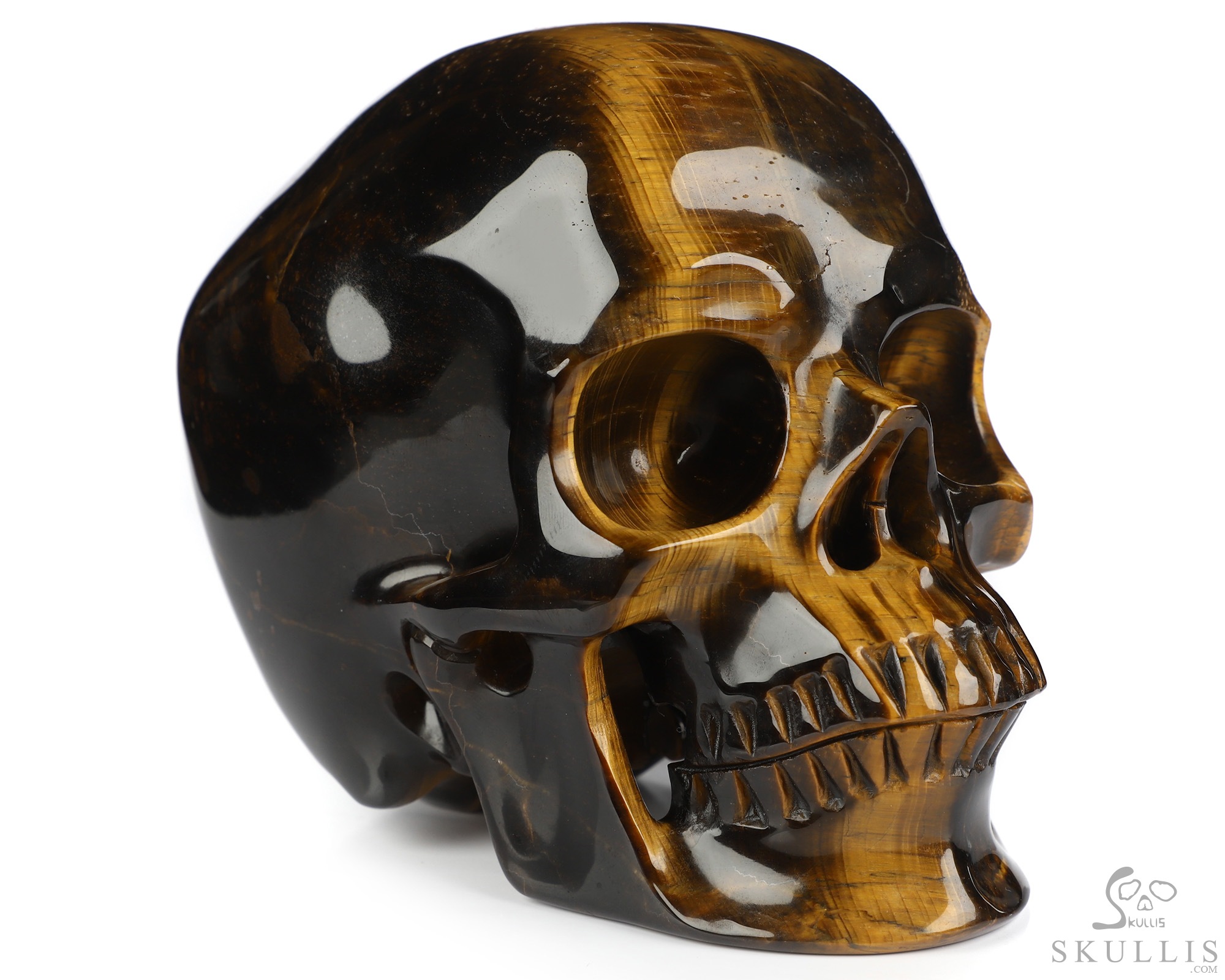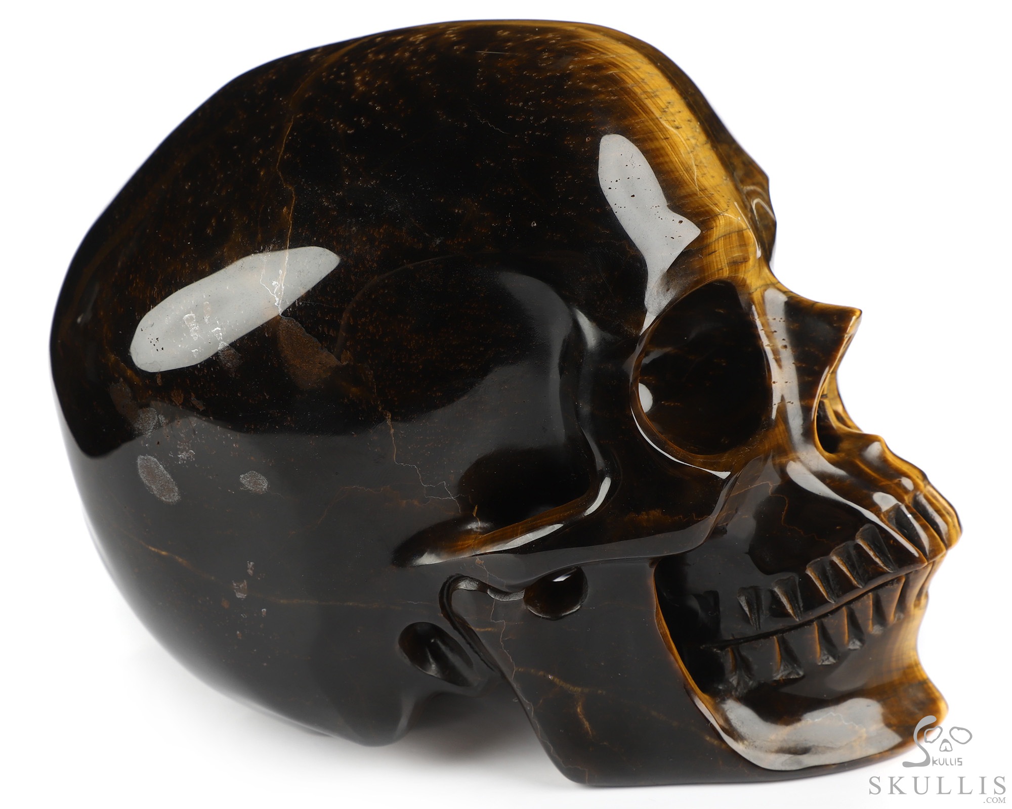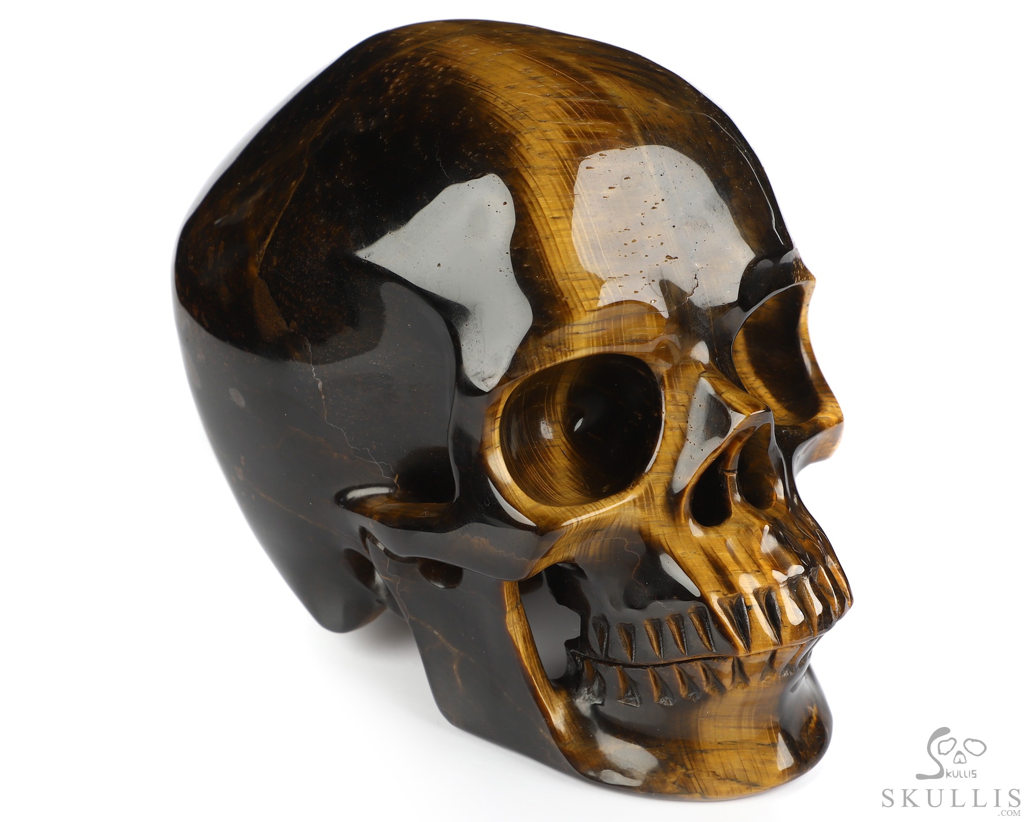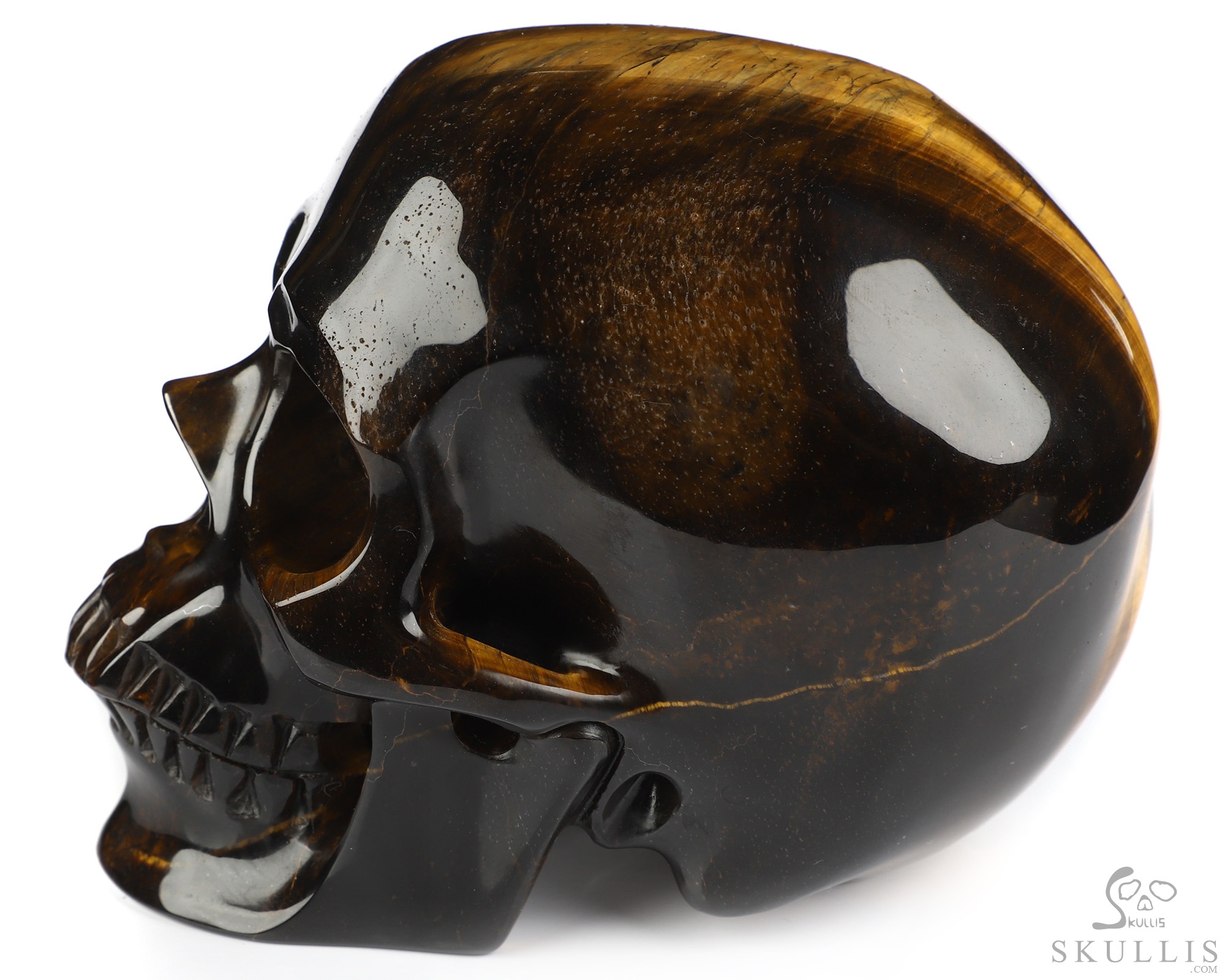 5.0" Gold Tiger's Eye Hand Carved Crystal Skull, Super Realistic, Crystal Healing