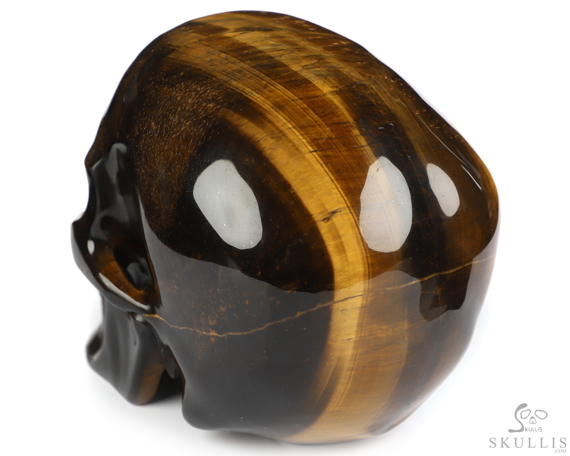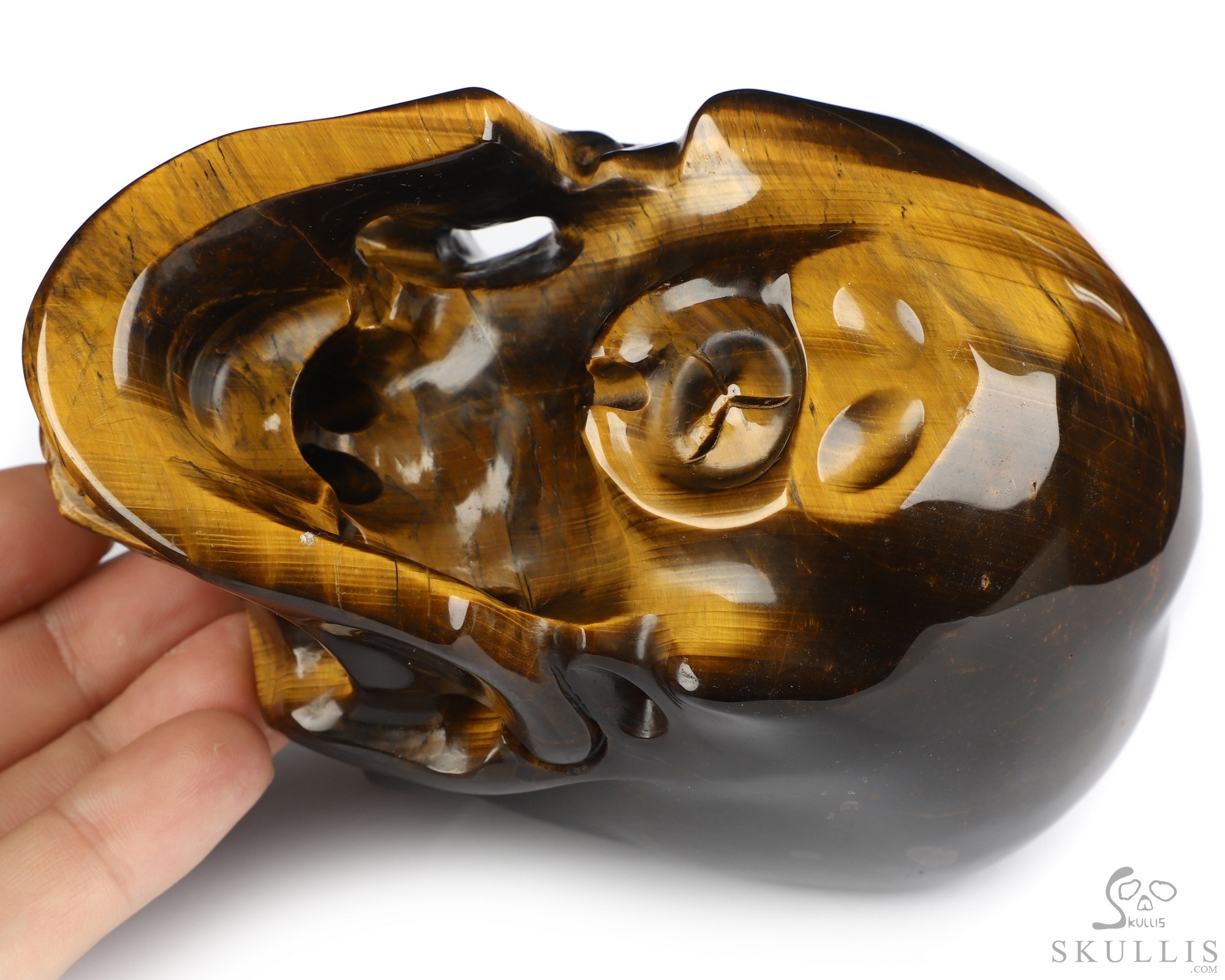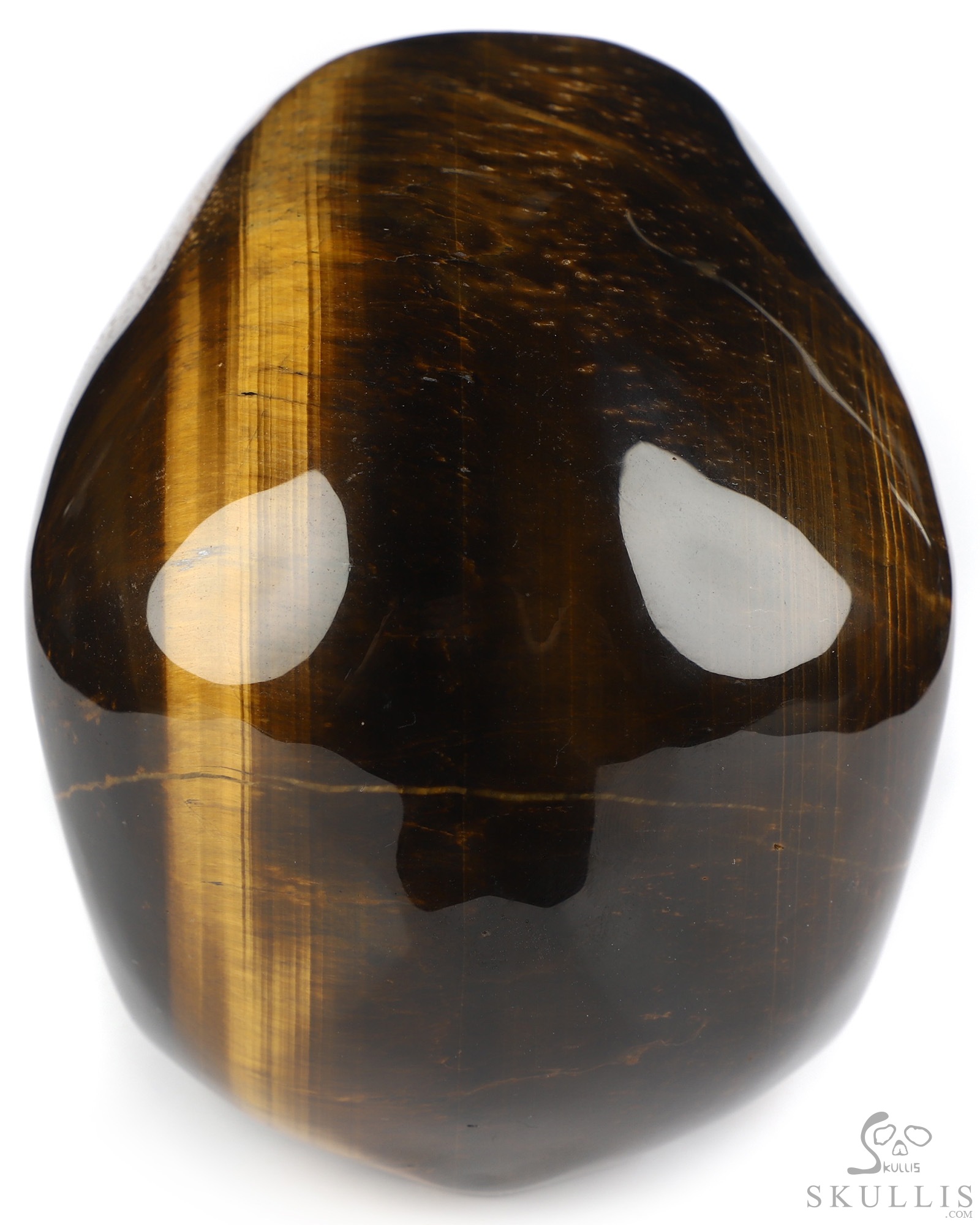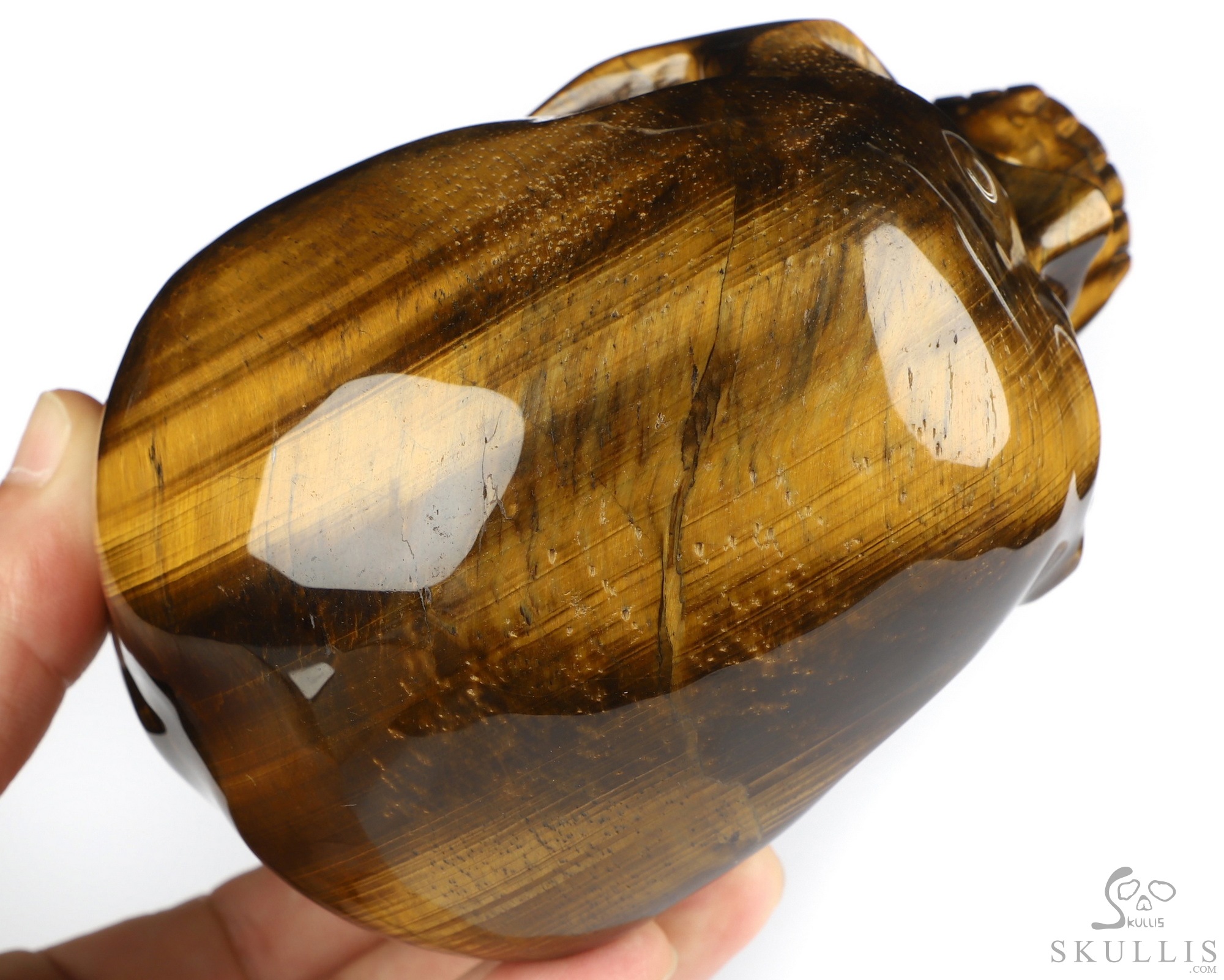 You are looking at a Gold Tiger's Eye skull. The skull is 5 inches from front to back.