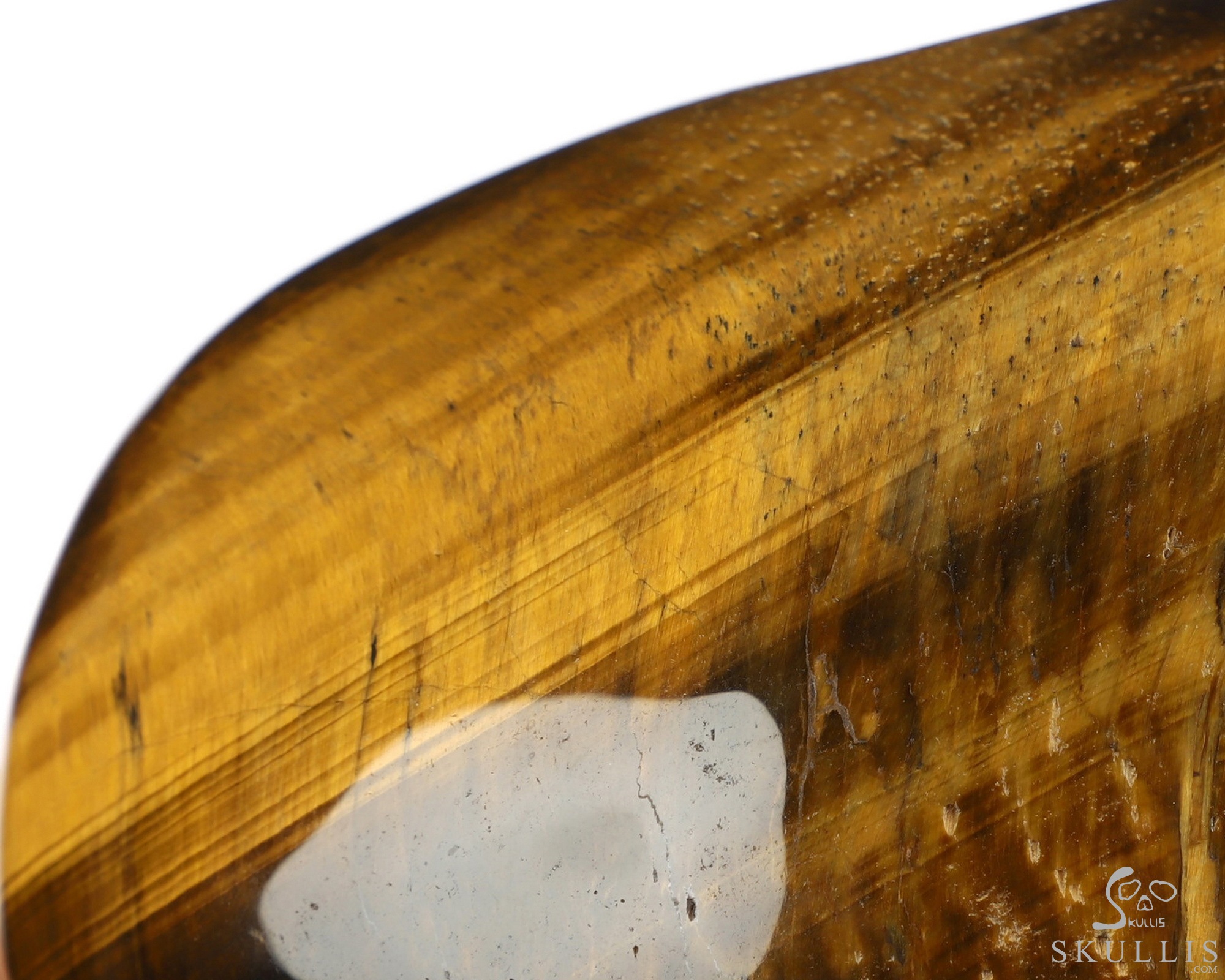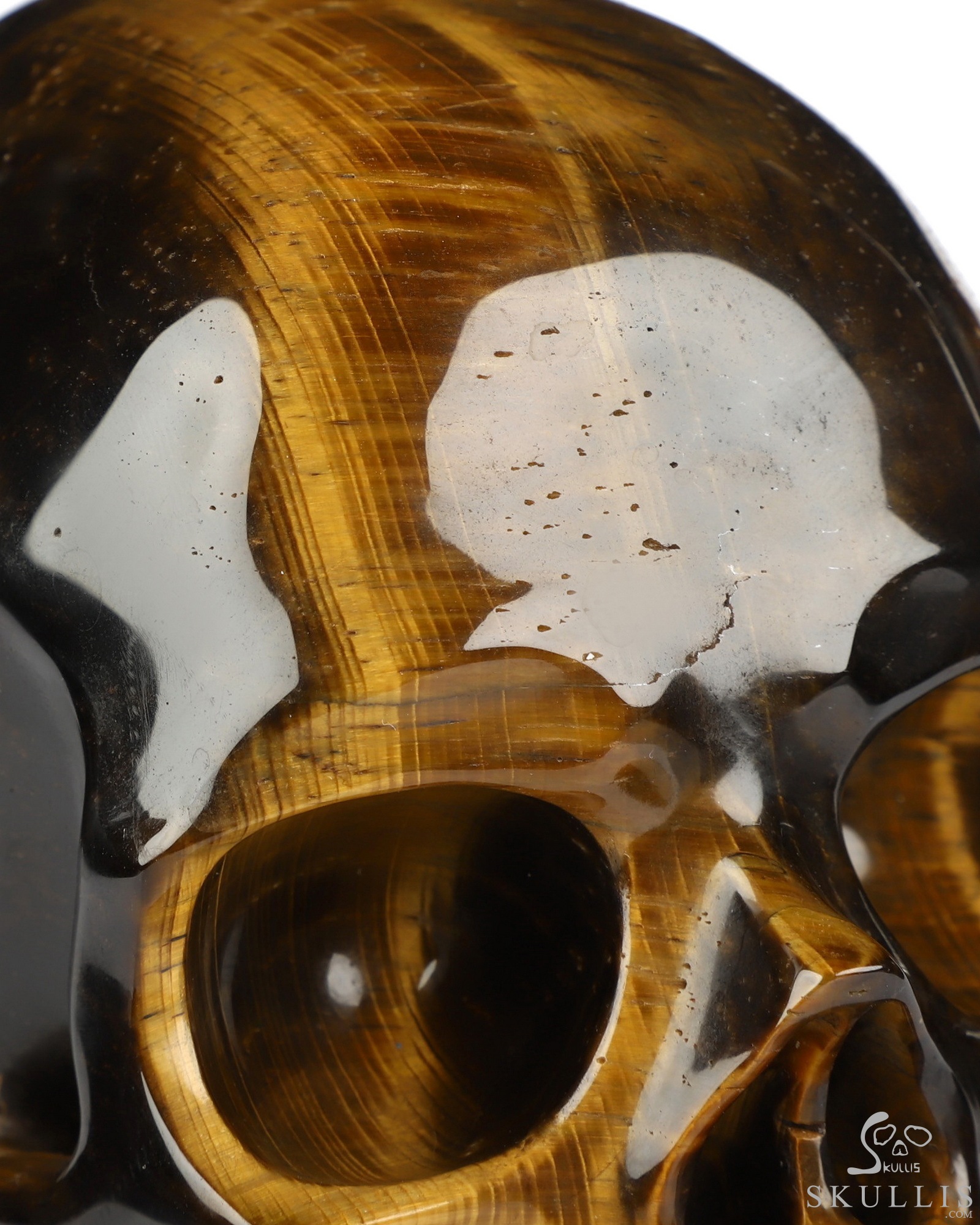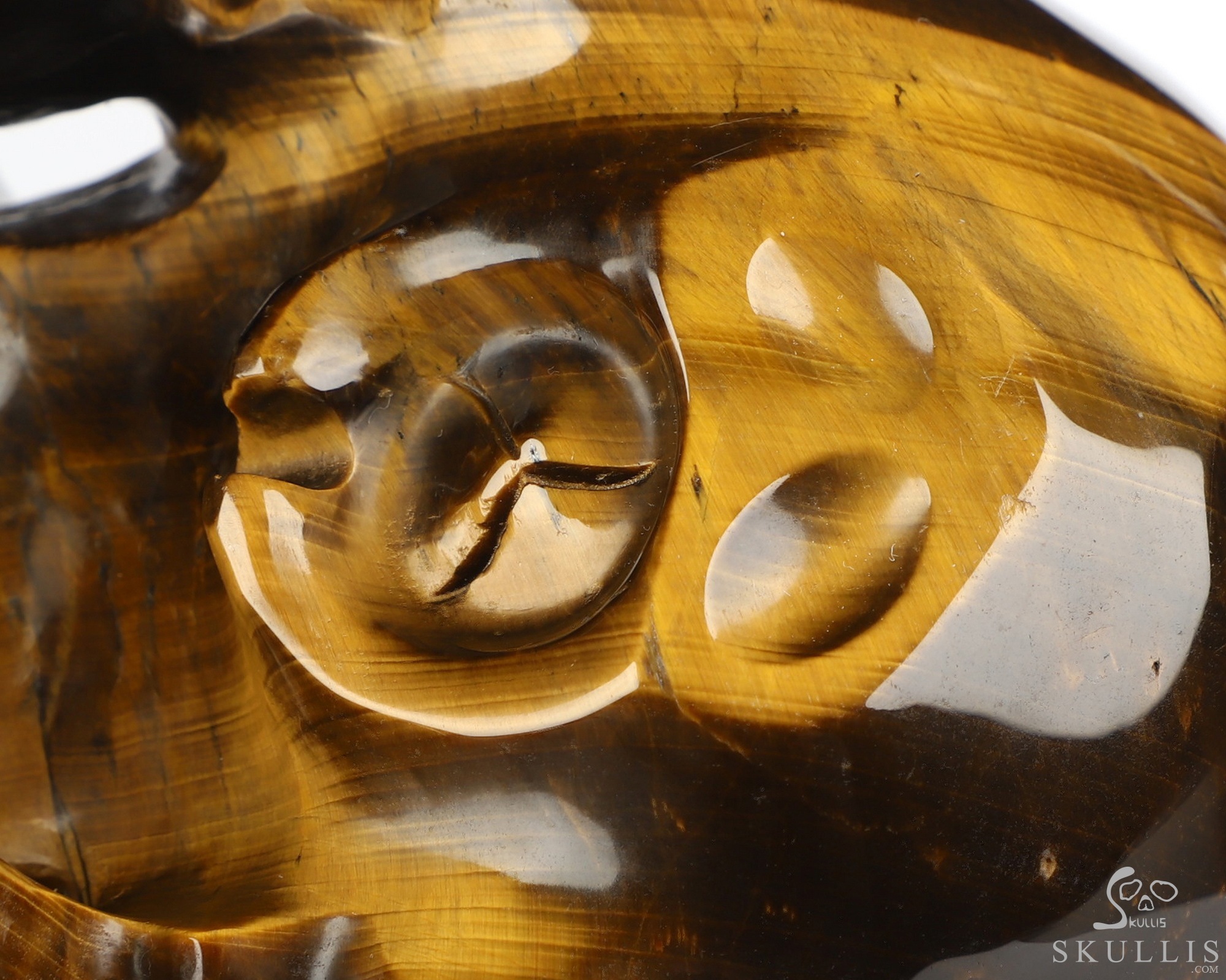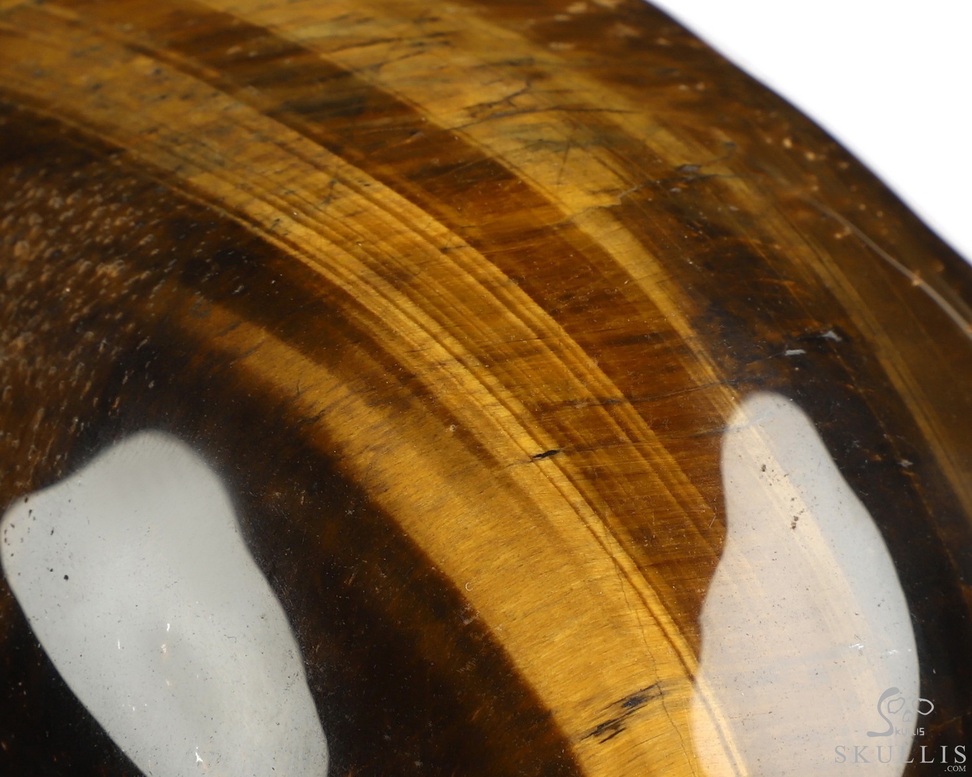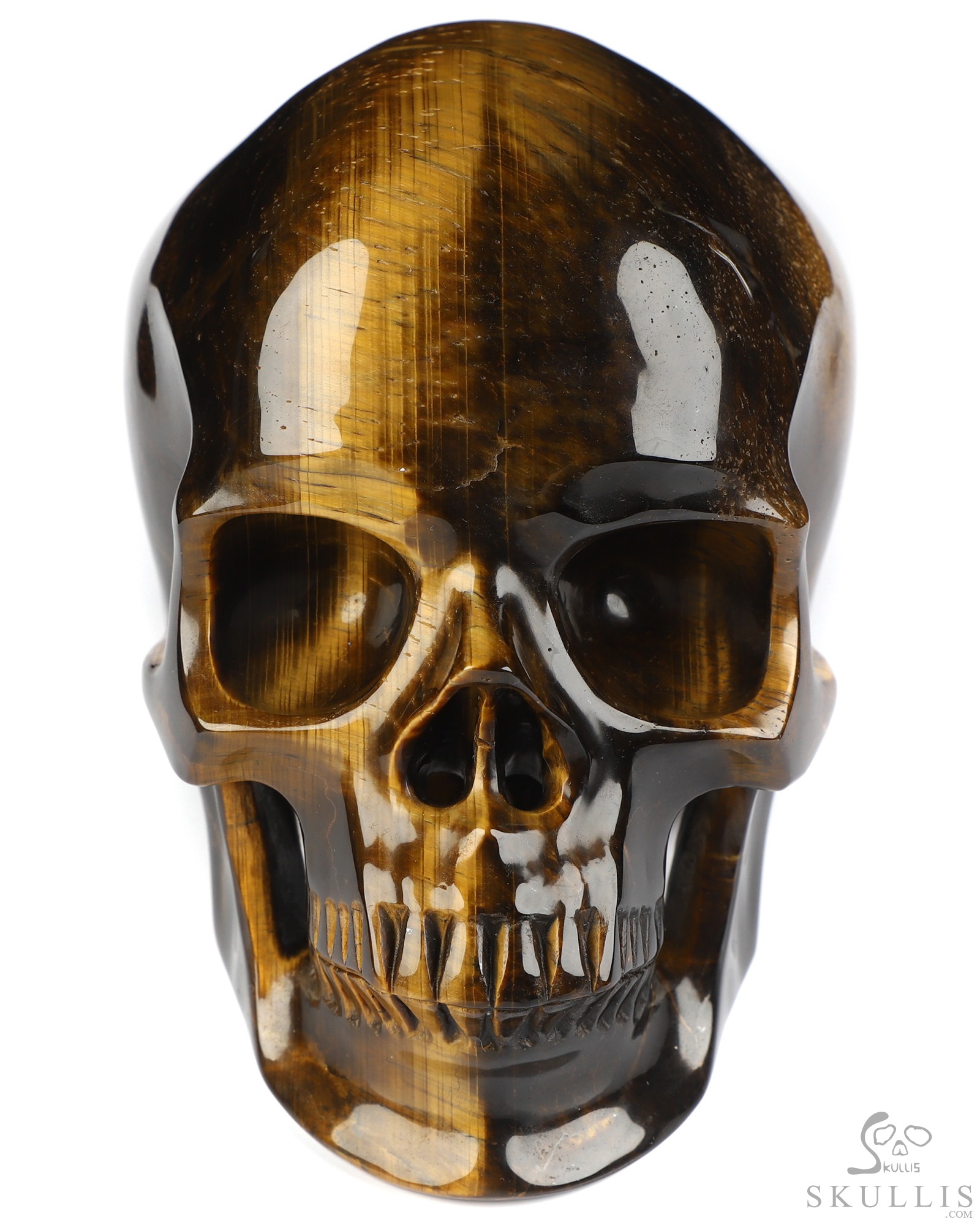 You are looking at a Gold Tiger's Eye skull. The skull is 5 inches from front to back.