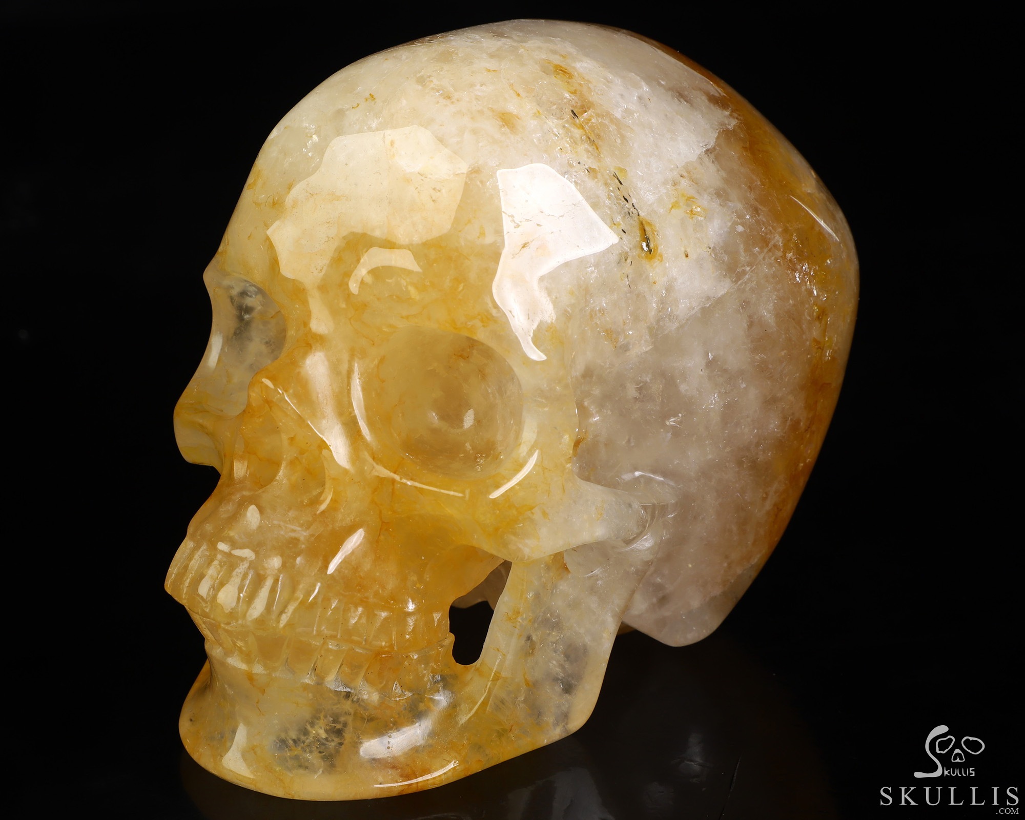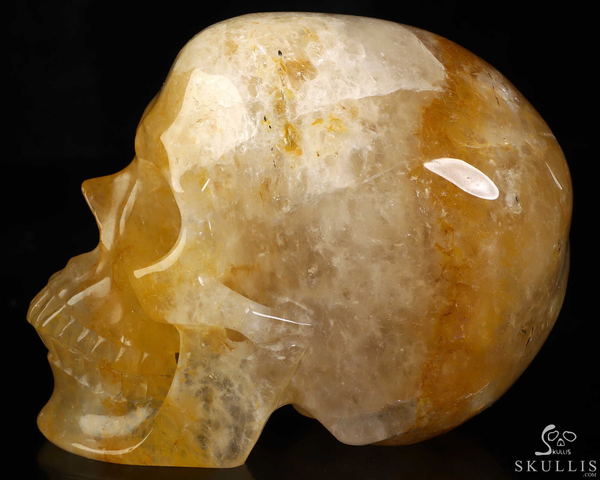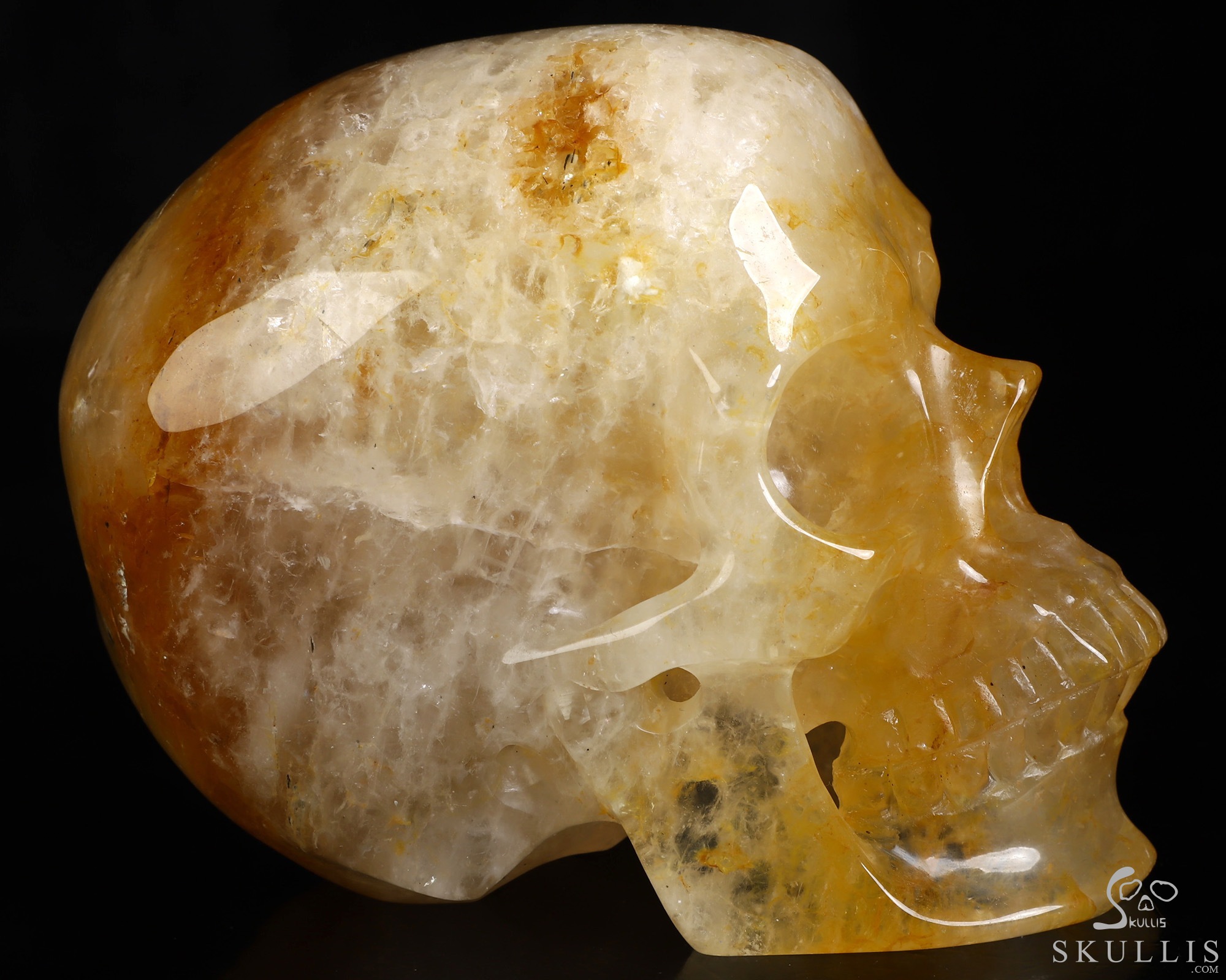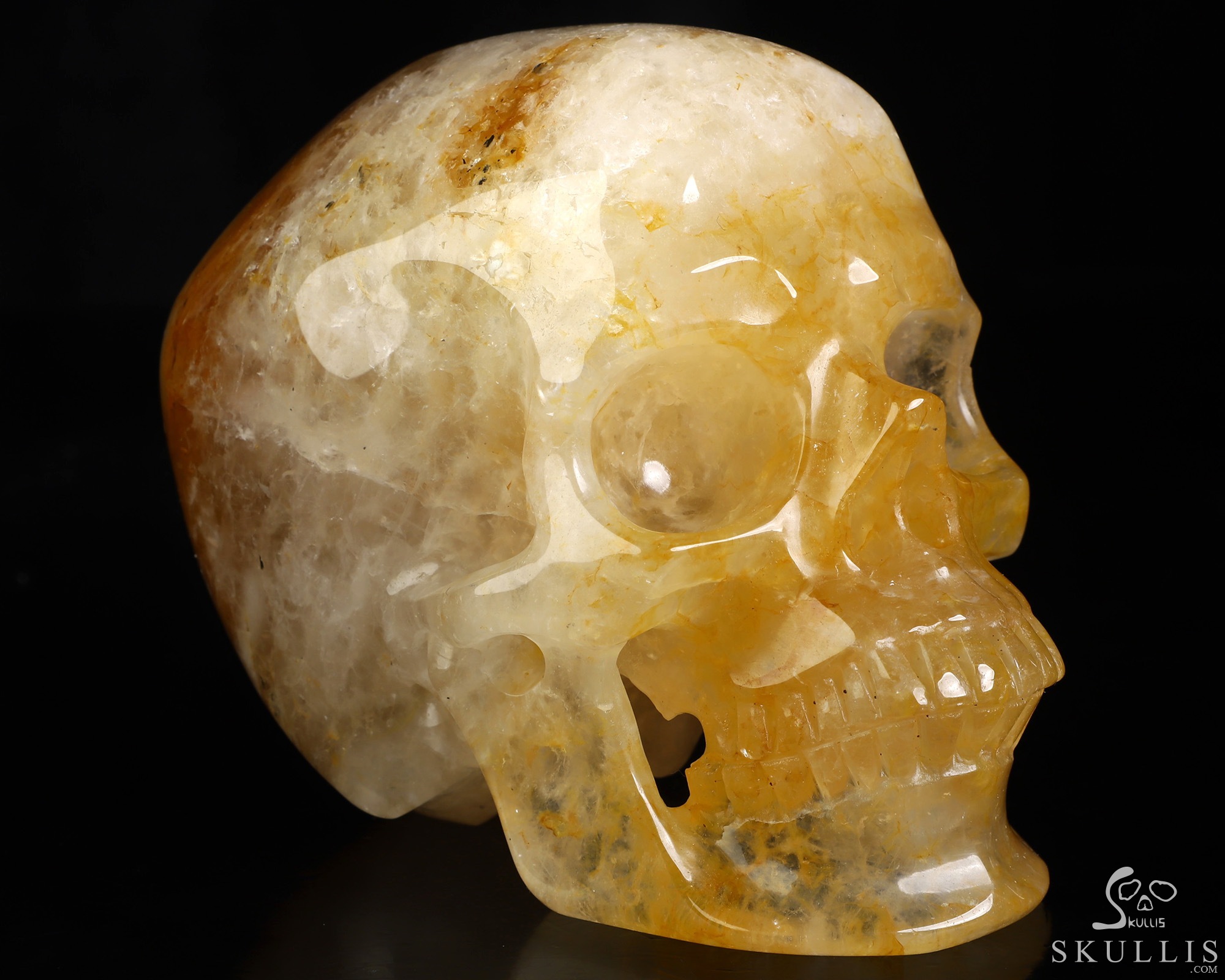 Super Realistic! Lifesized 7.0" Golden Healer Quartz Hand Carved Crystal Skull, Crystal Healing