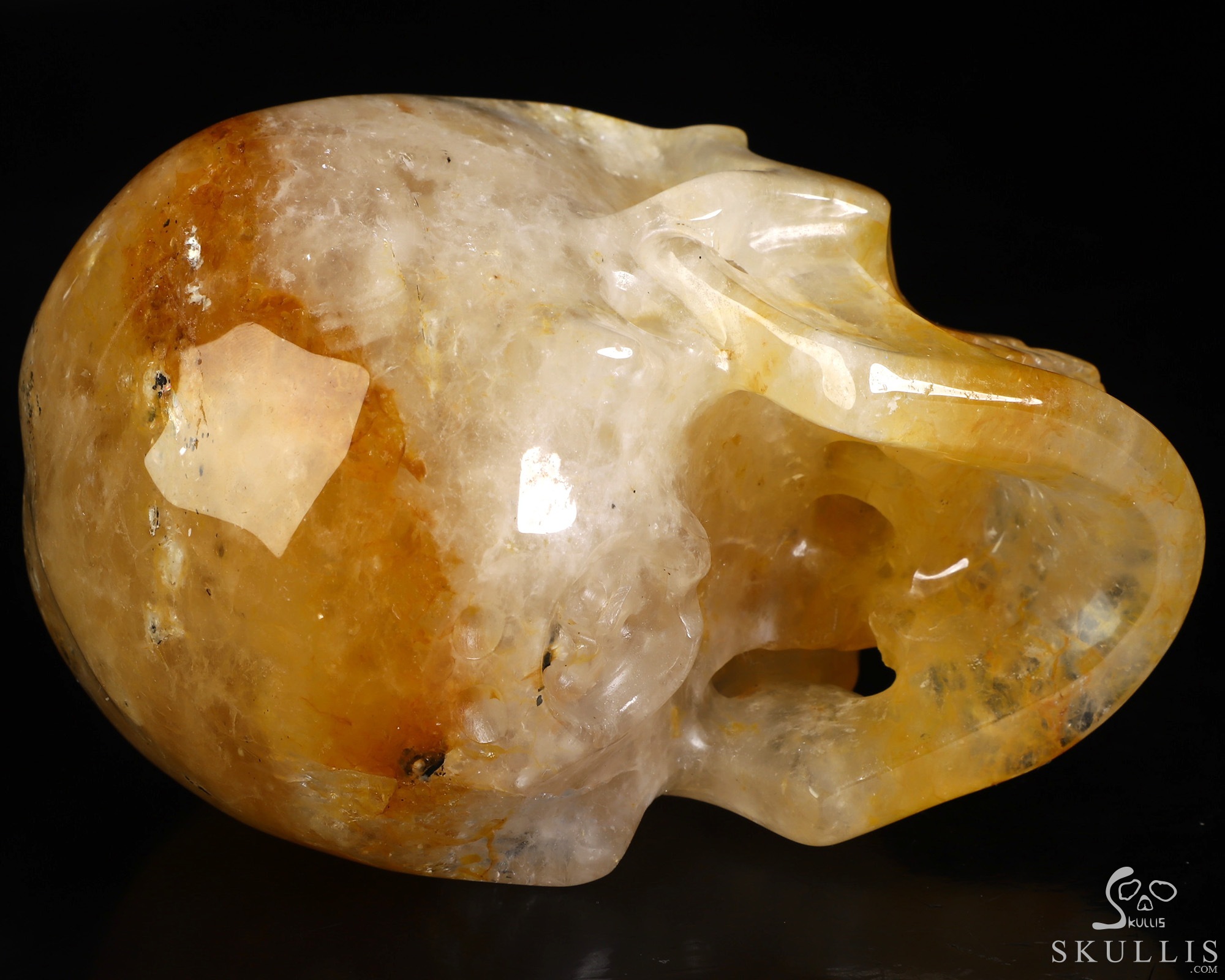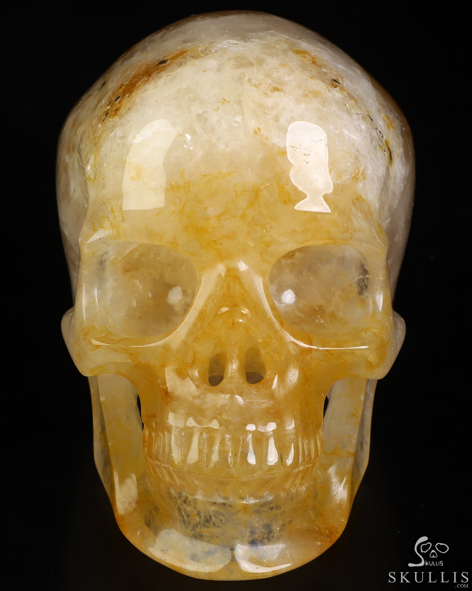 You are looking at a Golden Healer Quartz skull. The skull is 5 inches from front to back.