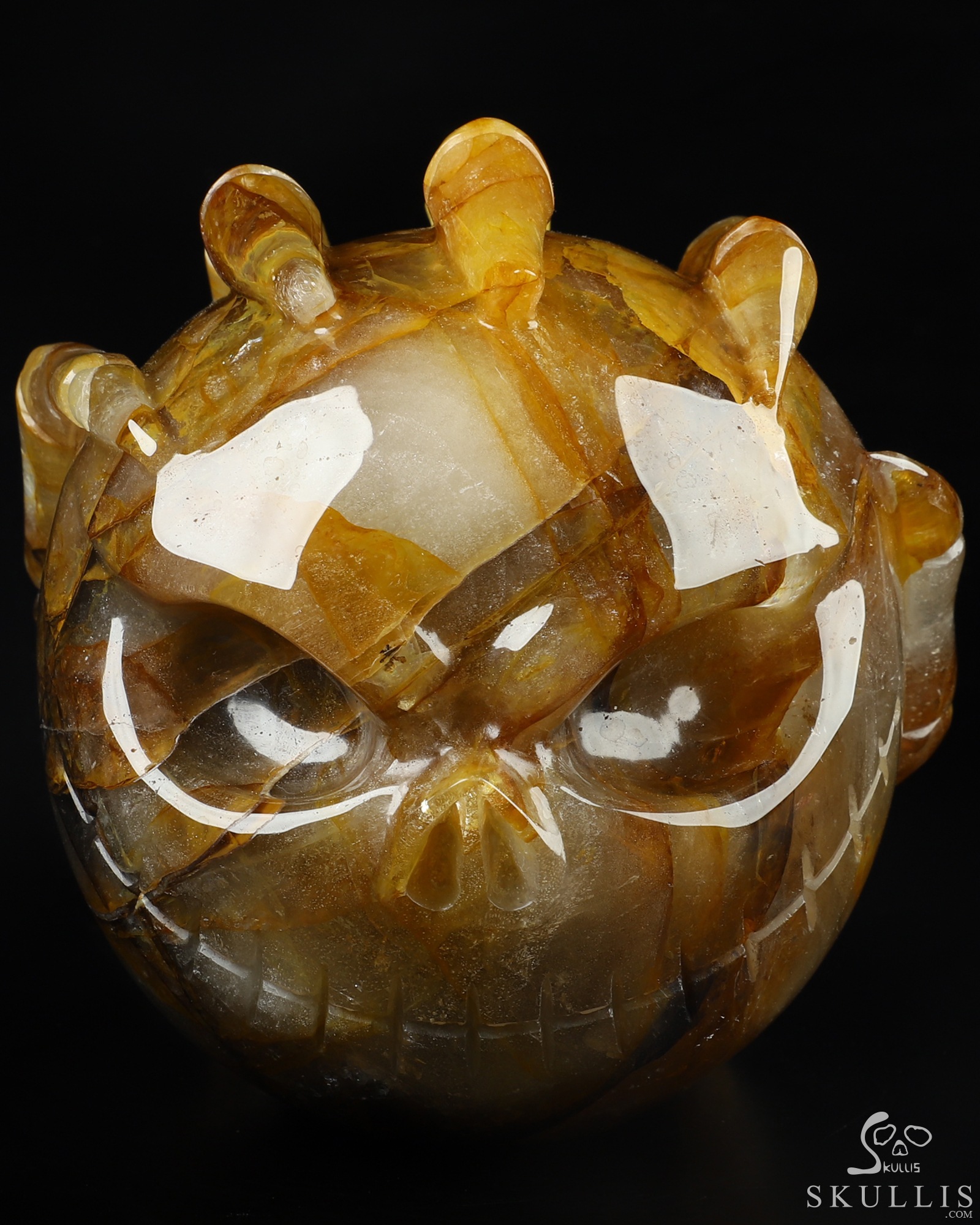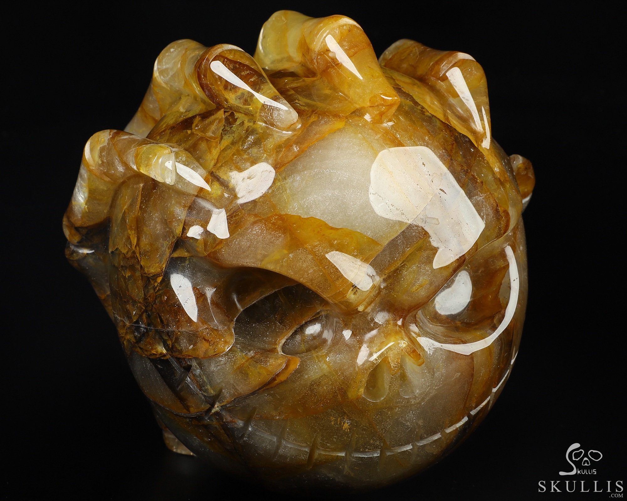 Golden Reminiscence - 5.1" Baltic Amber Carved Crystal Skull, Super Realistic, Crystal Healing