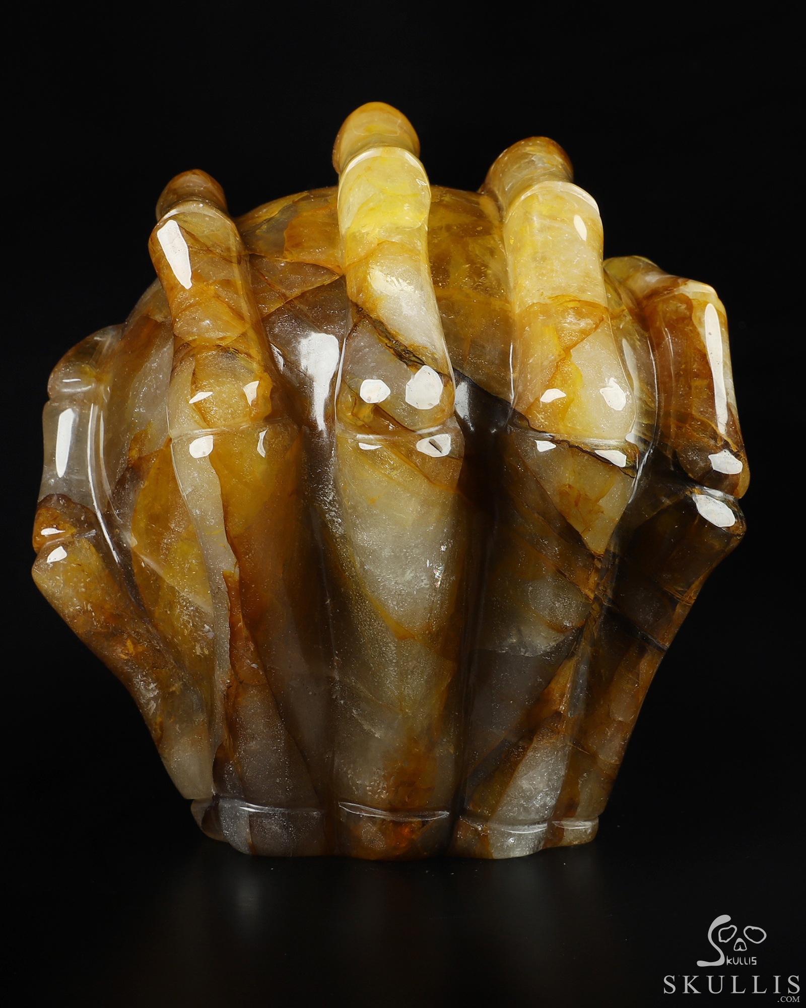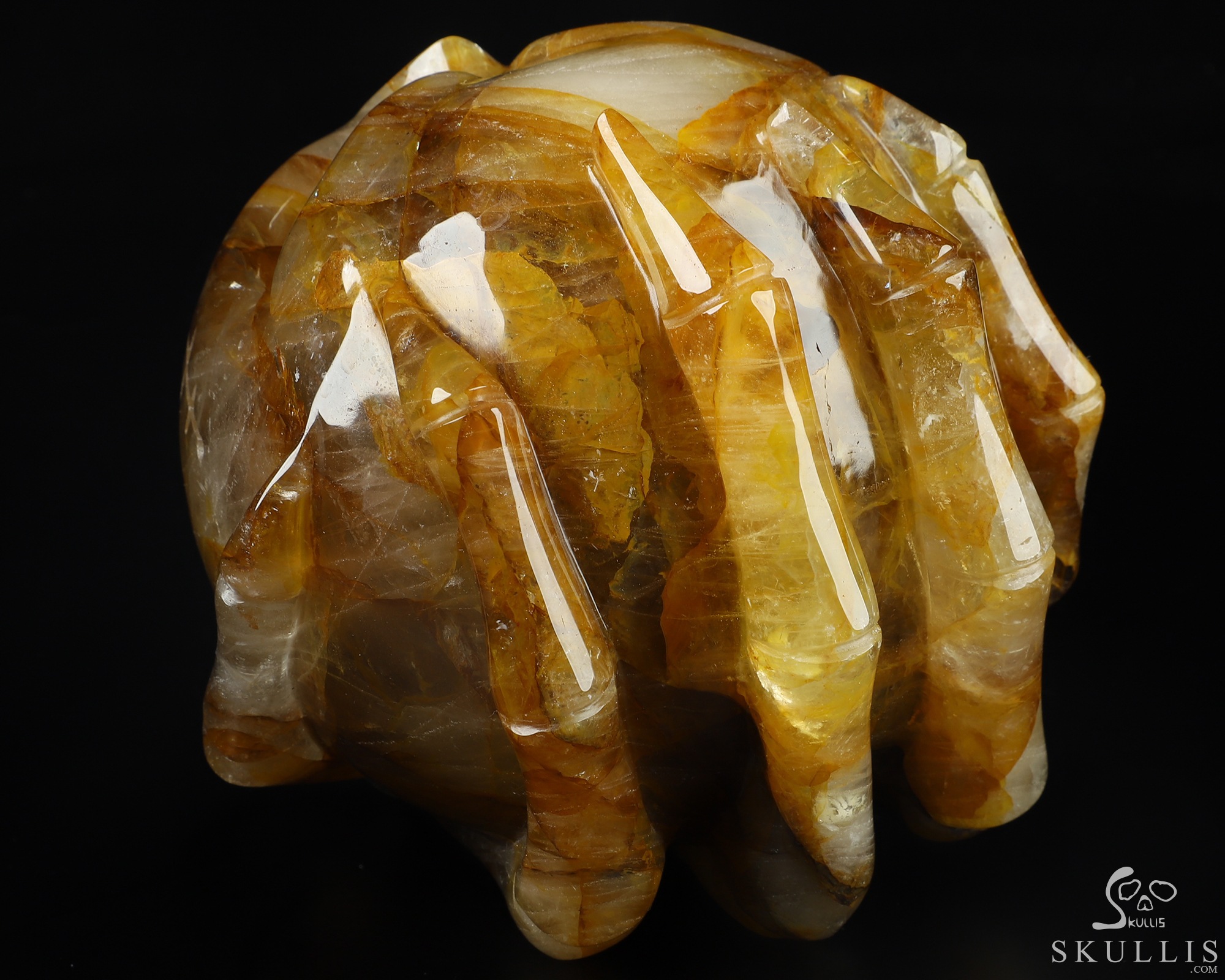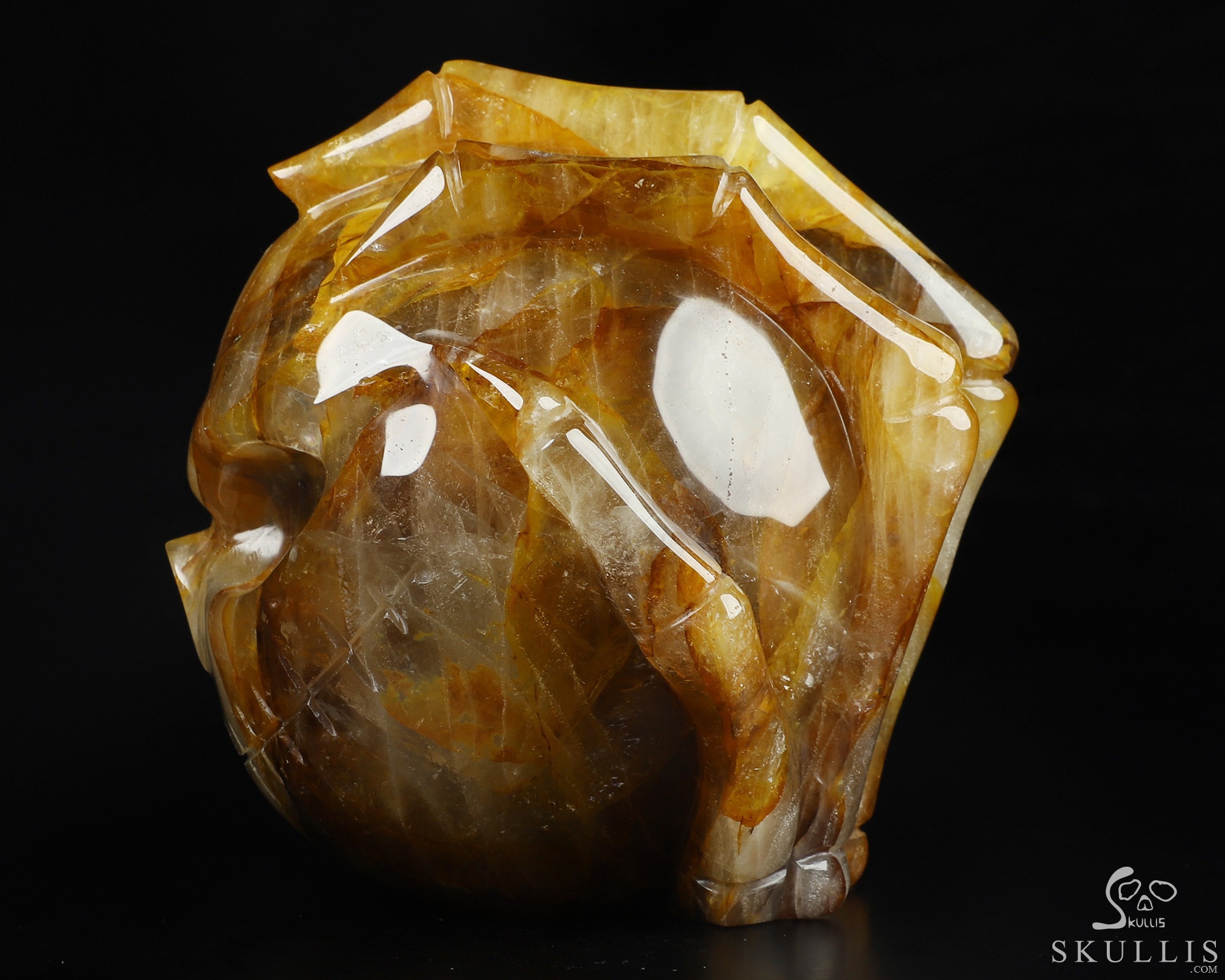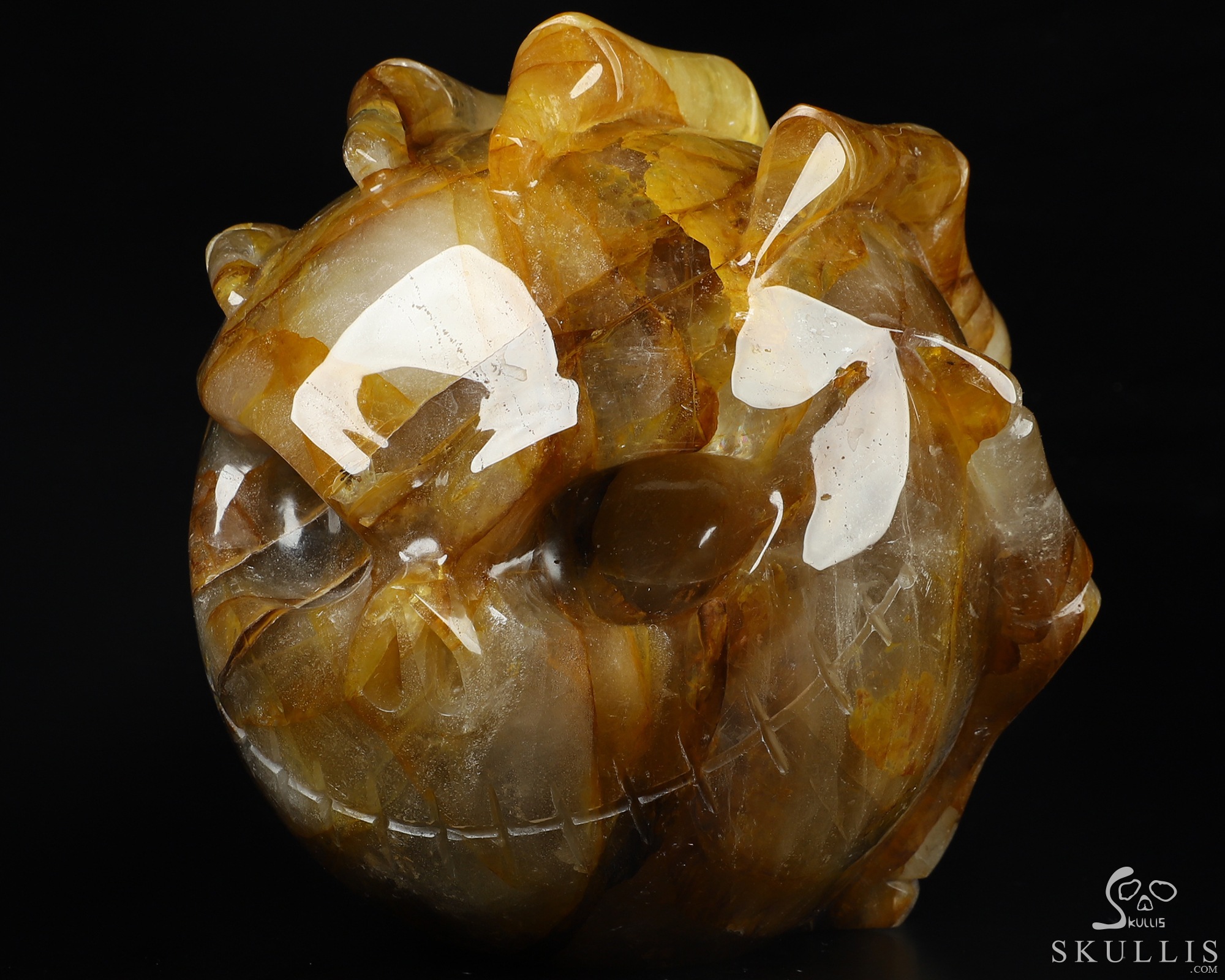 5.0" Golden healer Hand Carved Crystal Skull Fine Art Sculpture, Crystal Healing