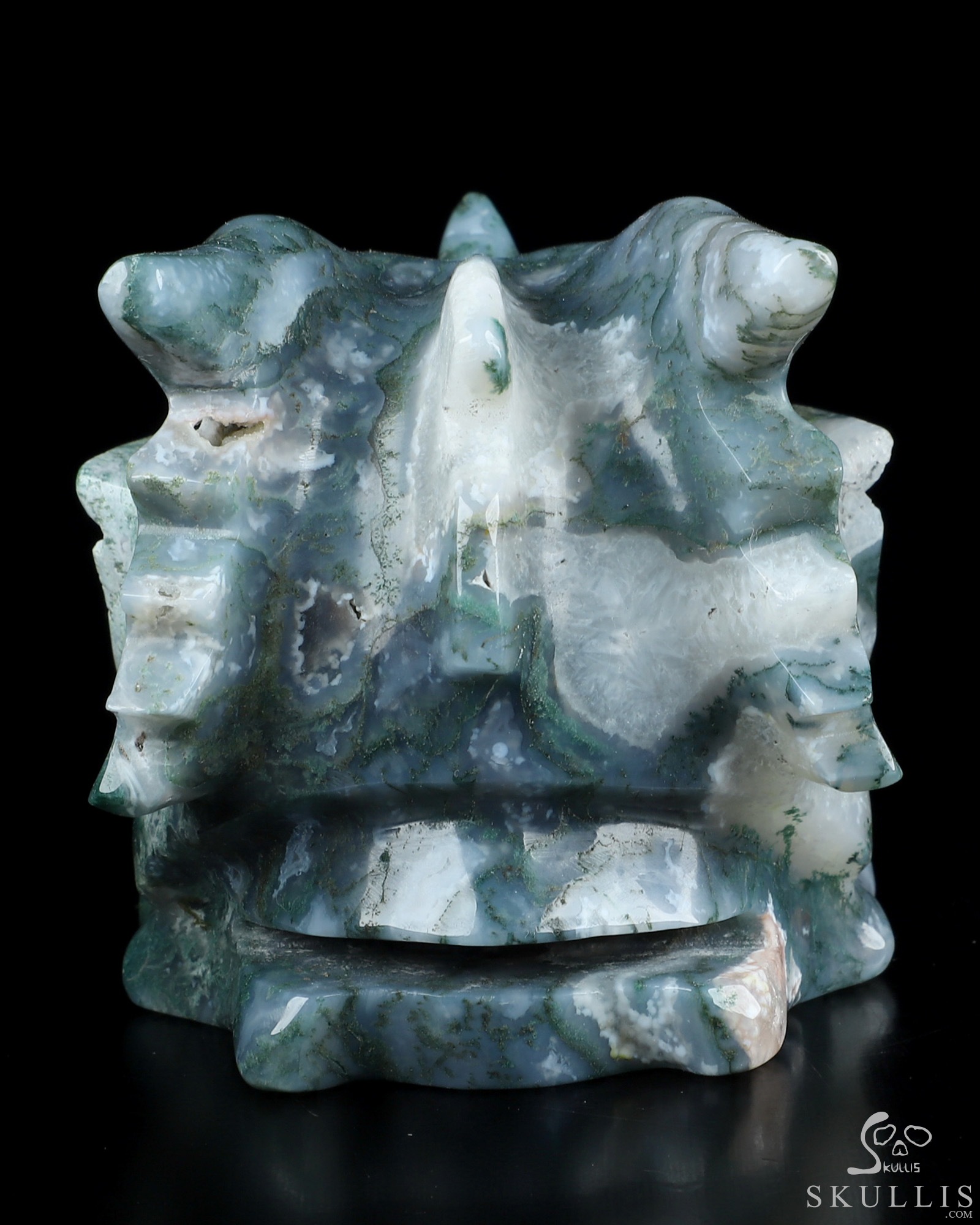 3.7" Green Moss Agate Hand Carved Crystal Skull Fine Art Sculpture, Crystal Healing
