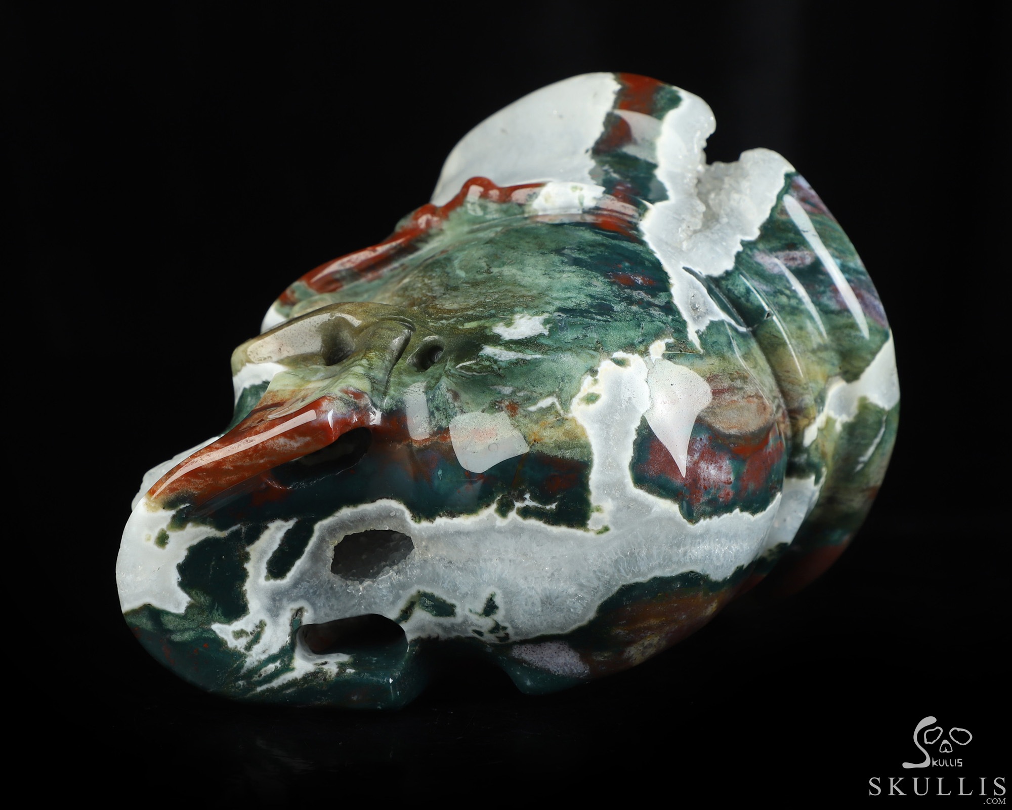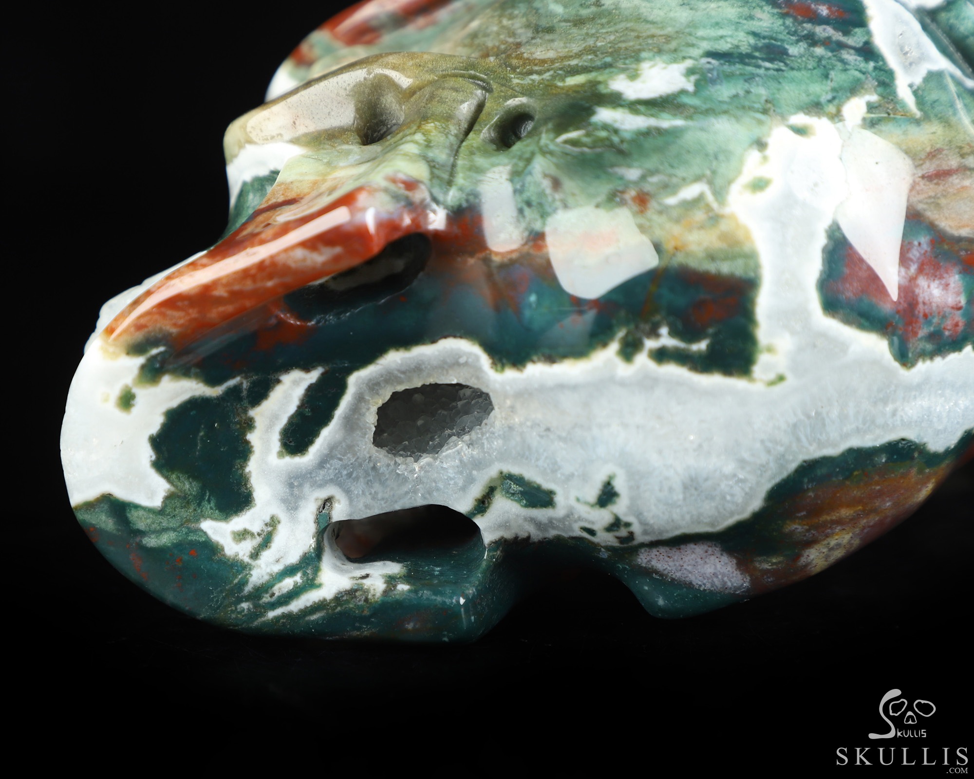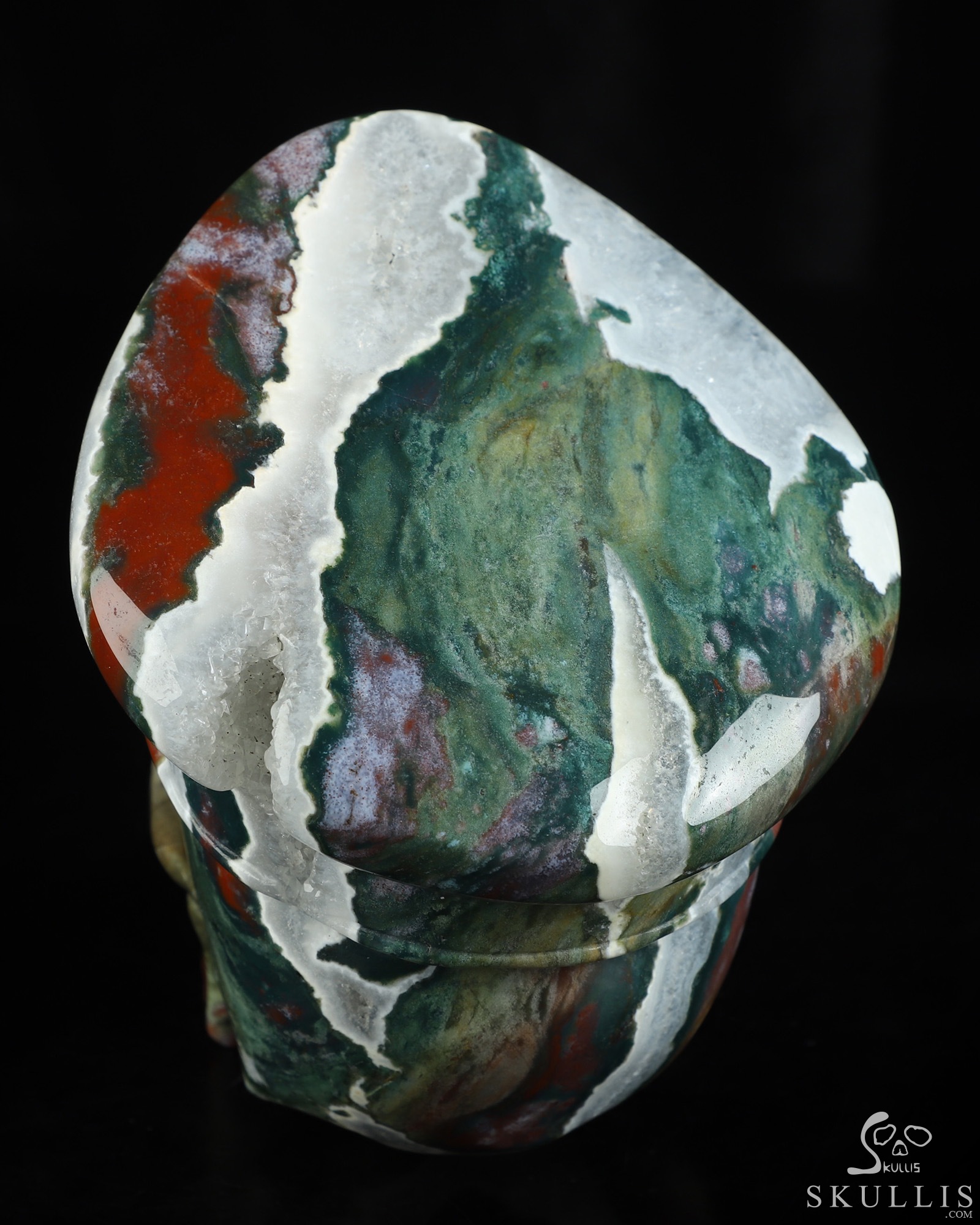 Super Realistic! Lifesized 6.1" Green and Black Zebra Agate Hand Carved Crystal Skull, Crystal Healing