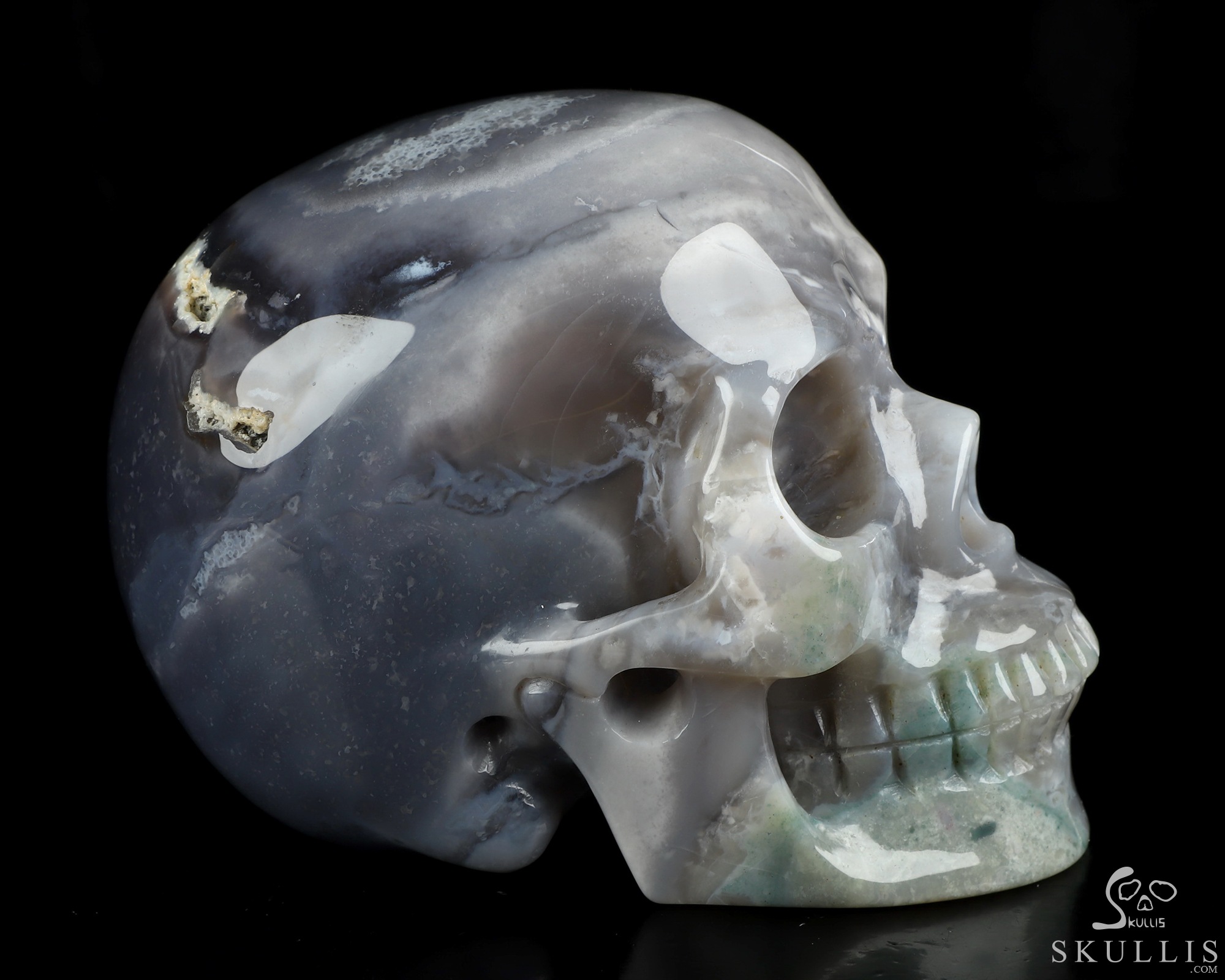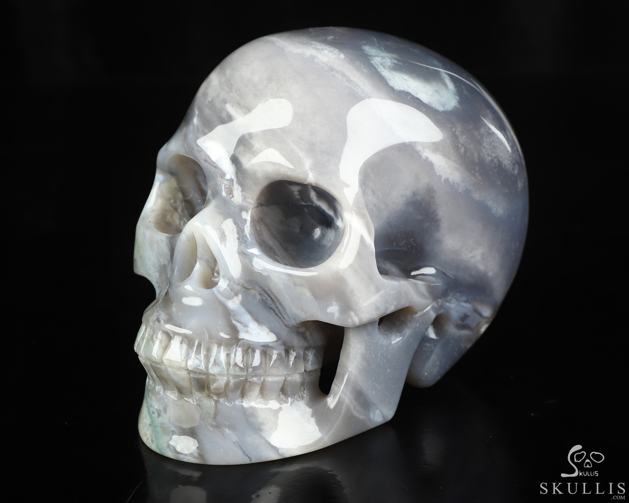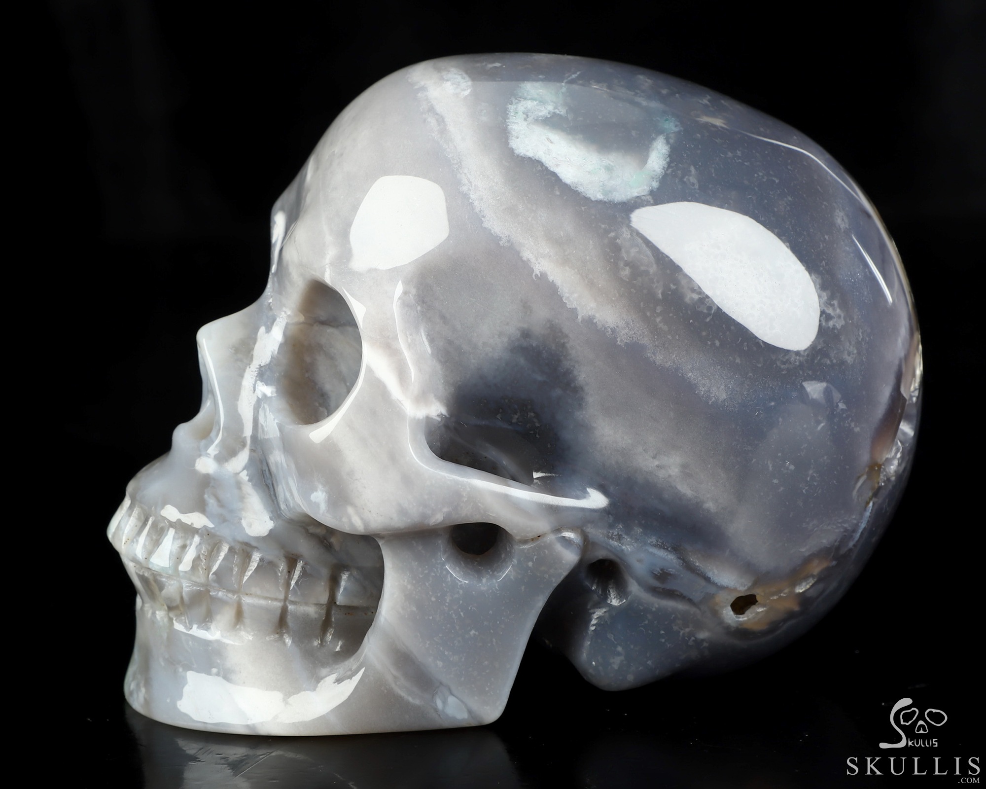 Lifesized 6.9" Indian Agate Carved Crystal Skull,Realistic, Crystal Healing
