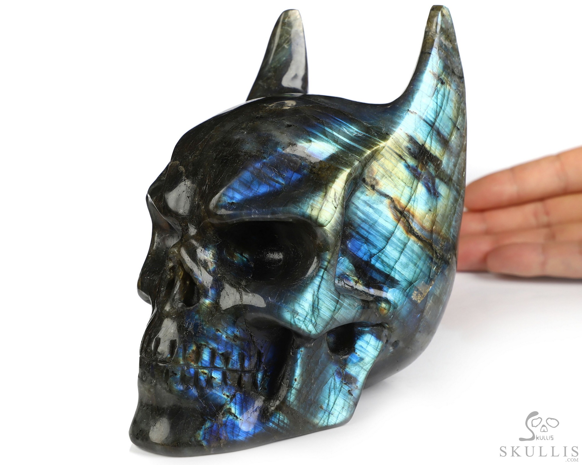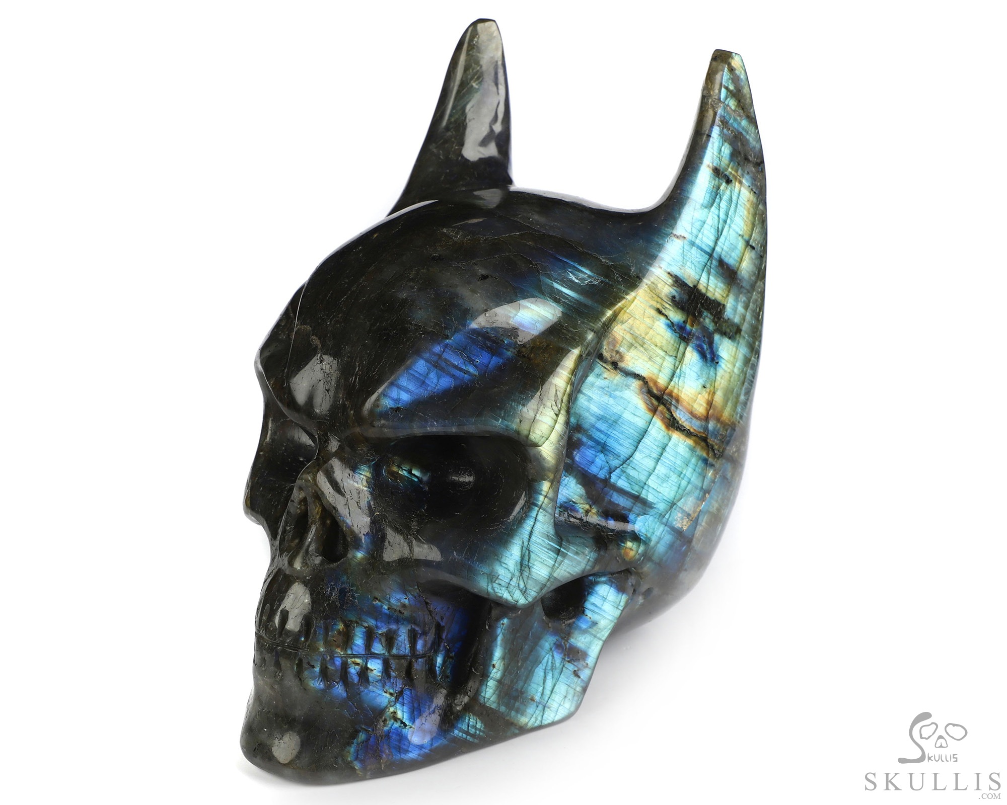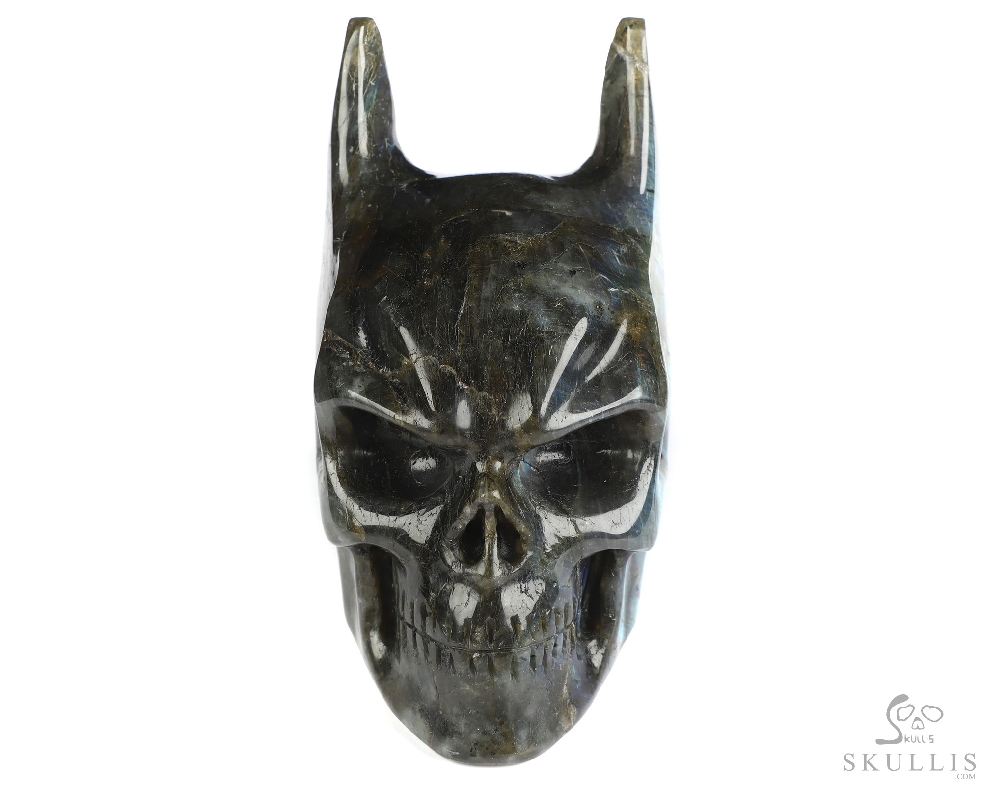 5.0" Labradorite Hand Carved Batman Crystal Skull Fine Art Sculpture, Crystal Healing