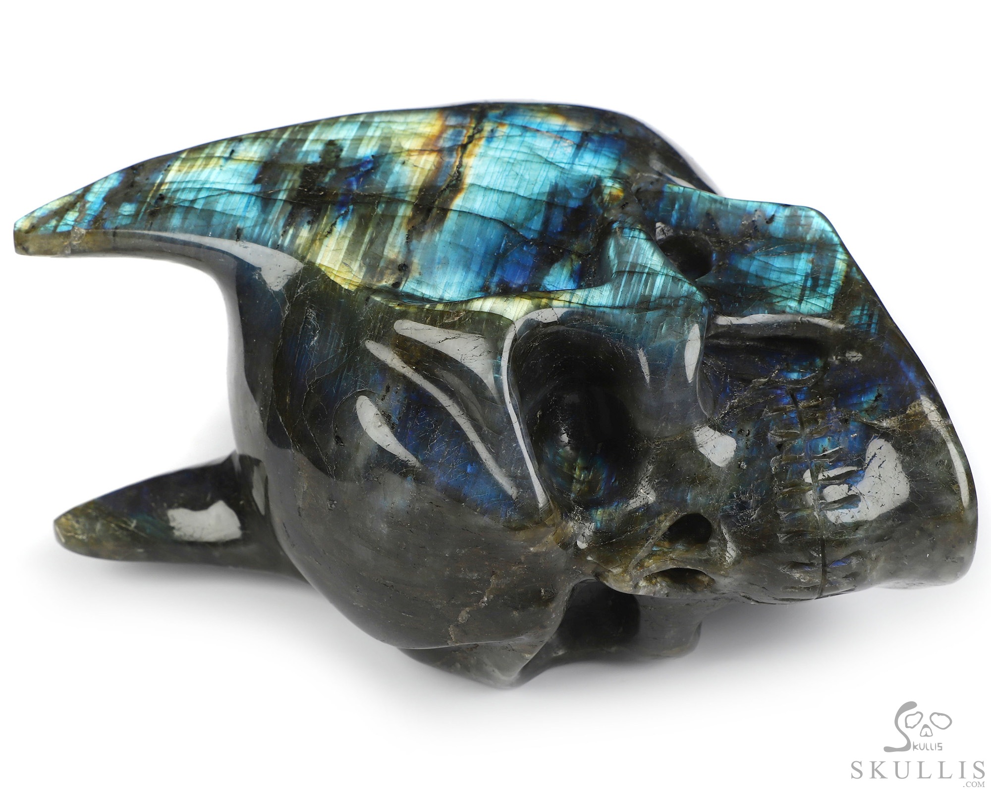 6.7" Labradorite Hand Carved Crystal Tyrannosaurus/dinosaur Skull, Crystal Healing