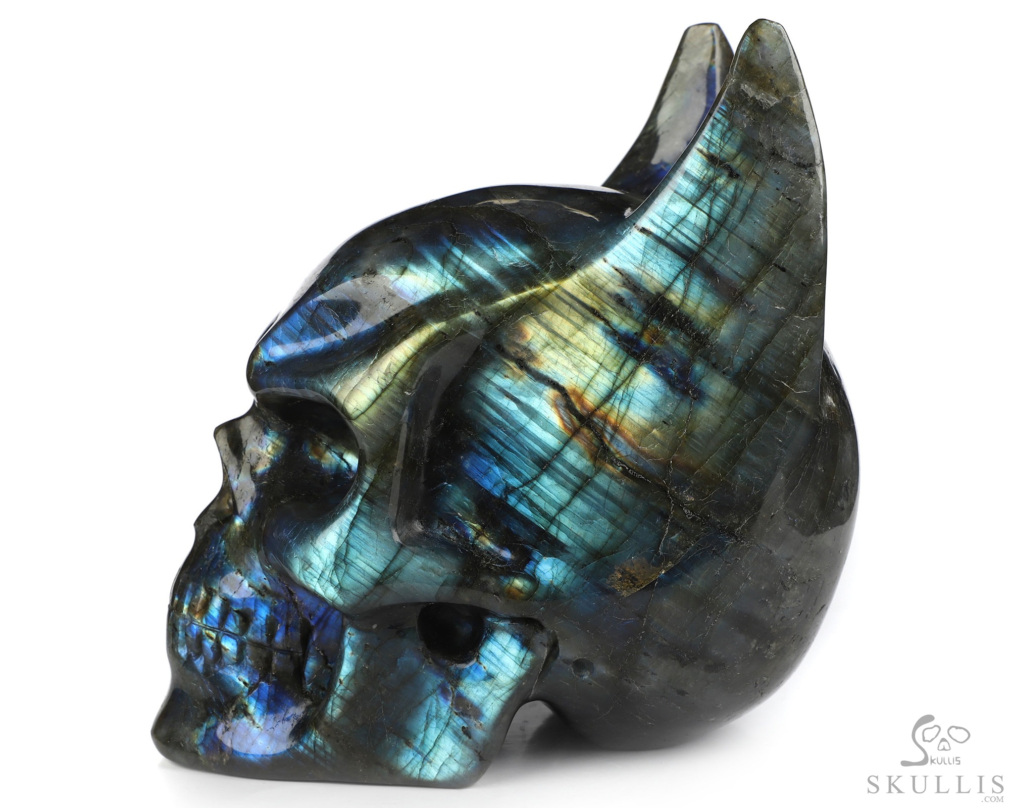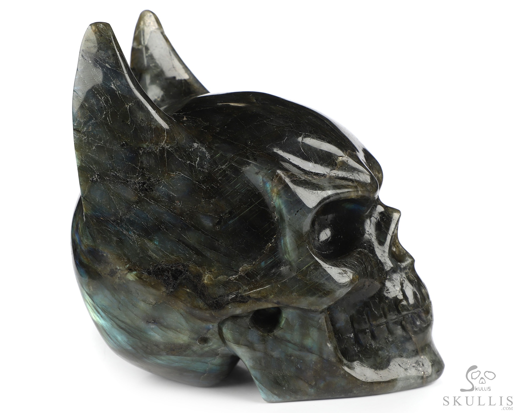 7.7" Labradorite Carved Crystal Skull & Wings, Realistic
