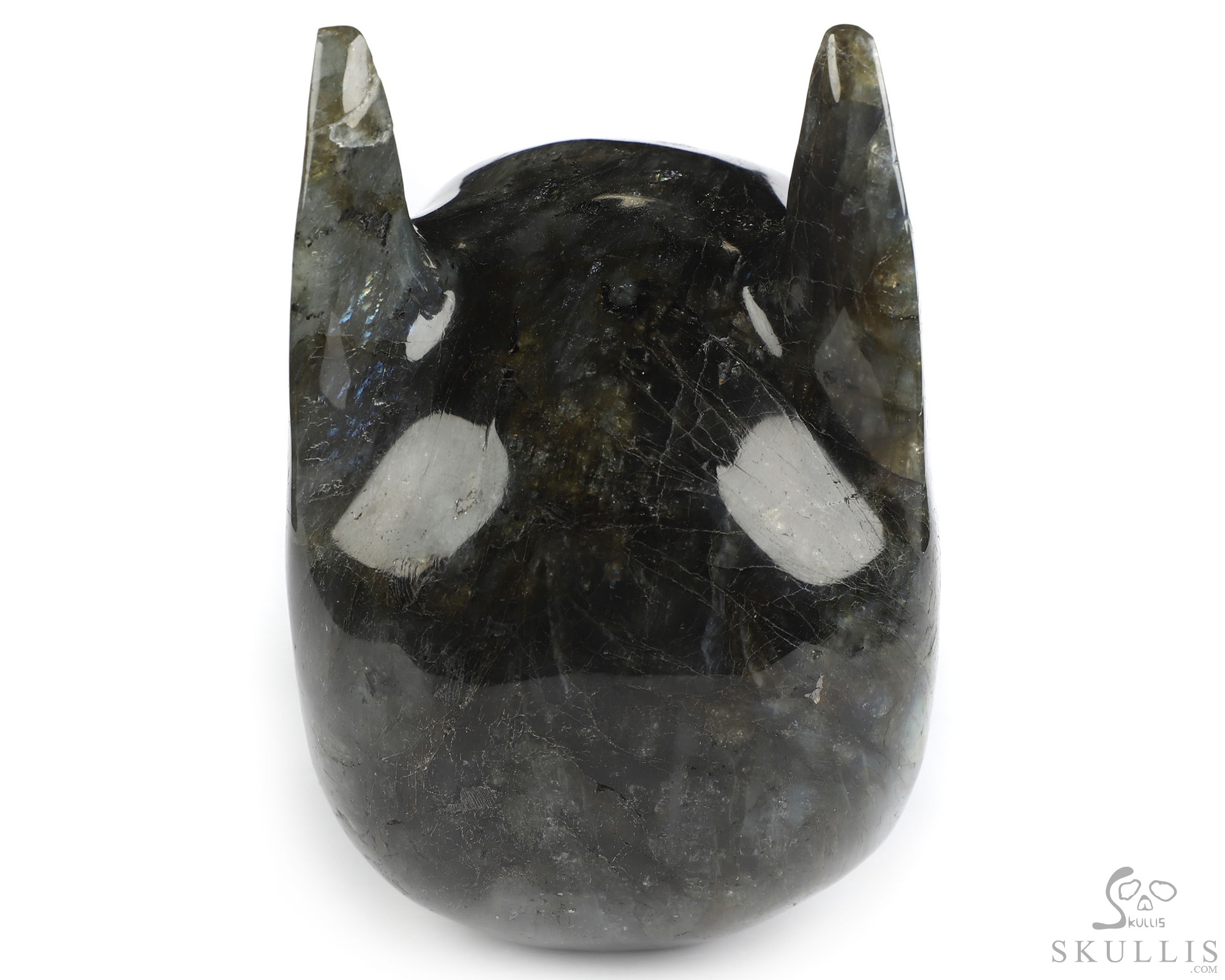 You are looking at a Labradorite skull. The skull is 5 inches from front to back.