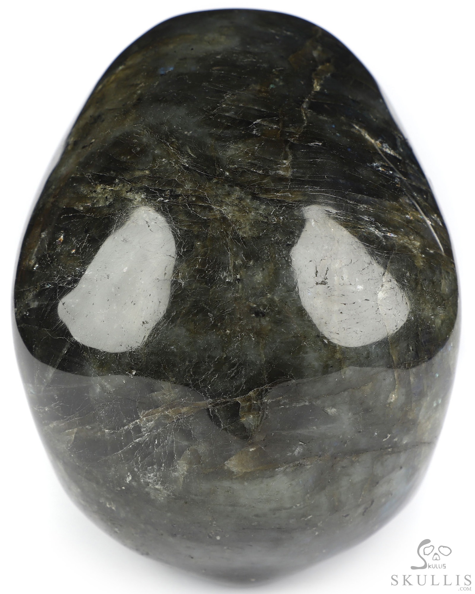 You are looking at a Labradorite skull. The skull is 5 inches from front to back.