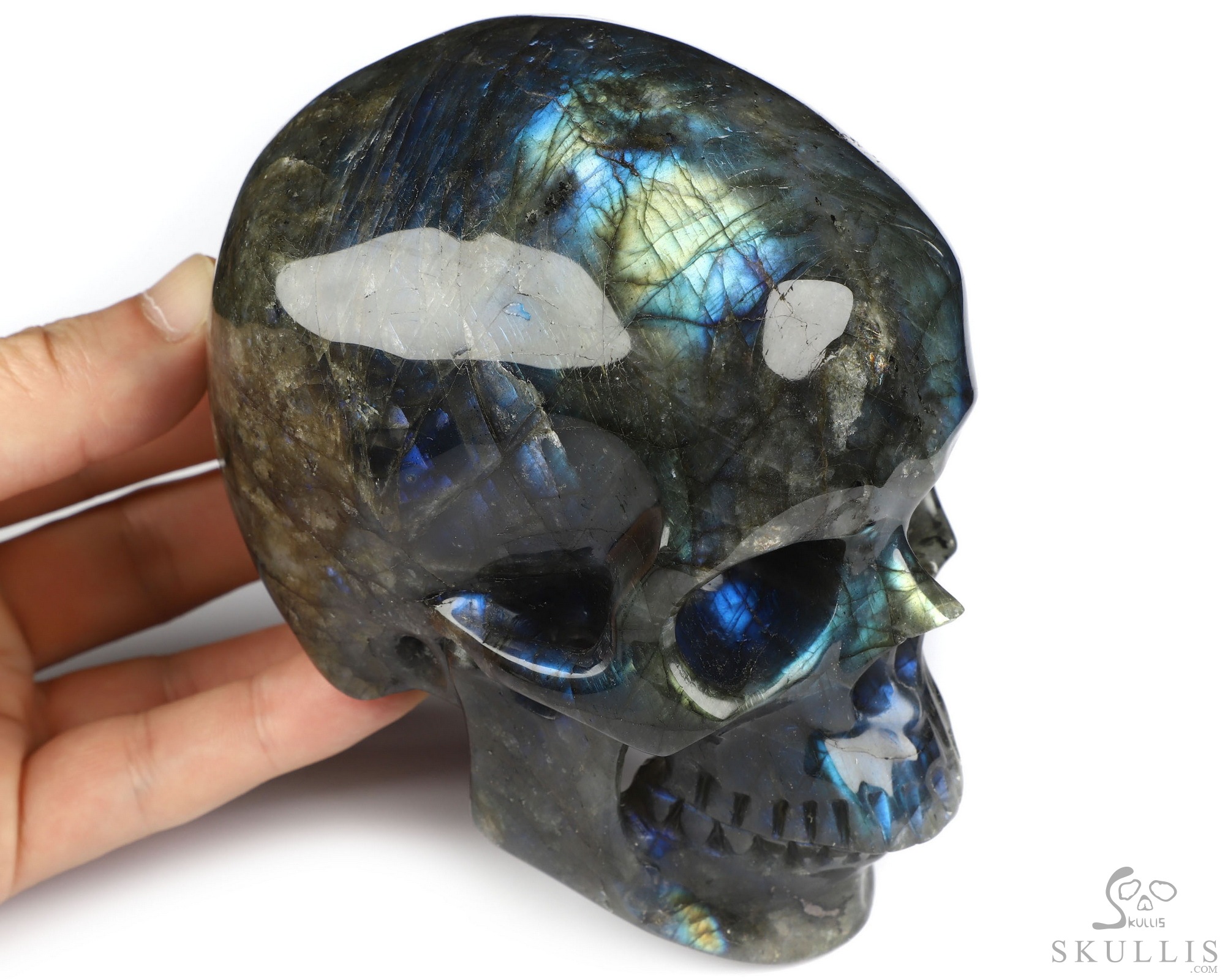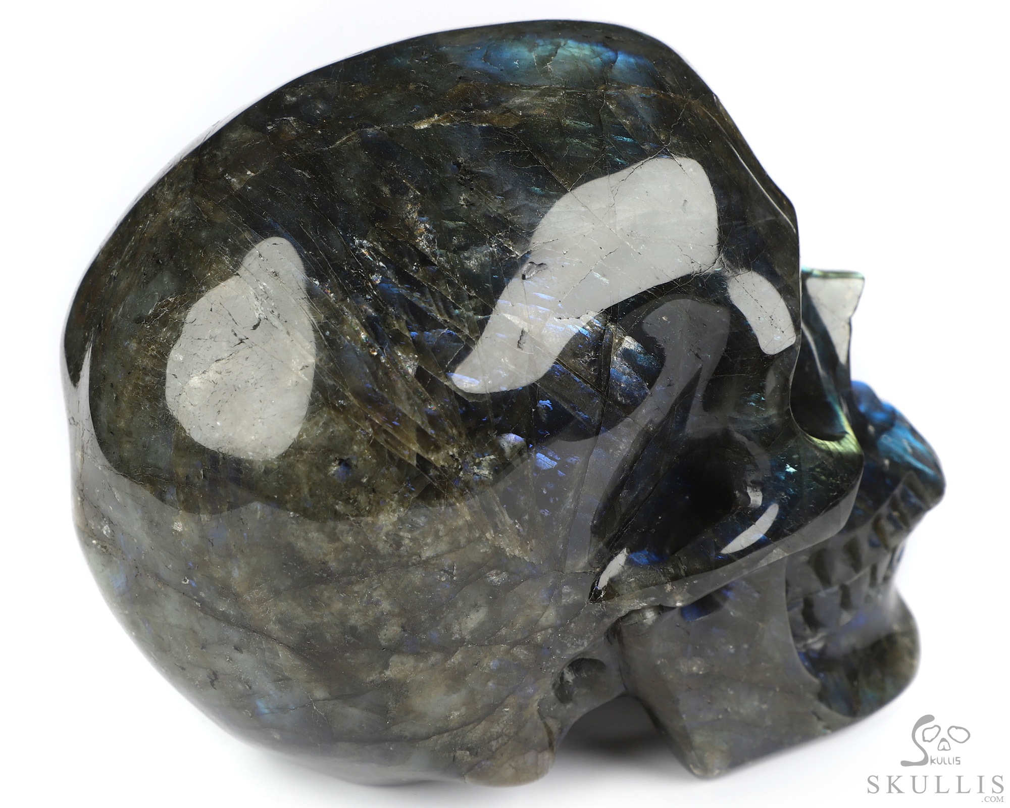 Huge 5.0" Labradorite Carved Crystal Skull, Realistic, Crystal Healing