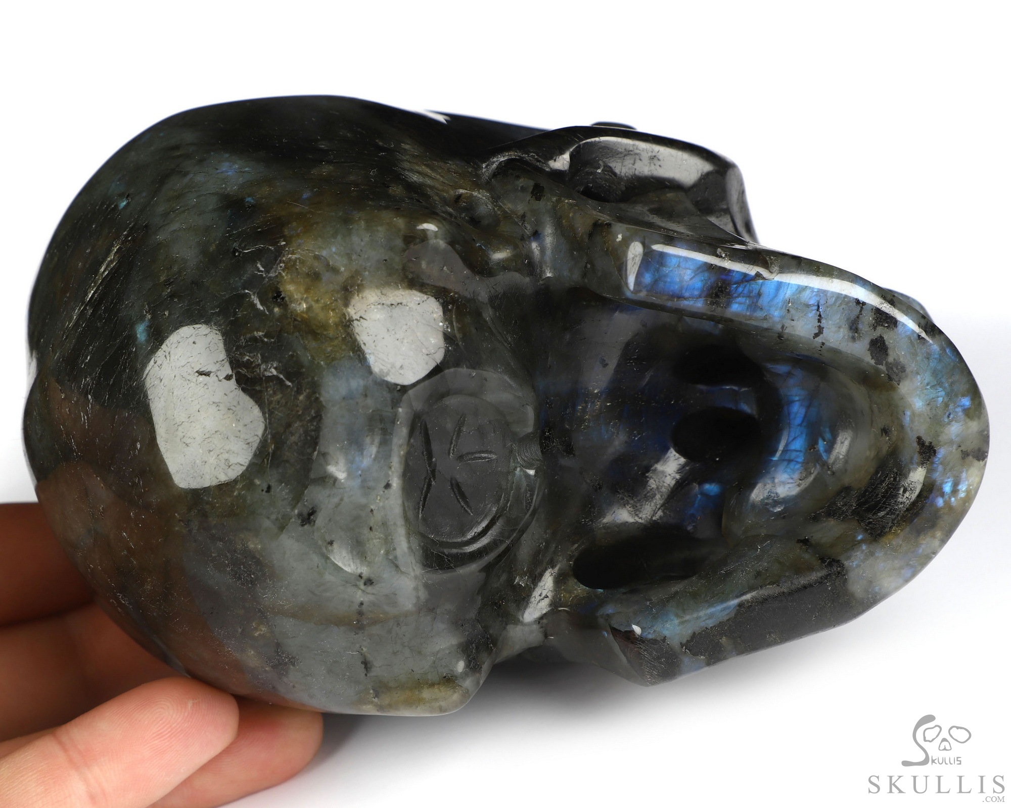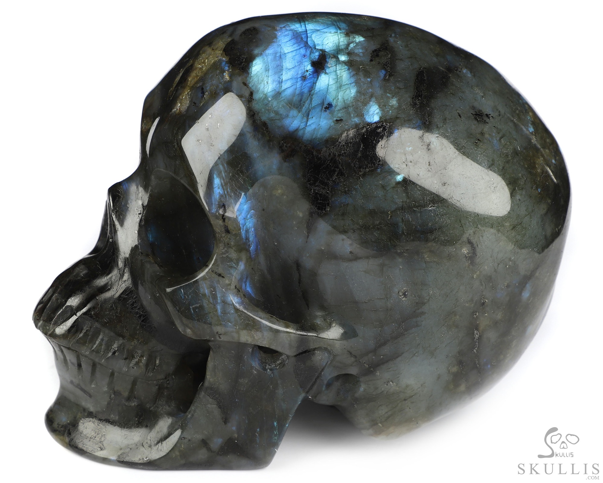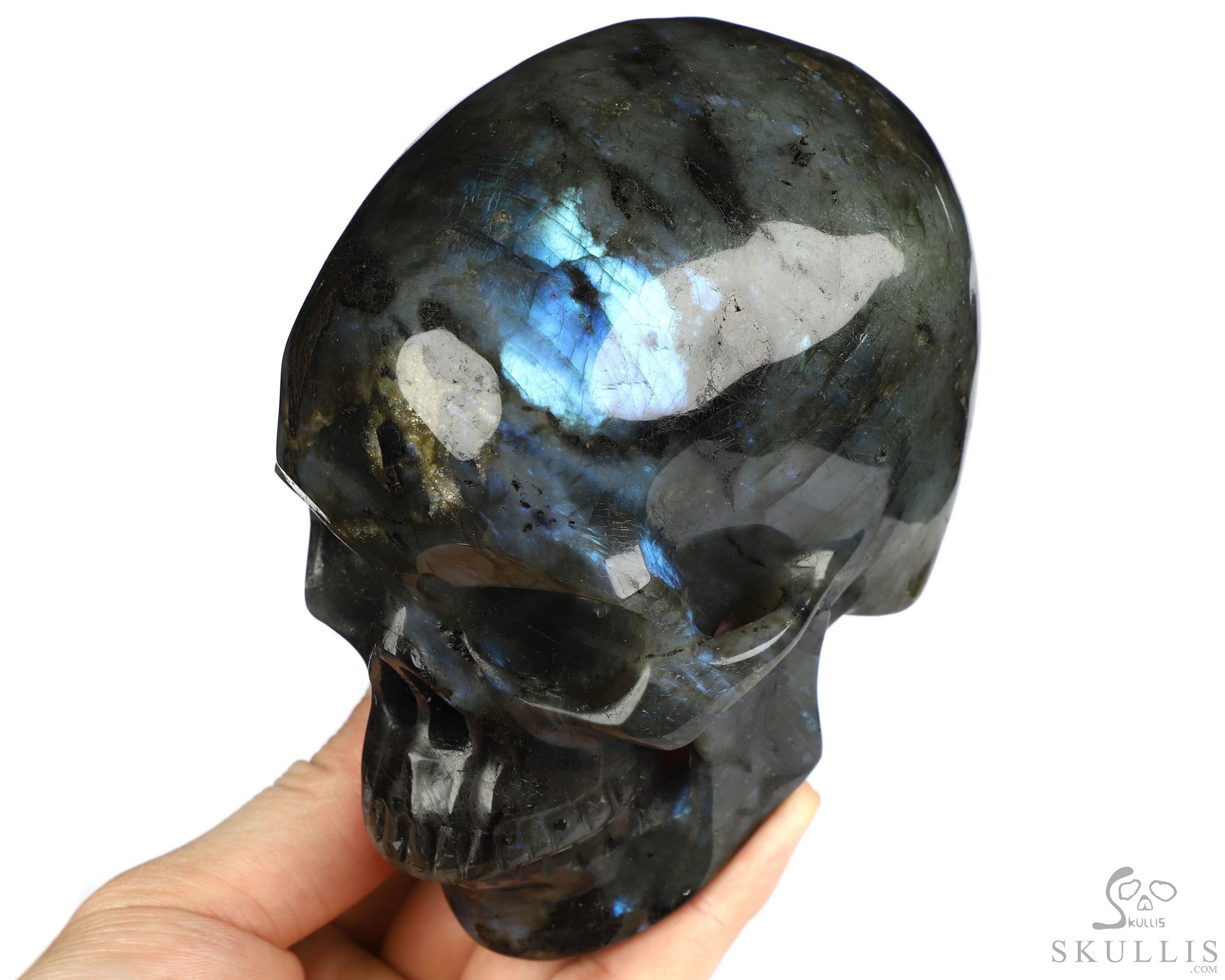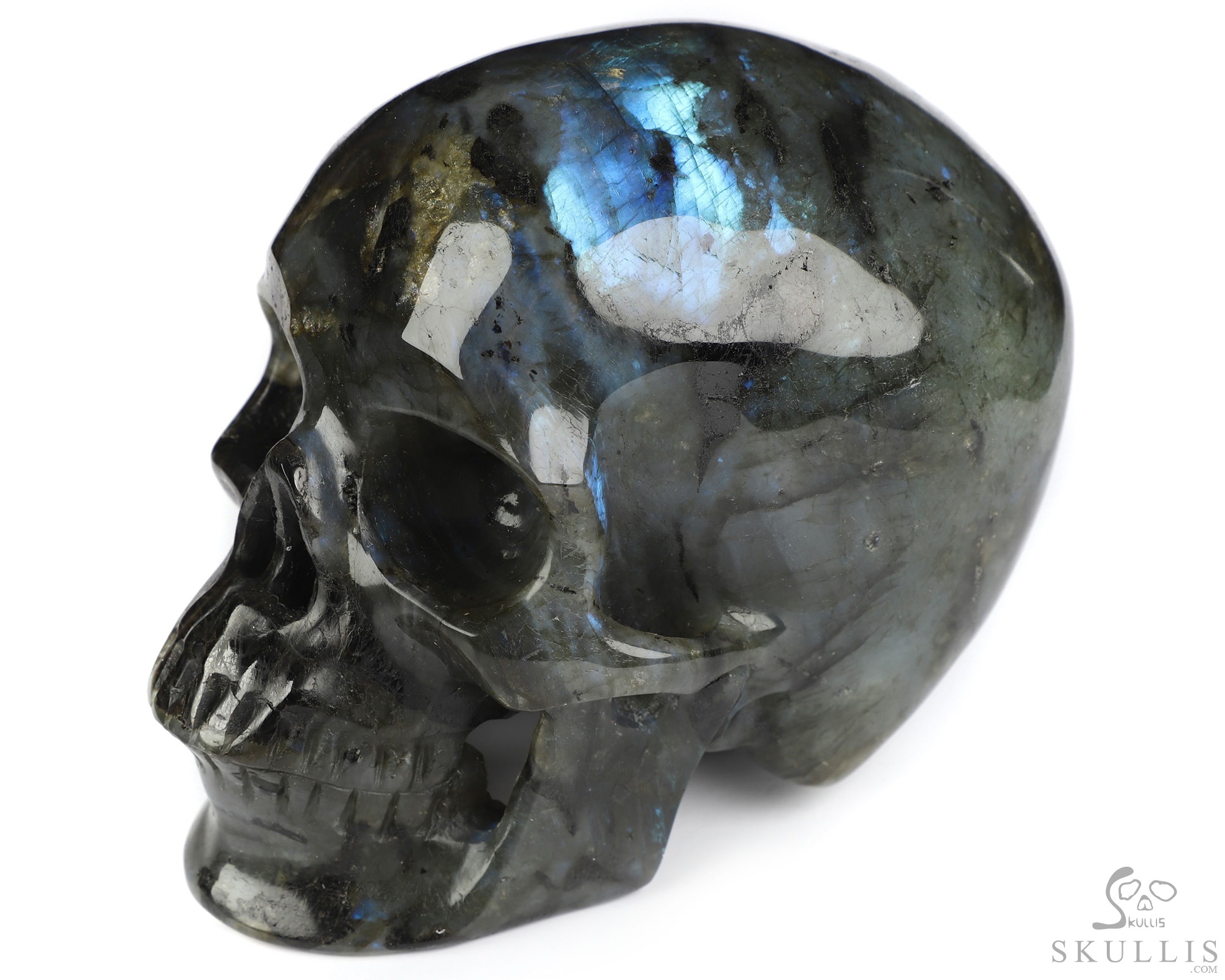 5.1" Labradorite Hand Carved Crystal Skull, Super Realistic, Crystal Healing