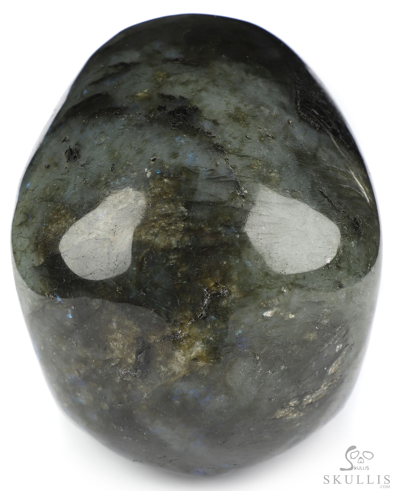 You are looking at a Labradorite skull. The skull is 5 inches from front to back.