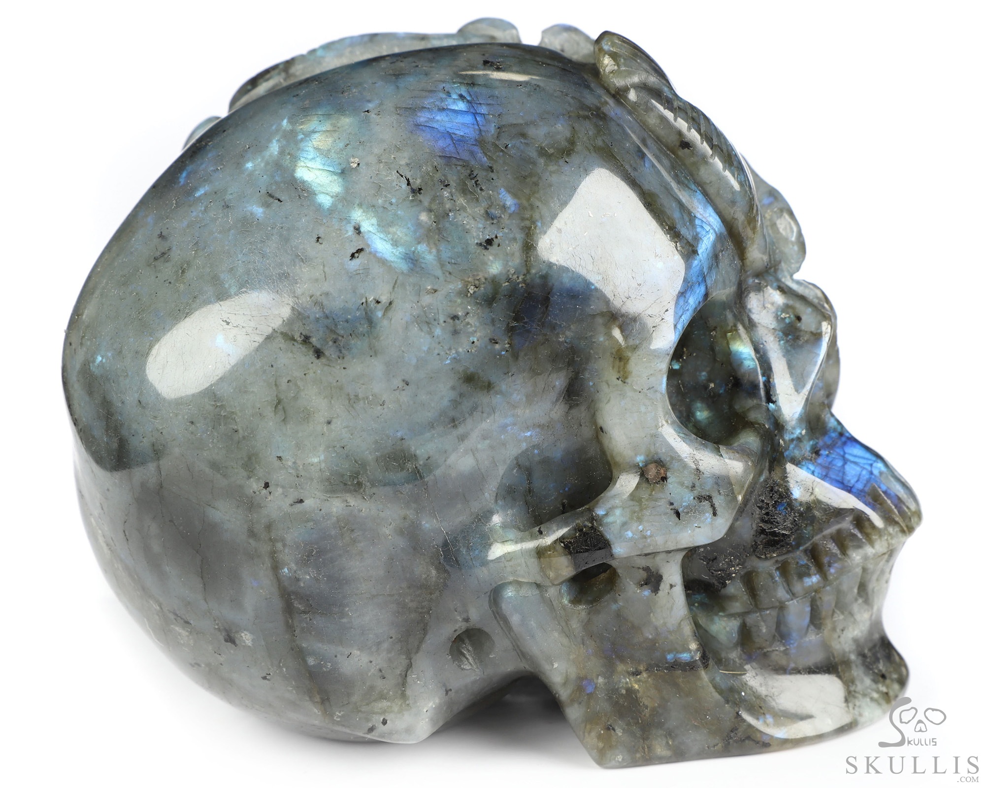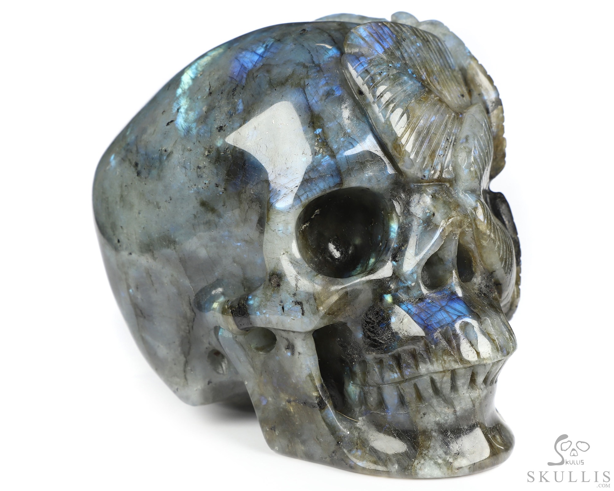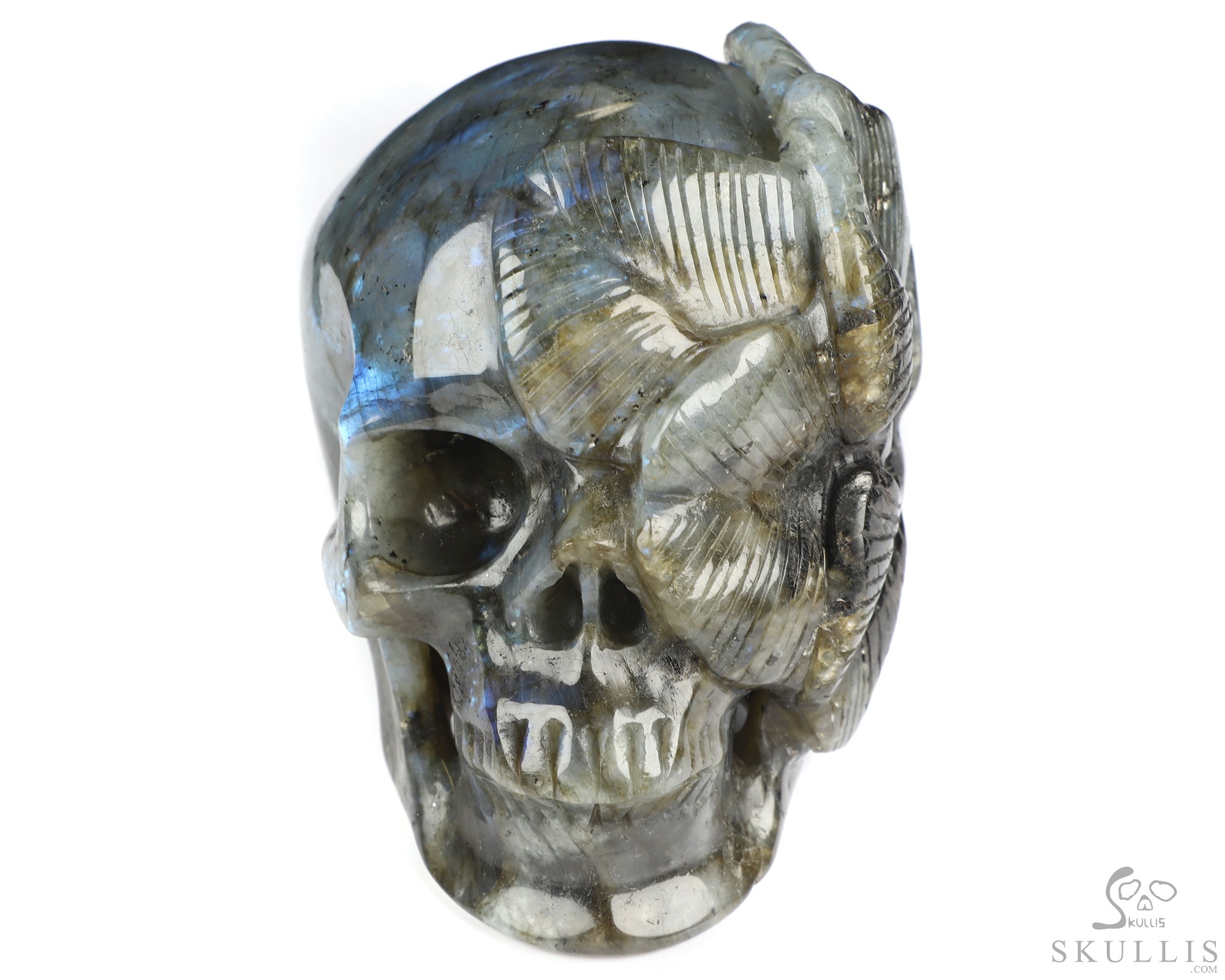 Viking Skull, 7.2" Labradorite Hand Carved Crystal Skull Fine Art Sculpture, Crystal Healing