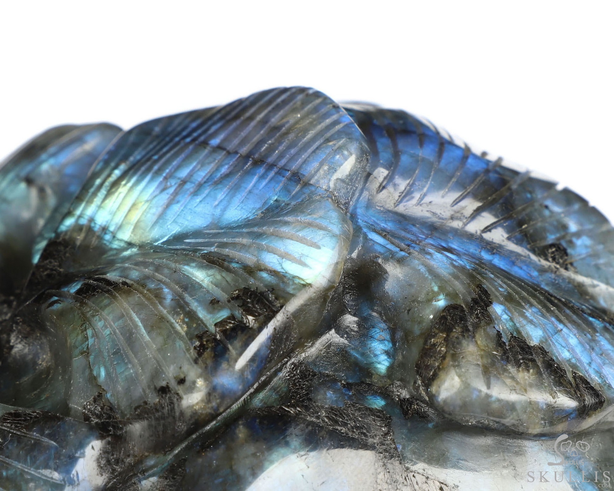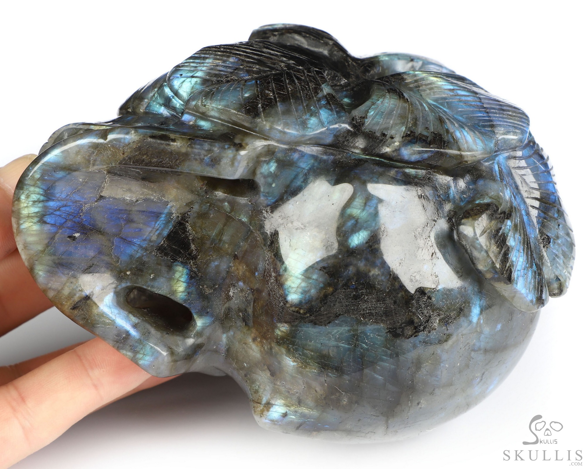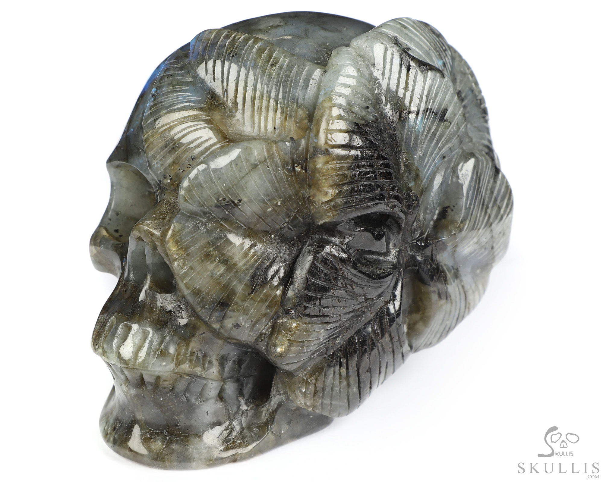 Viking Skull, 7.2" Labradorite Hand Carved Crystal Skull Fine Art Sculpture, Crystal Healing