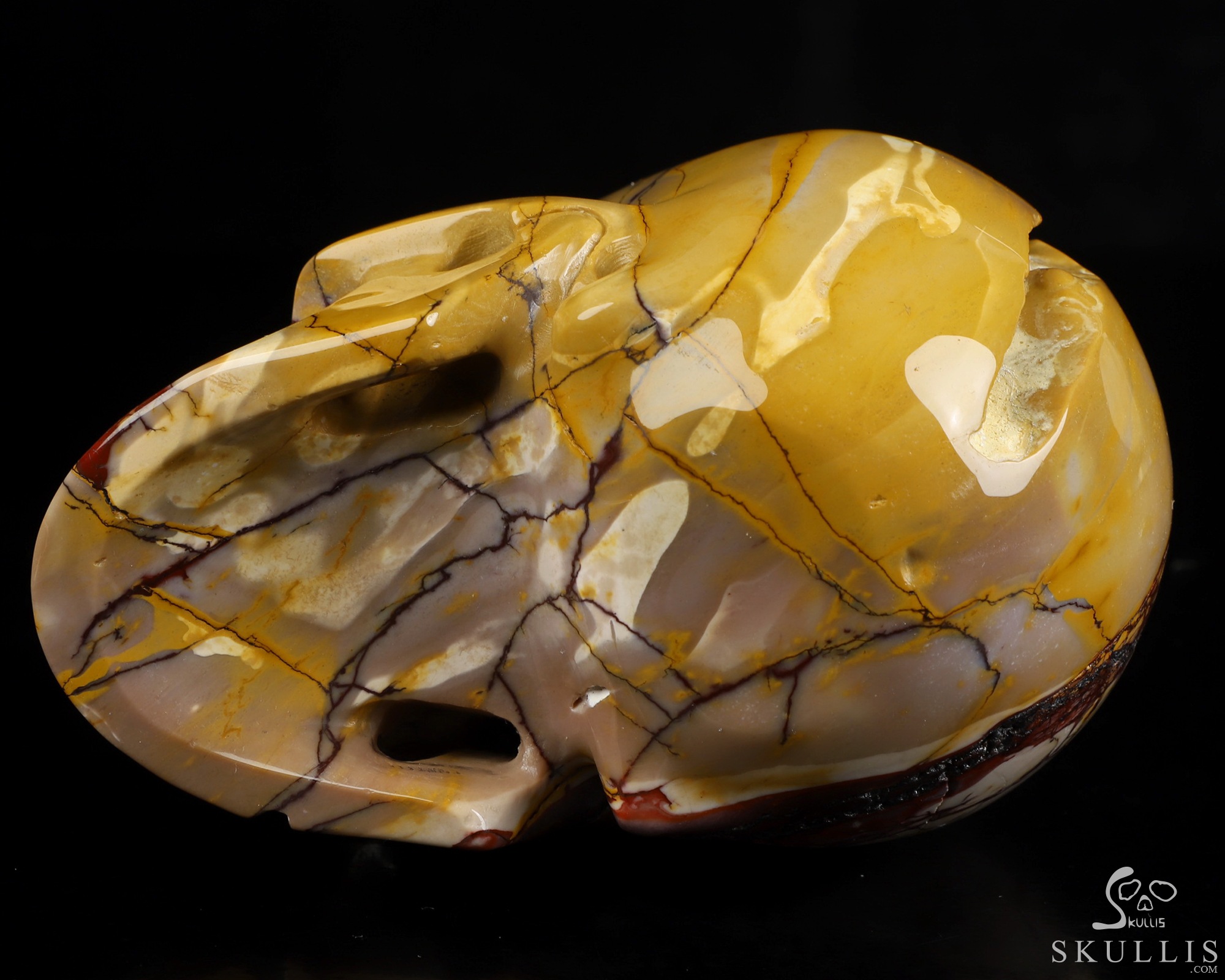 You are looking at a Mookaite Jasper skull. The skull is 5 inches from front to back.