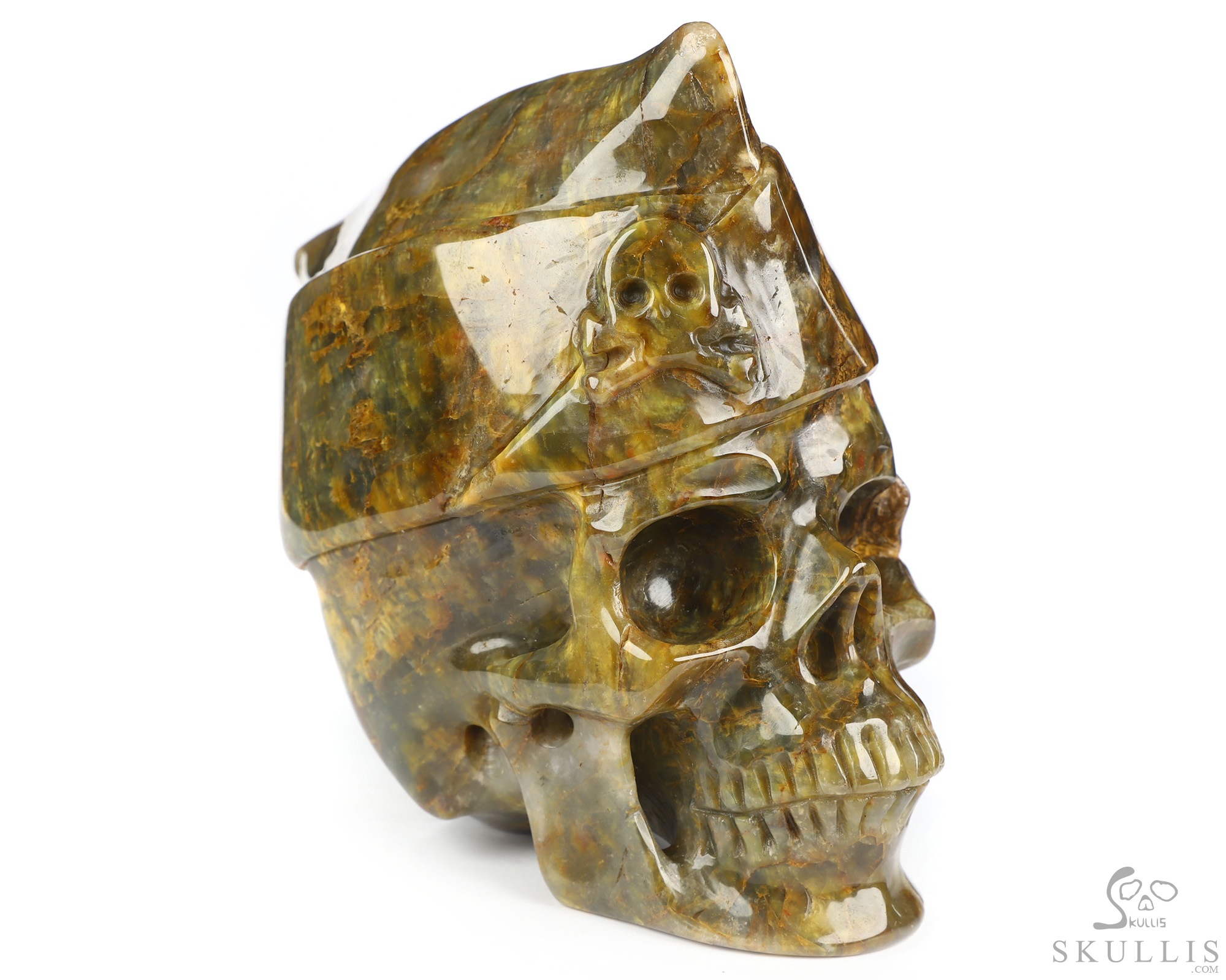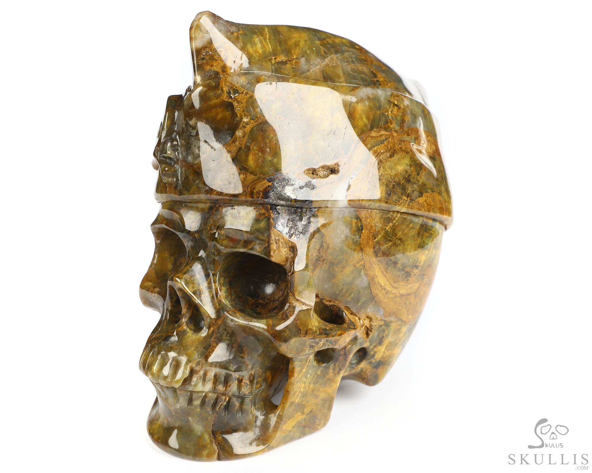 5.0" New Pietersite Hand Carved Crystal Skull and Navy Cap Fine Art Sculpture, Crystal Healing