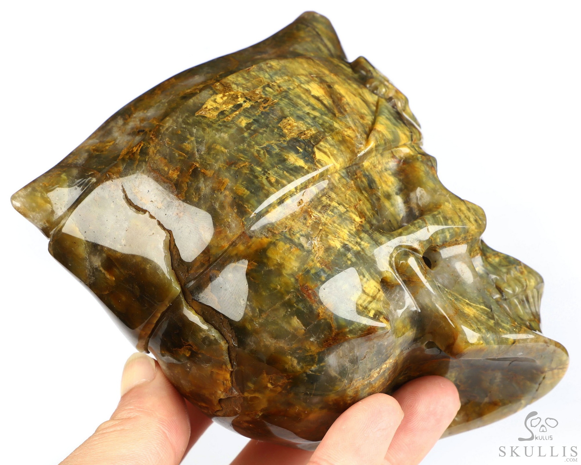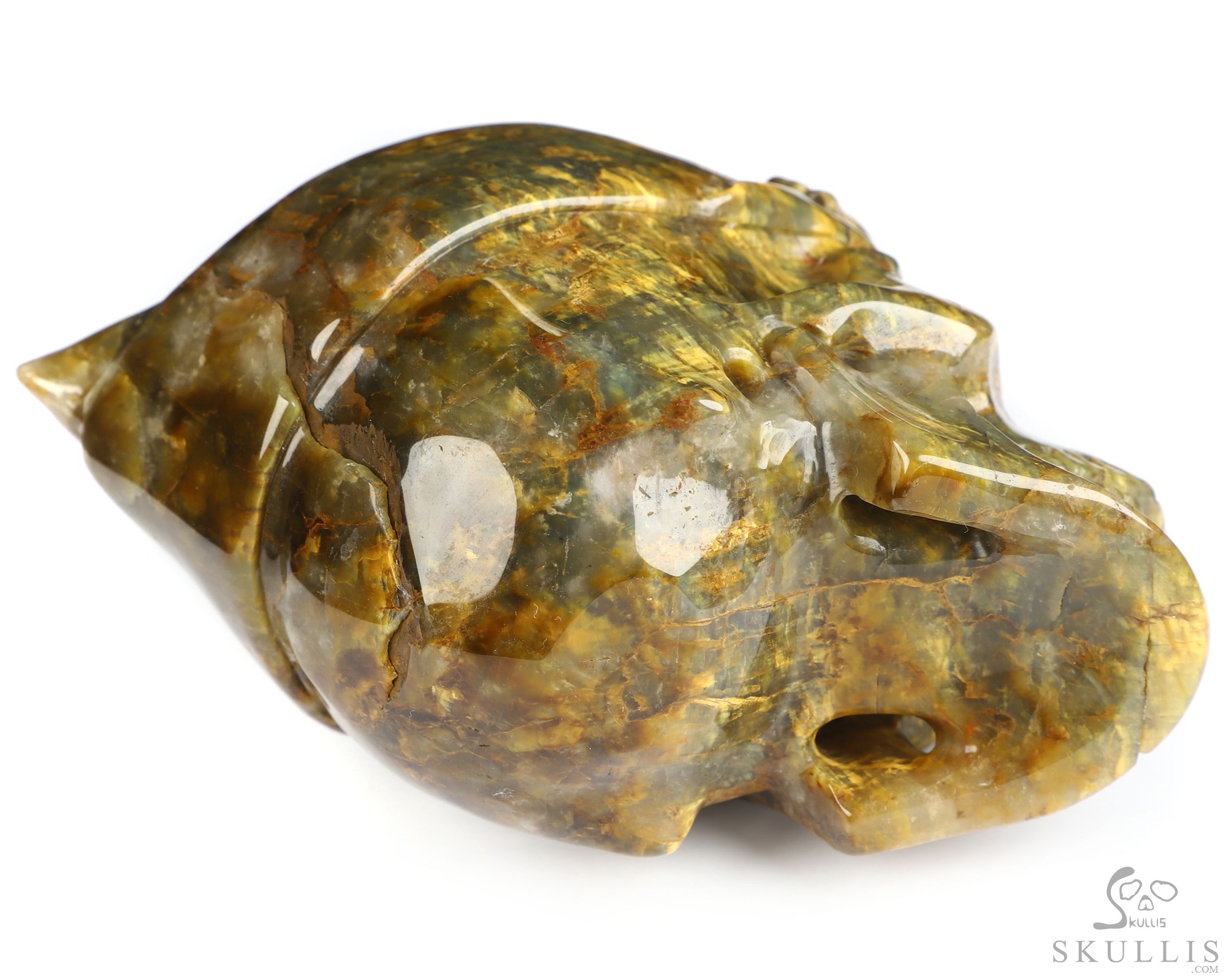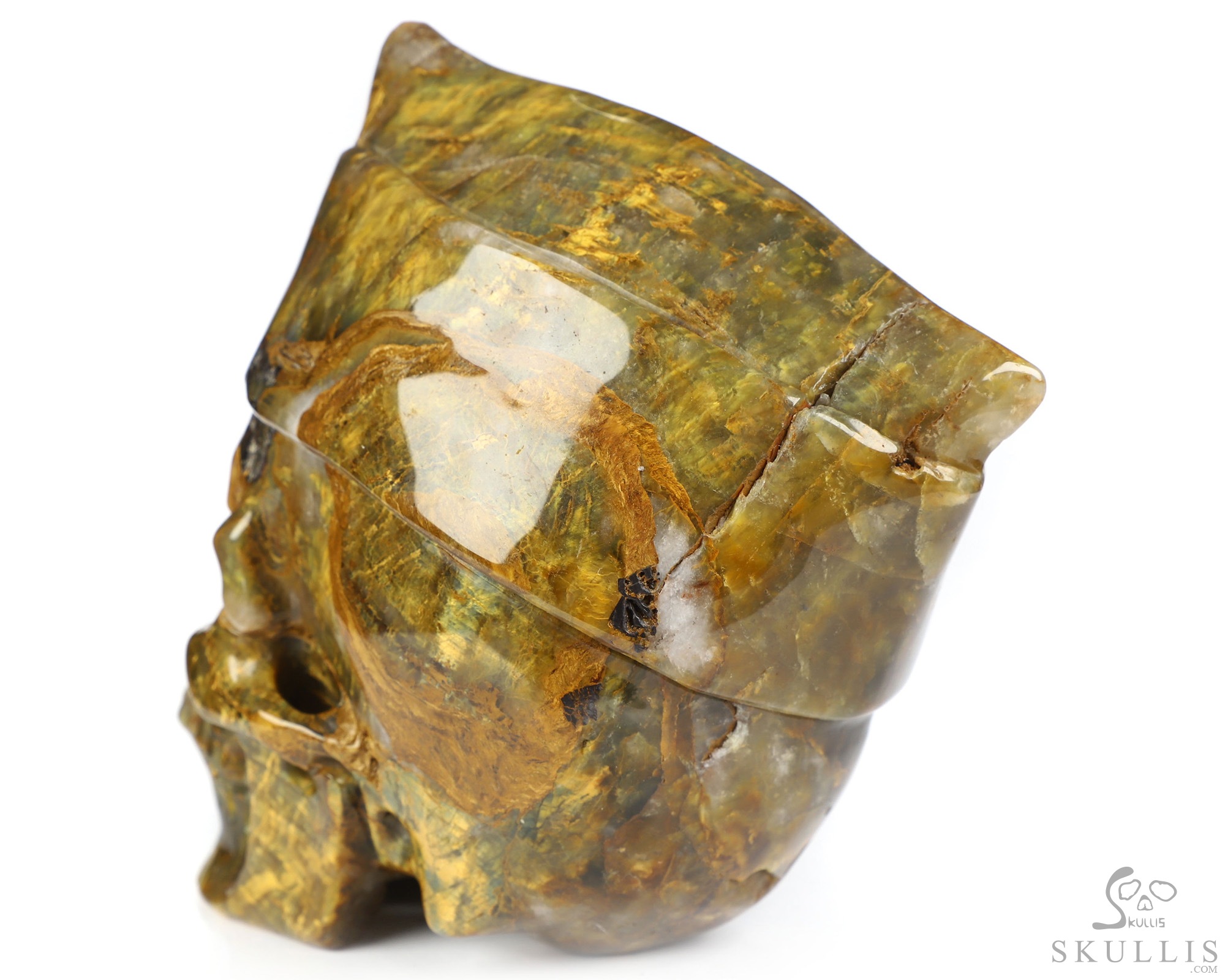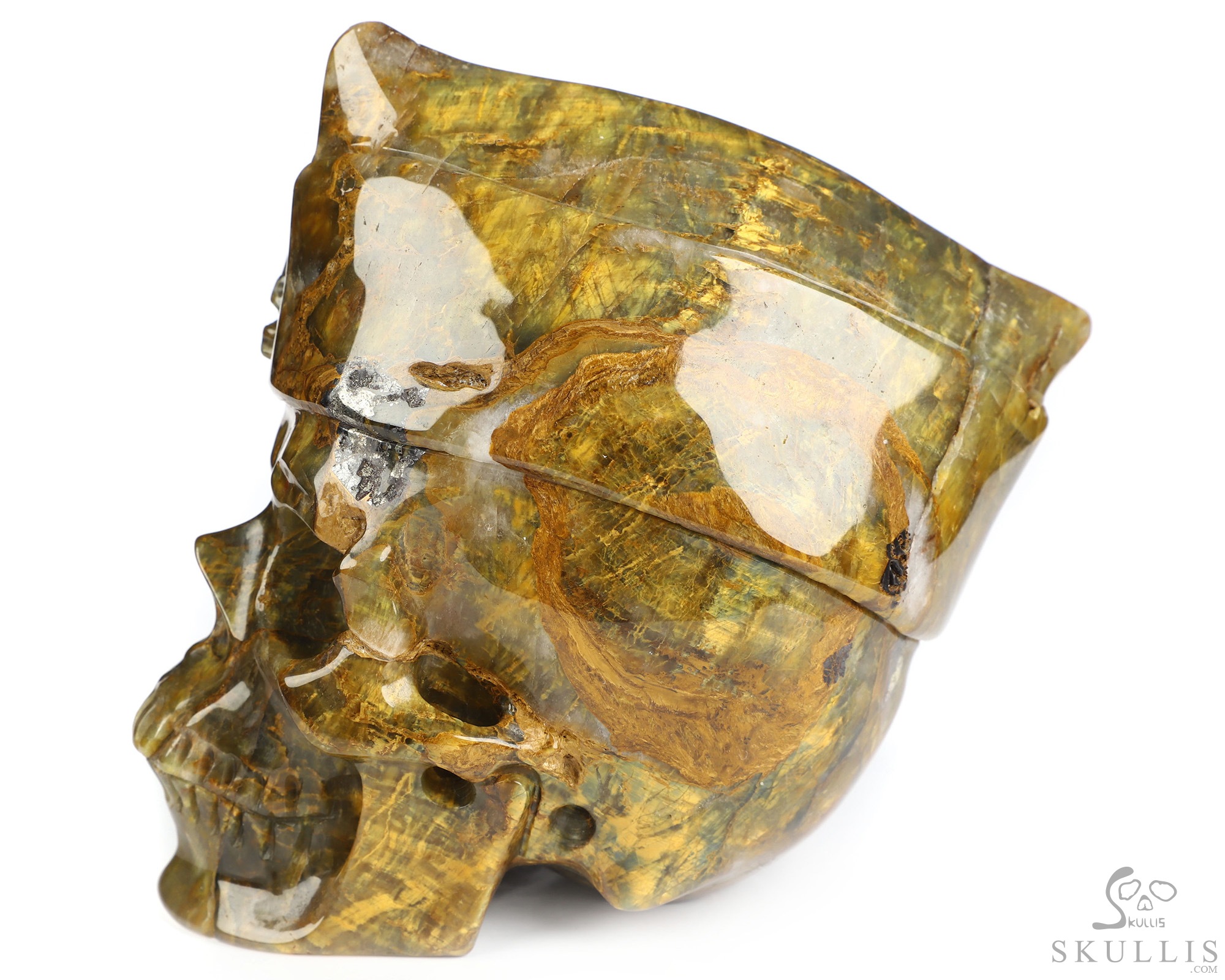 Huge 4.2" New Pietersite Carved Crystal Female Alien Skull, Labradorite Eyes,, Crystal Healing