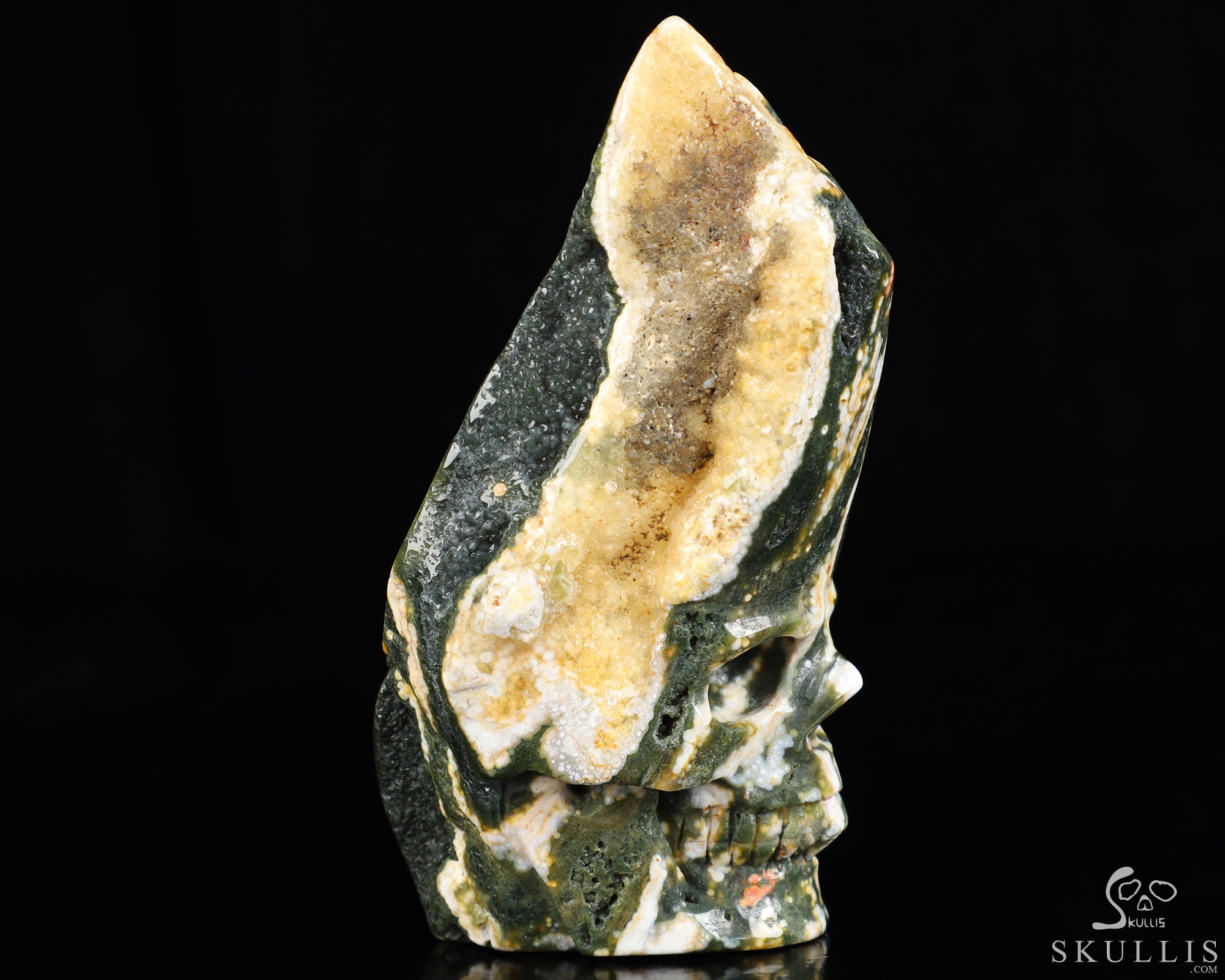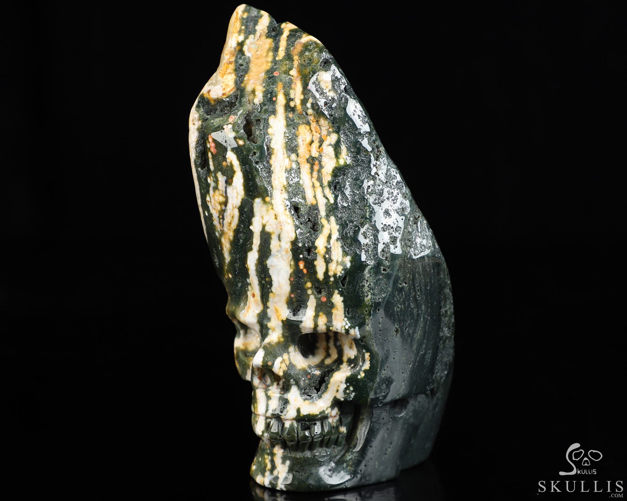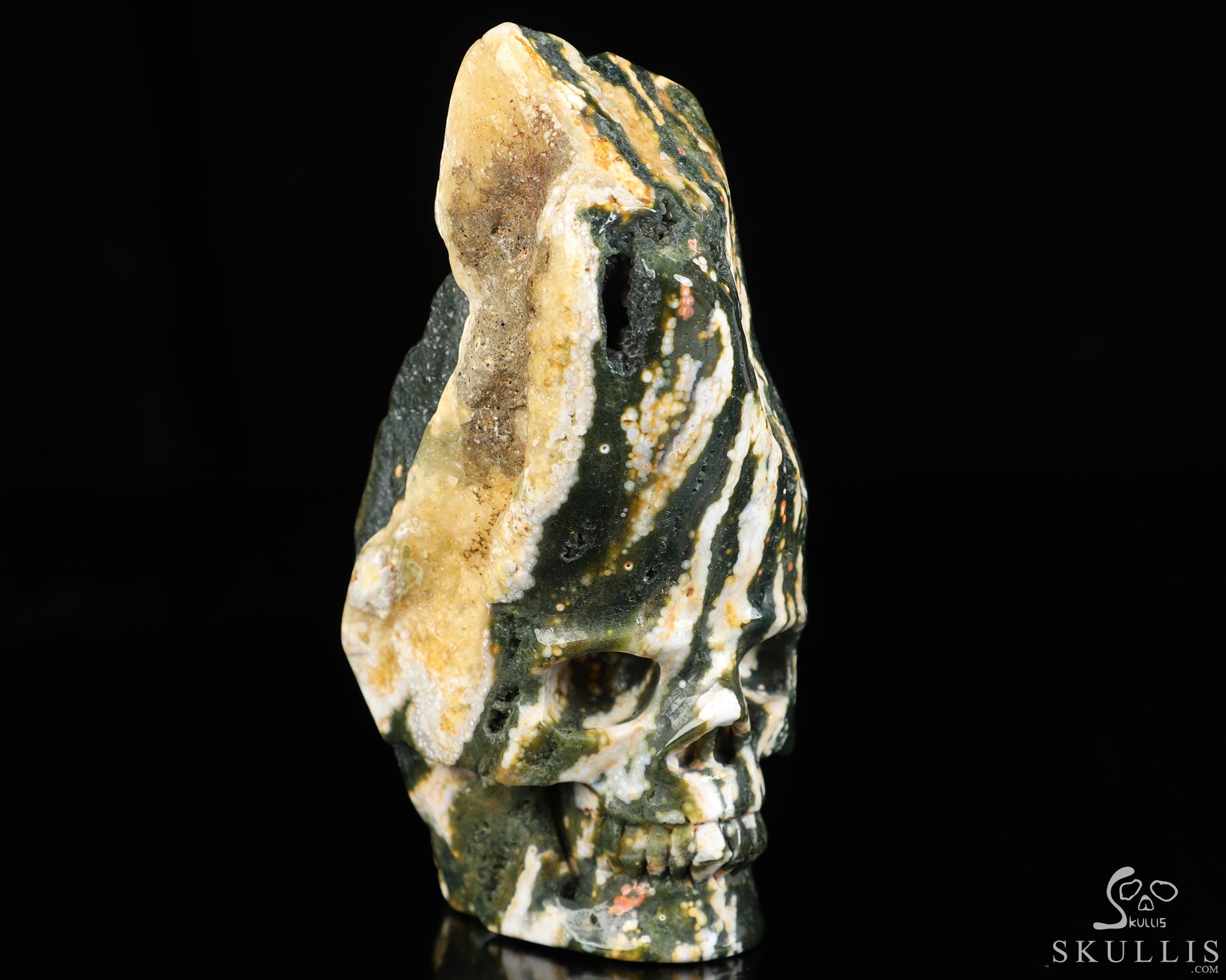 Geode Huge 5.0" Ocean Jasper Carved Crystal Skull & Spine, Realistic, Crystal Healing