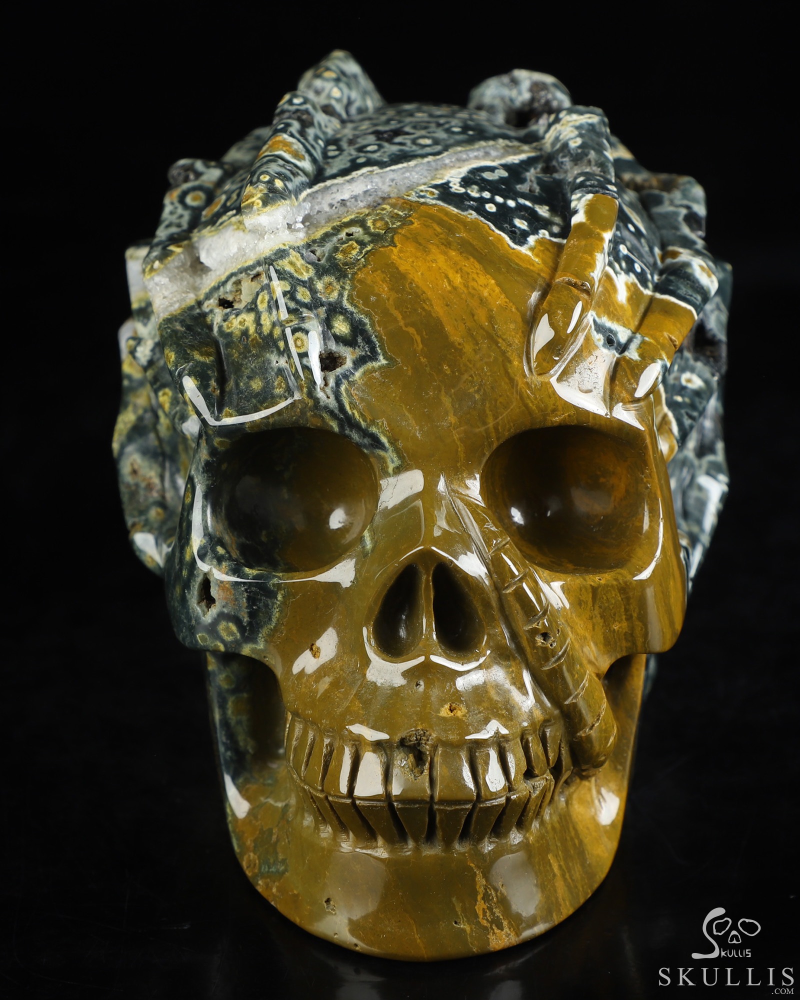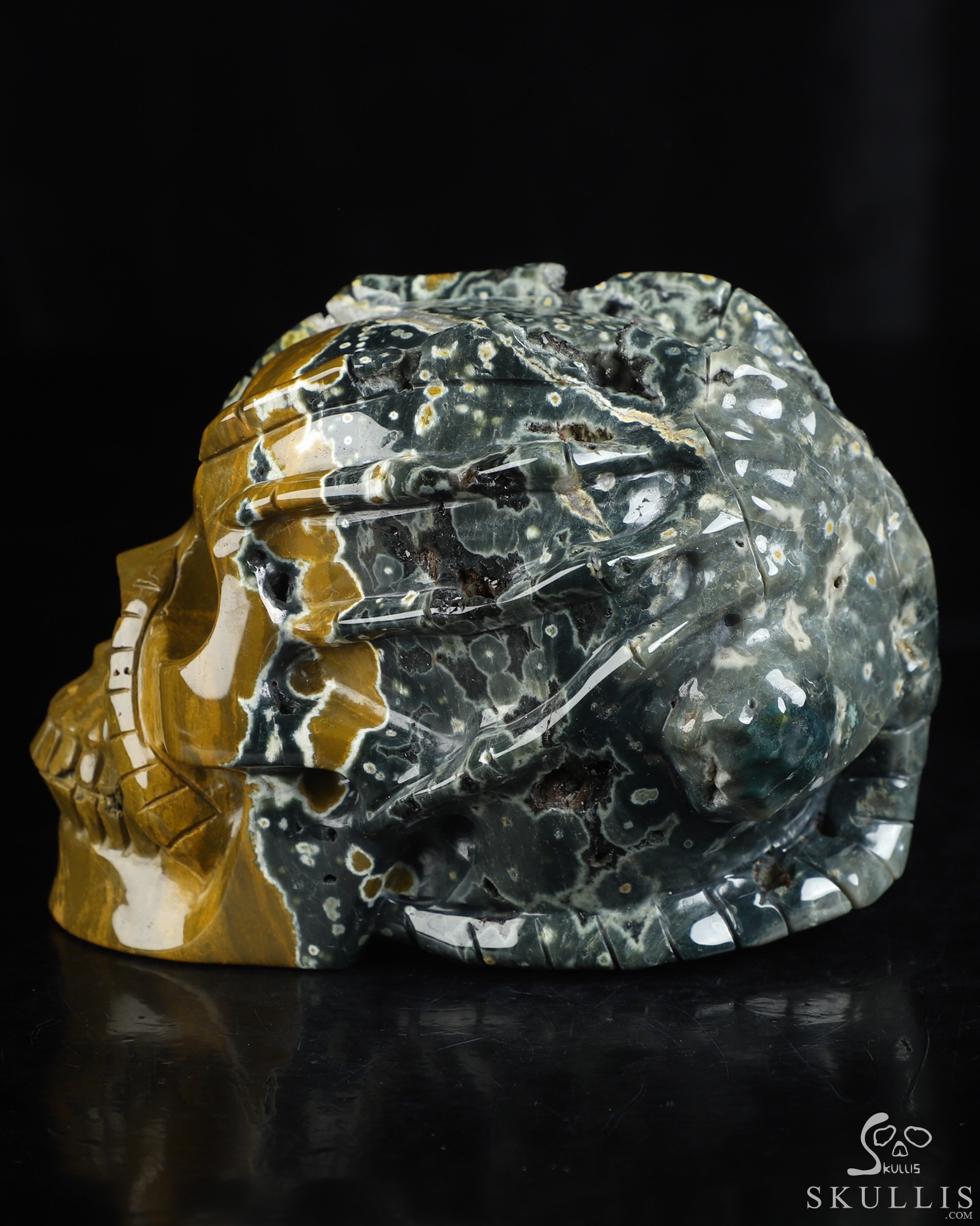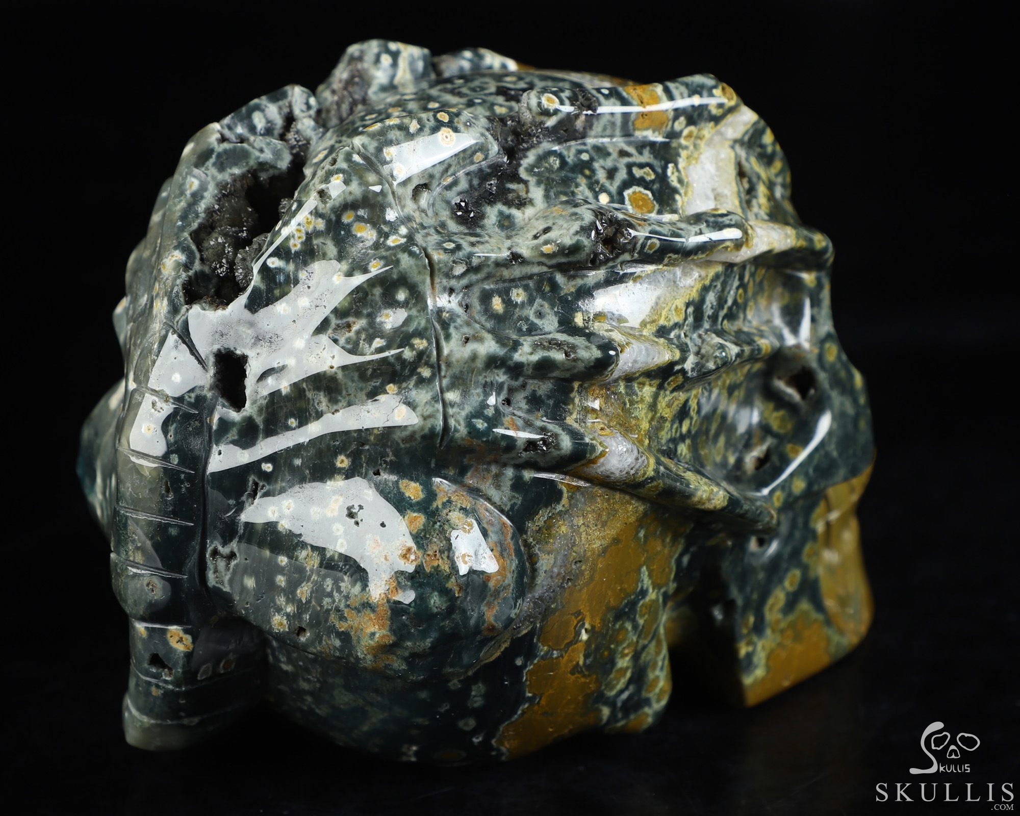 5.0" Ocean Jasper Hand Carved Crystal Skull and Facehugger Sculpture, Crystal Healing