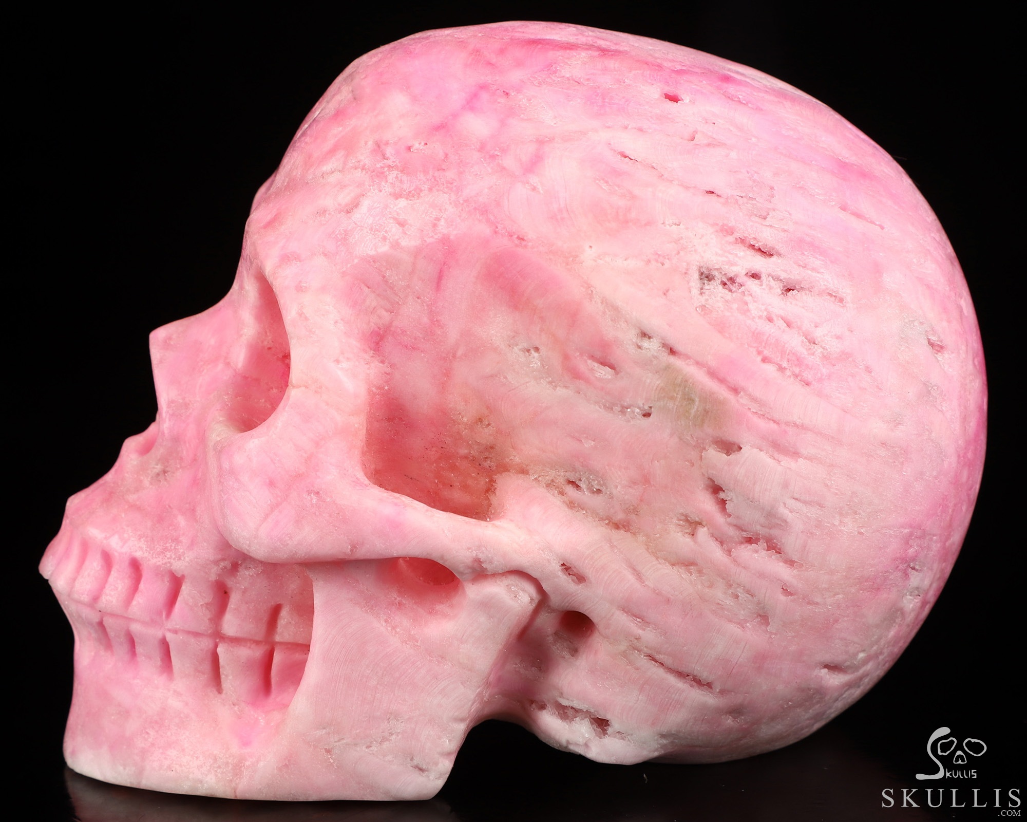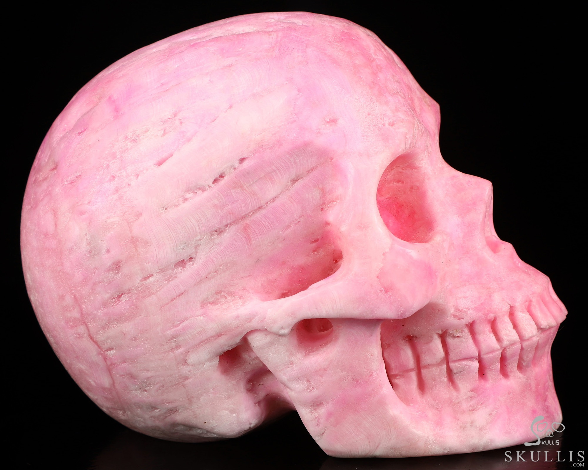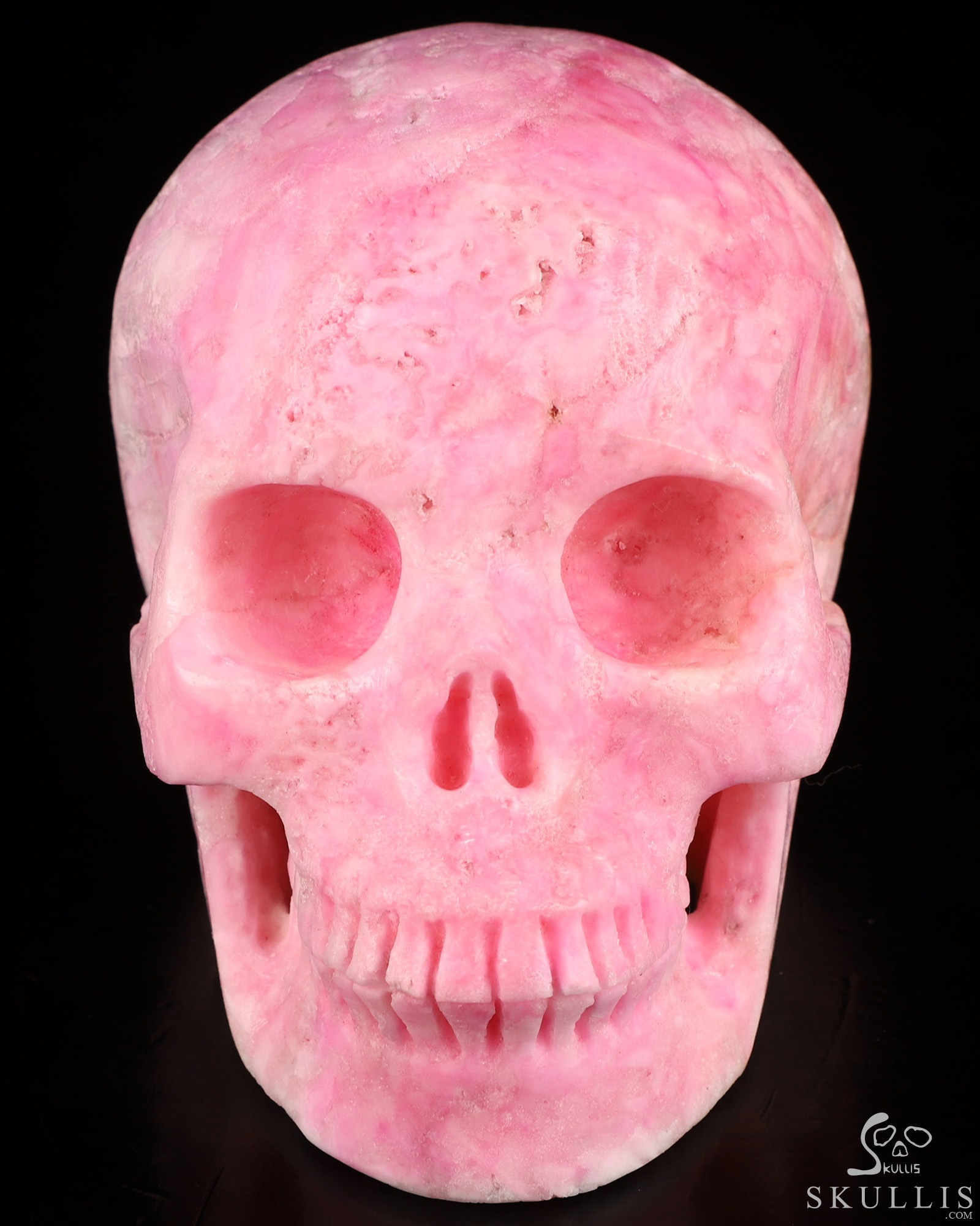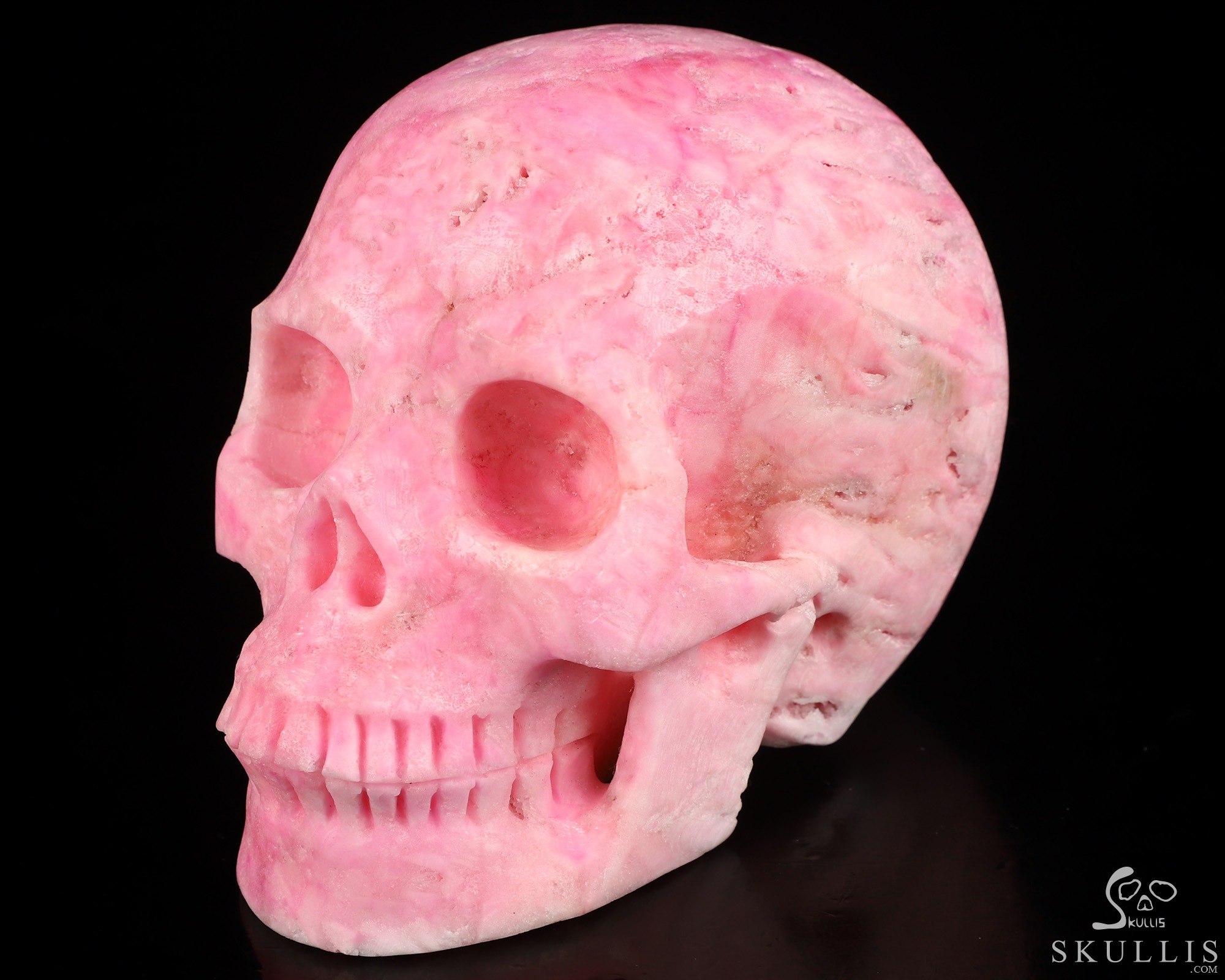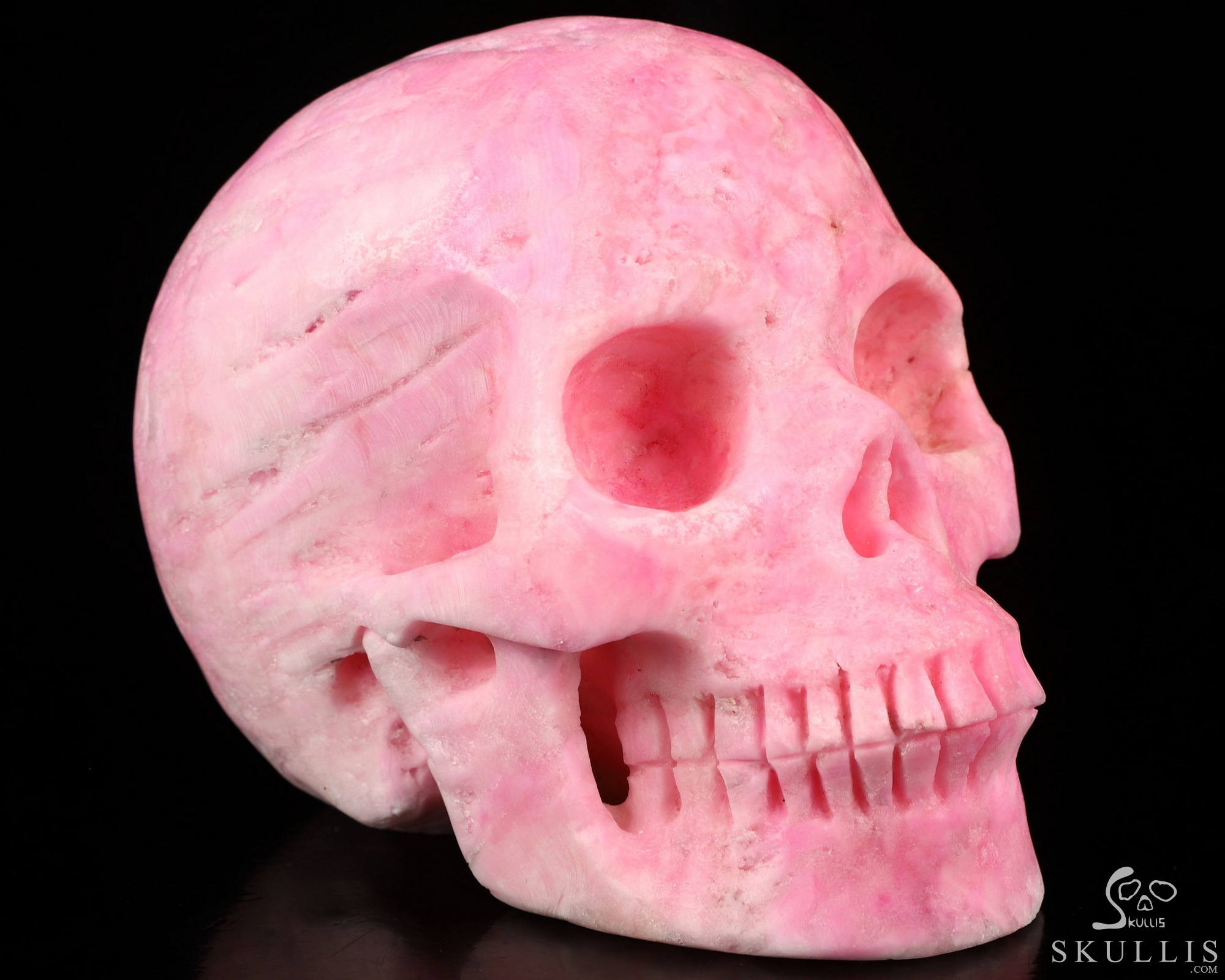 Lifesized 7.7" Pink Aragonite Carved Crystal Skull, Super Realistic, Healing