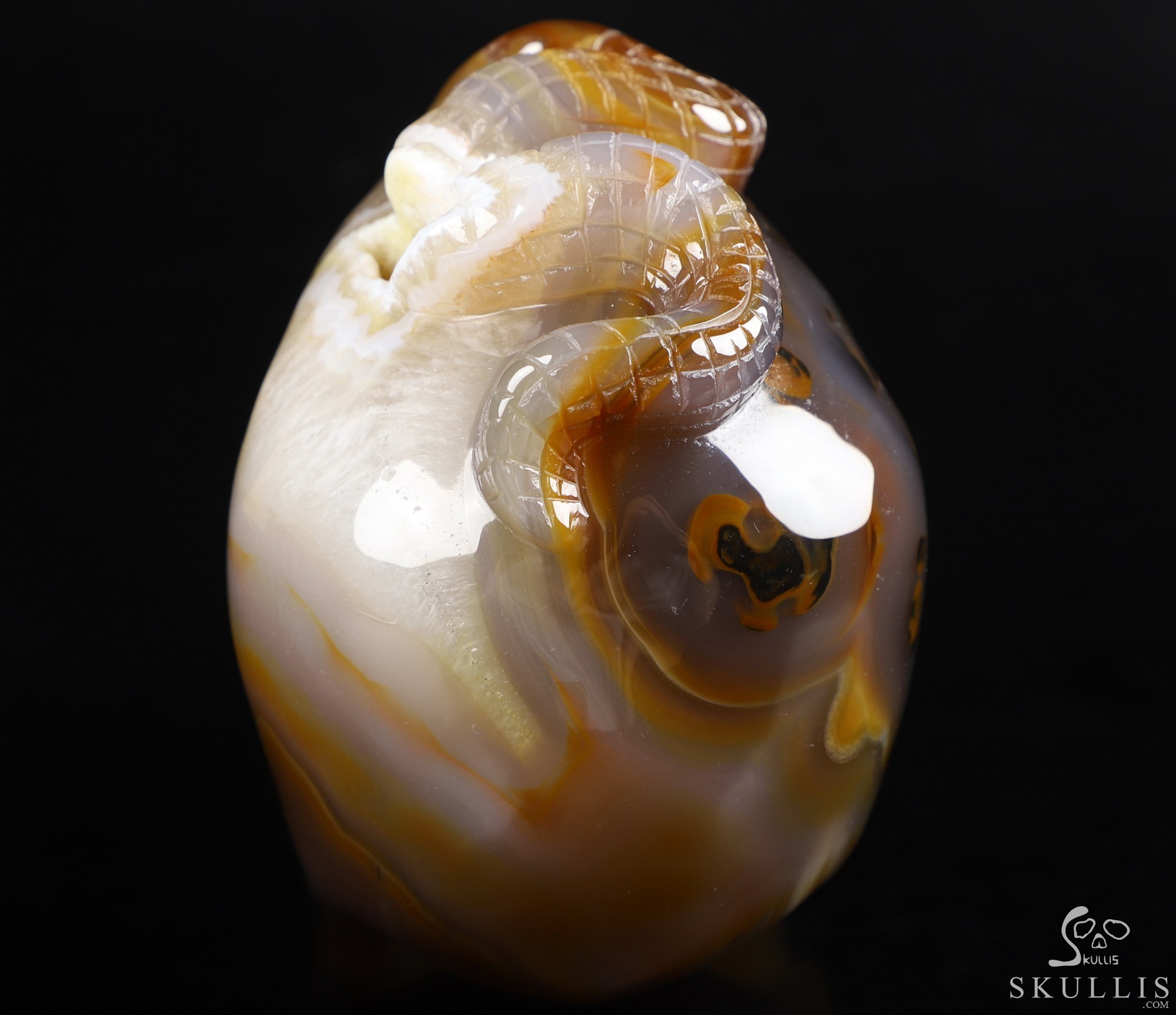 5.0" Premium Brazilian Agate Carved Crystal Skull & Snake, Crystal Healing
