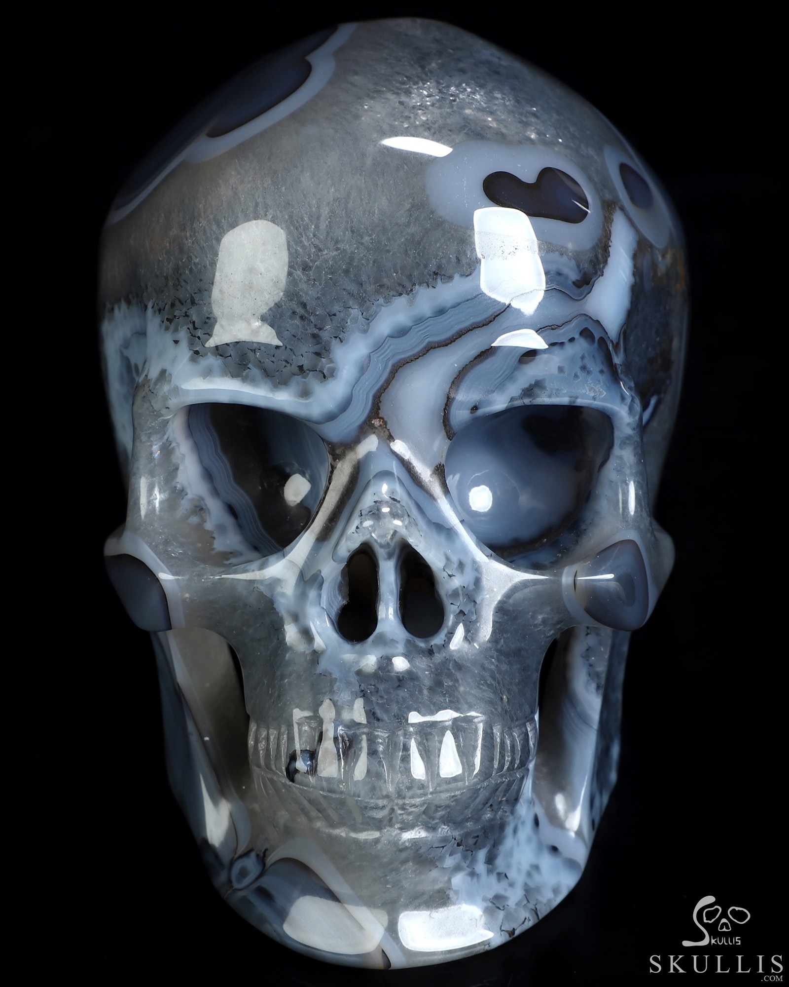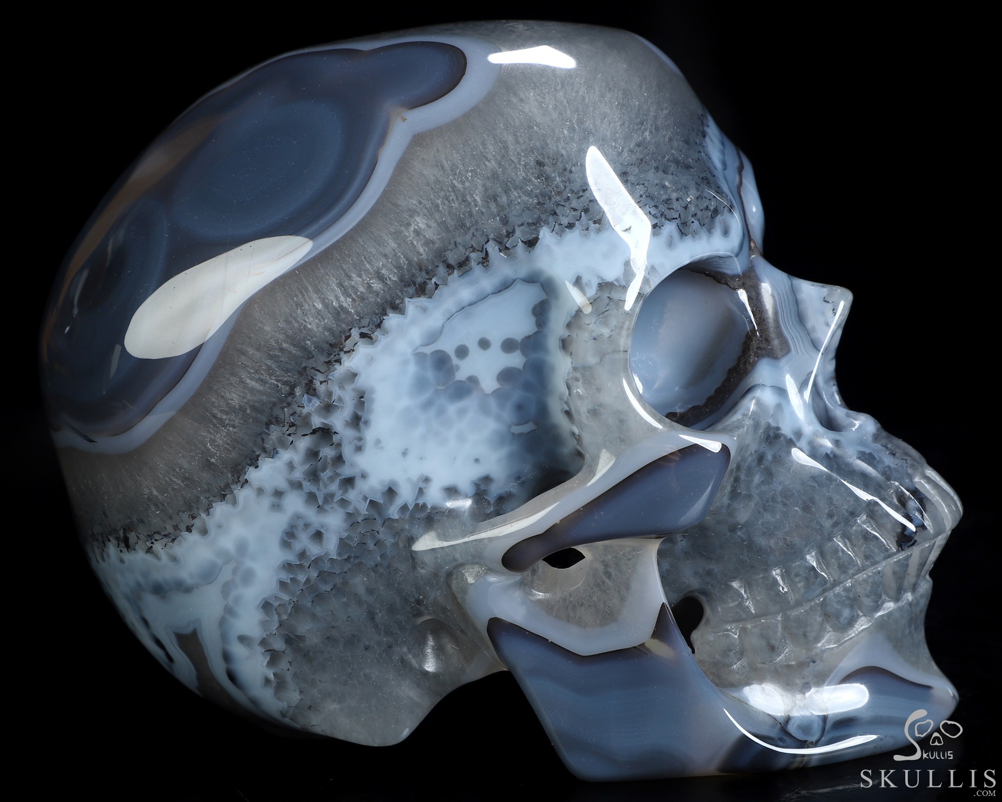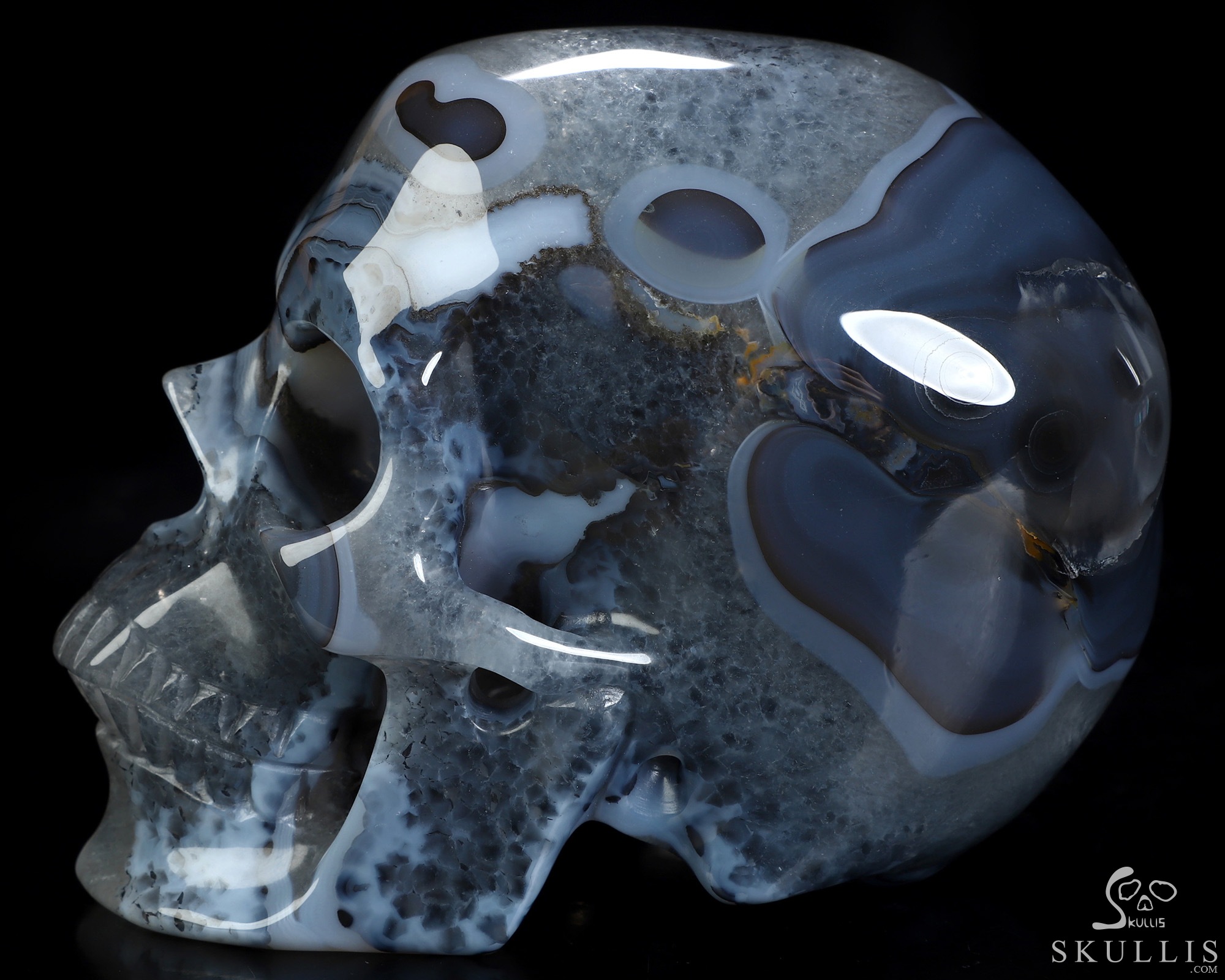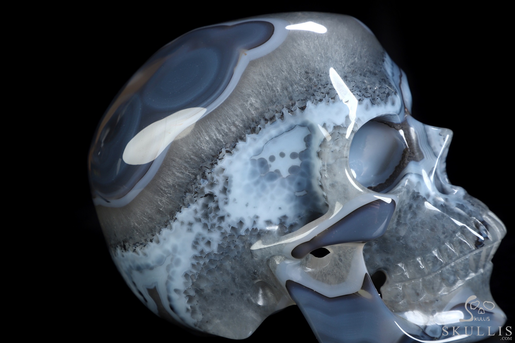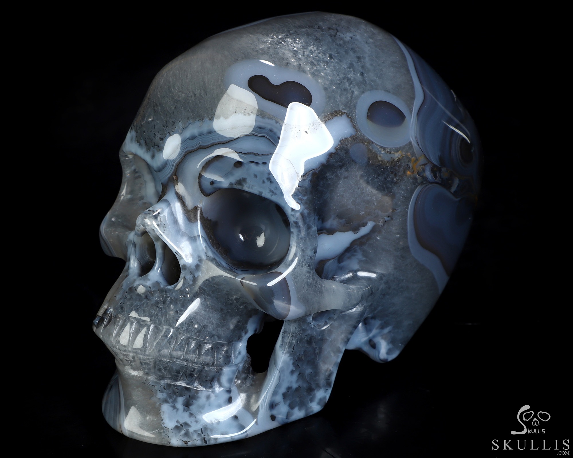 5.1" Premium Brazilian Agate Hand Carved Crystal Skull, Super Realistic, Crystal Healing