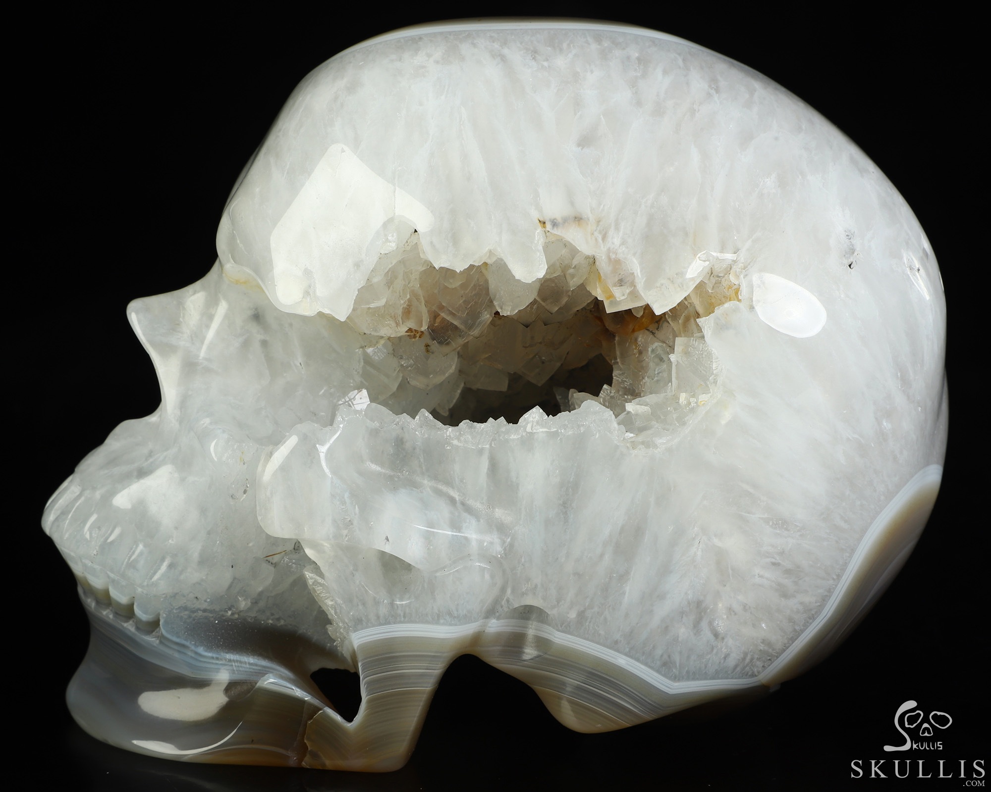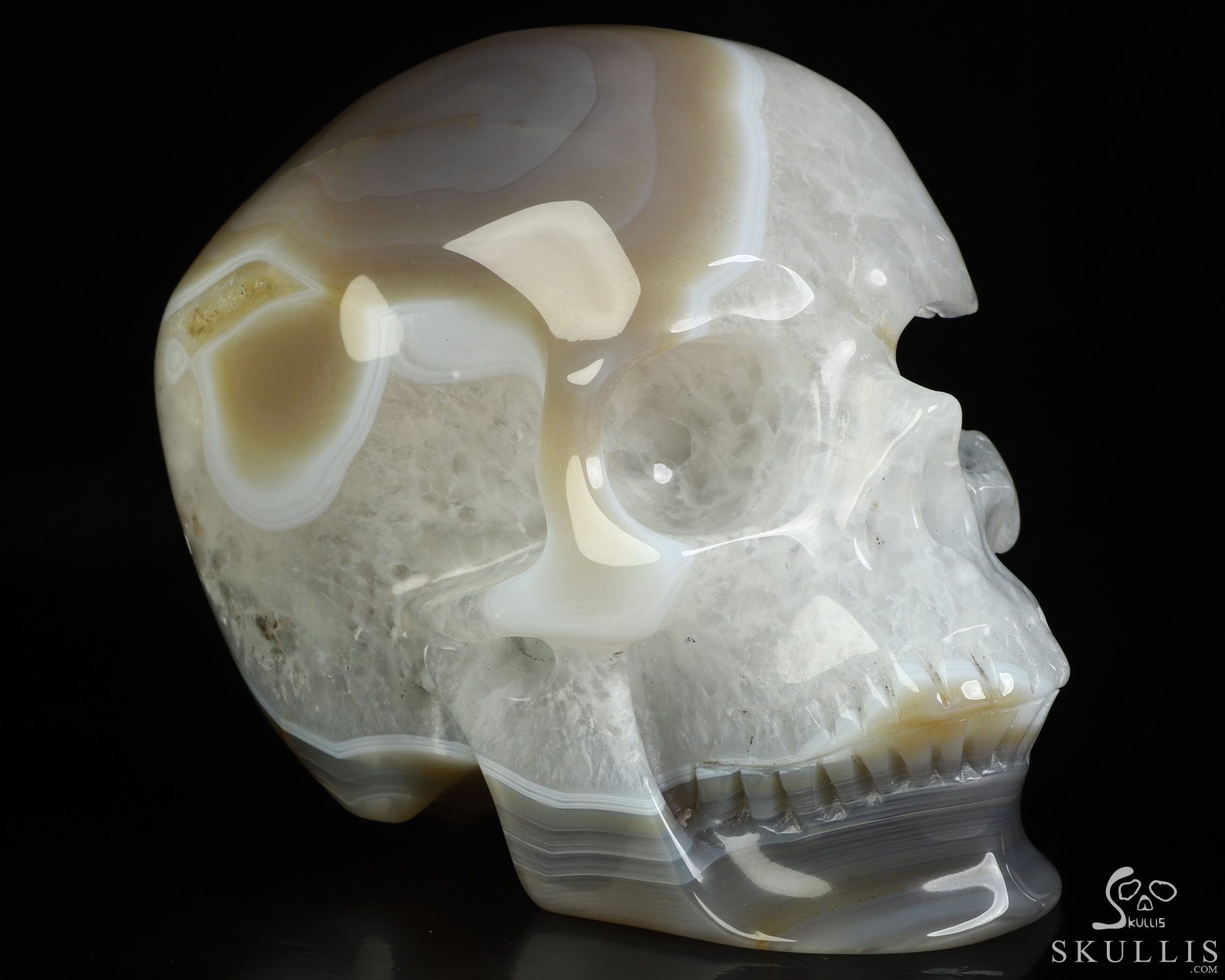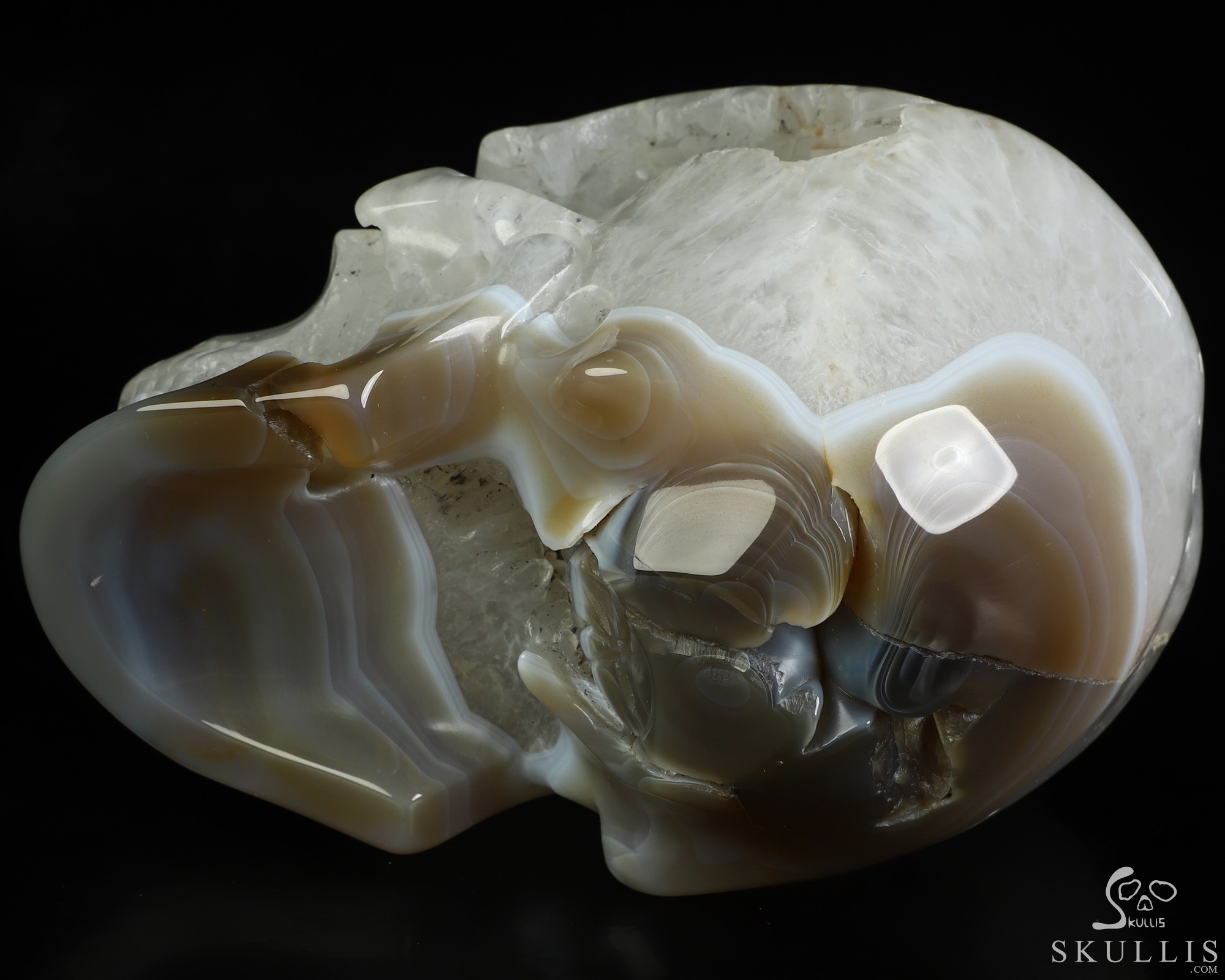 5.1" Premium Brazilian Agate Hand Carved Crystal Skull, Super Realistic, Crystal Healing