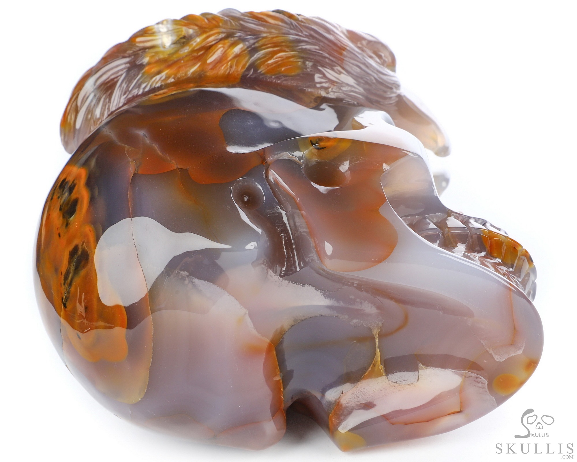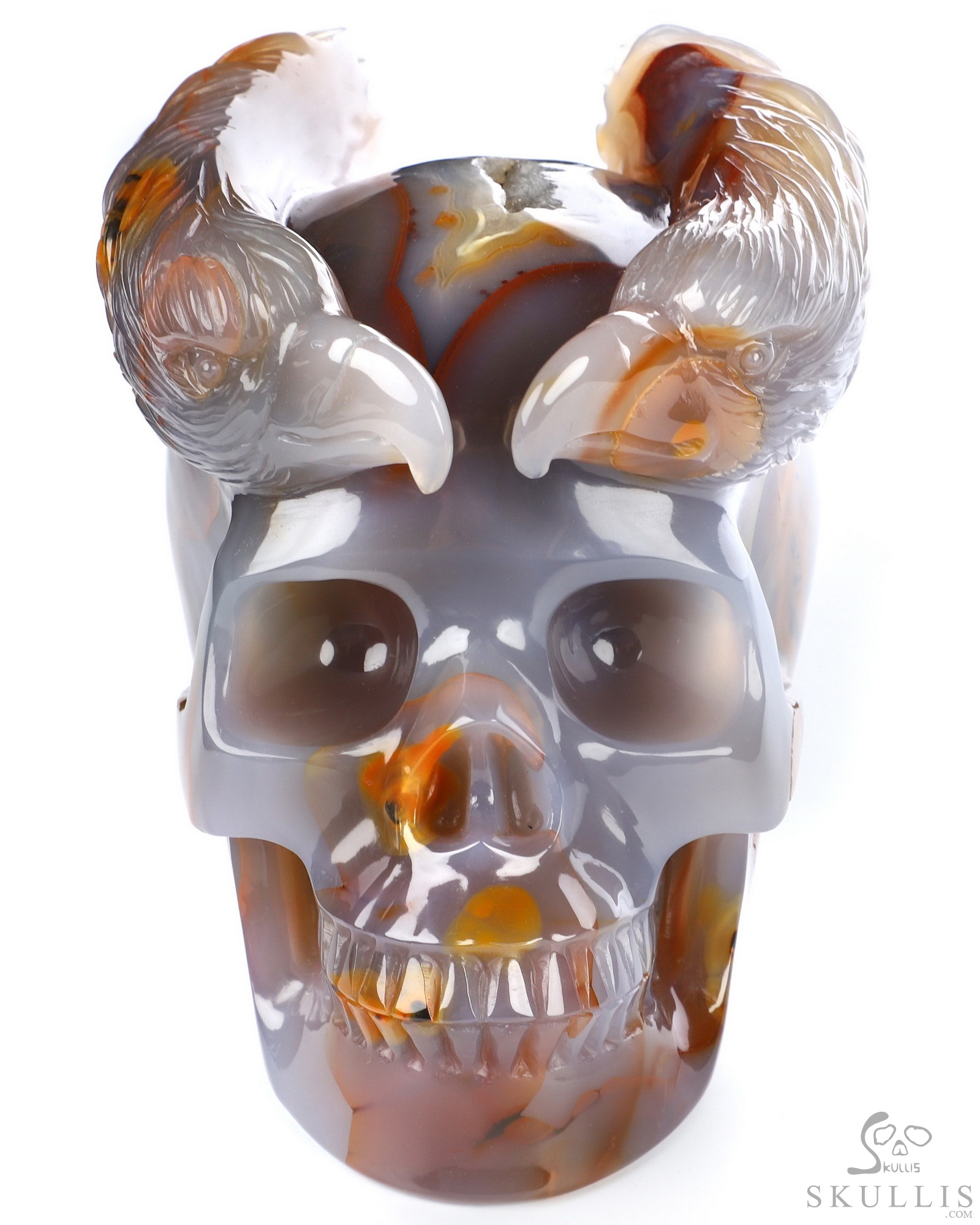 5.0" Premium Brazilian Agate Hand Carved Crystal Skull and Eagle Sculpture, Crystal Healing