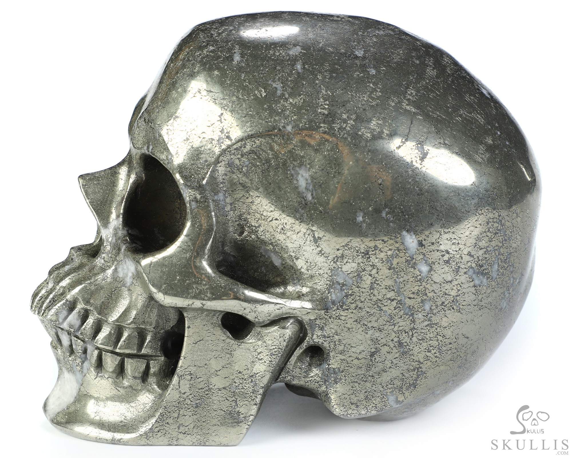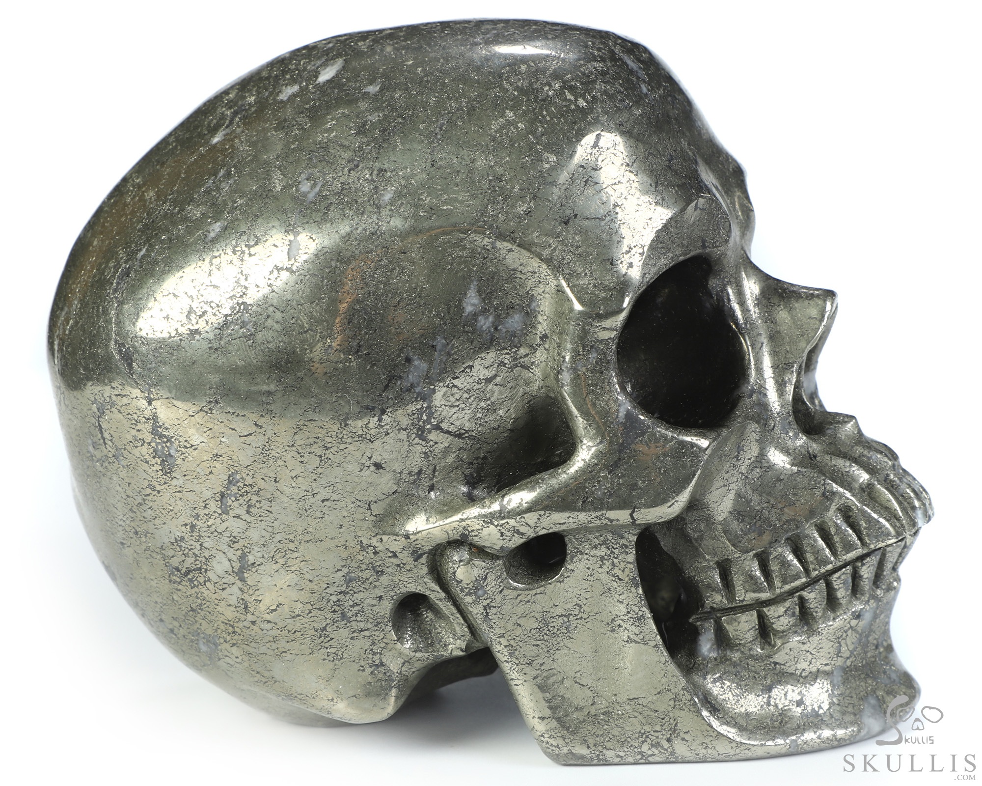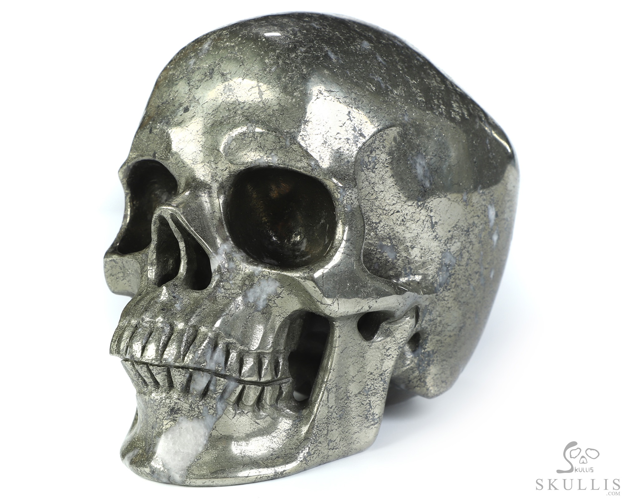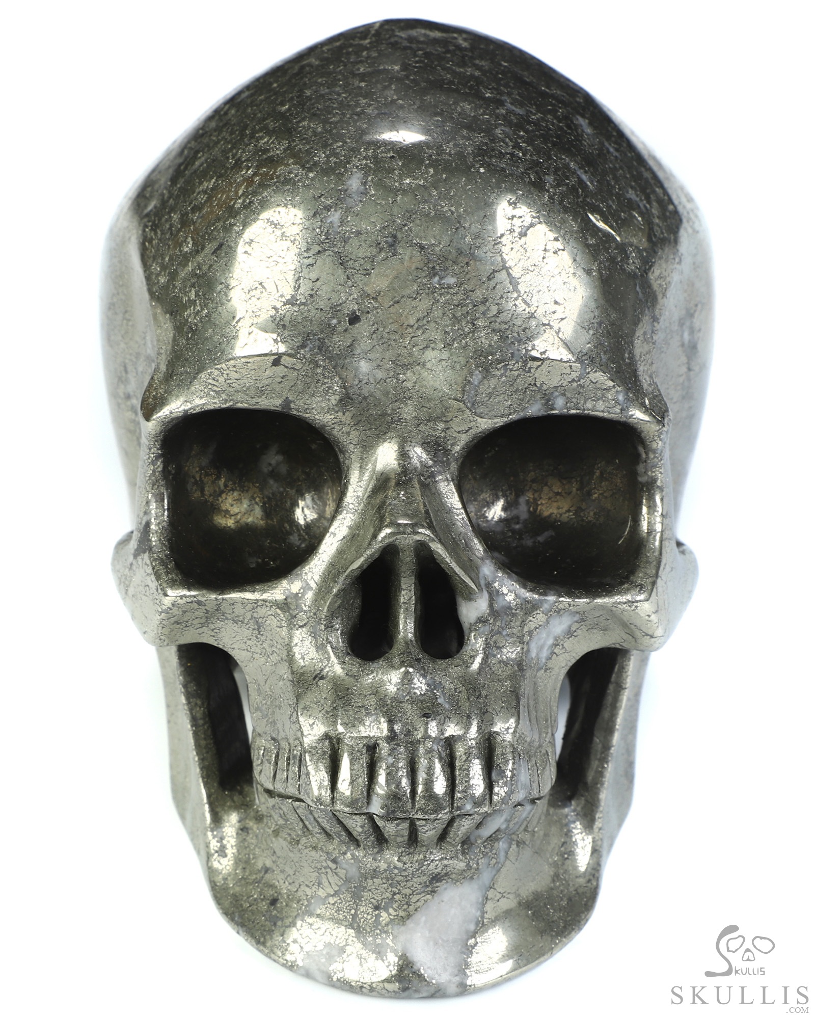 5.0" Pyrite Hand Carved Crystal Skull, Super Realistic, Crystal Healing