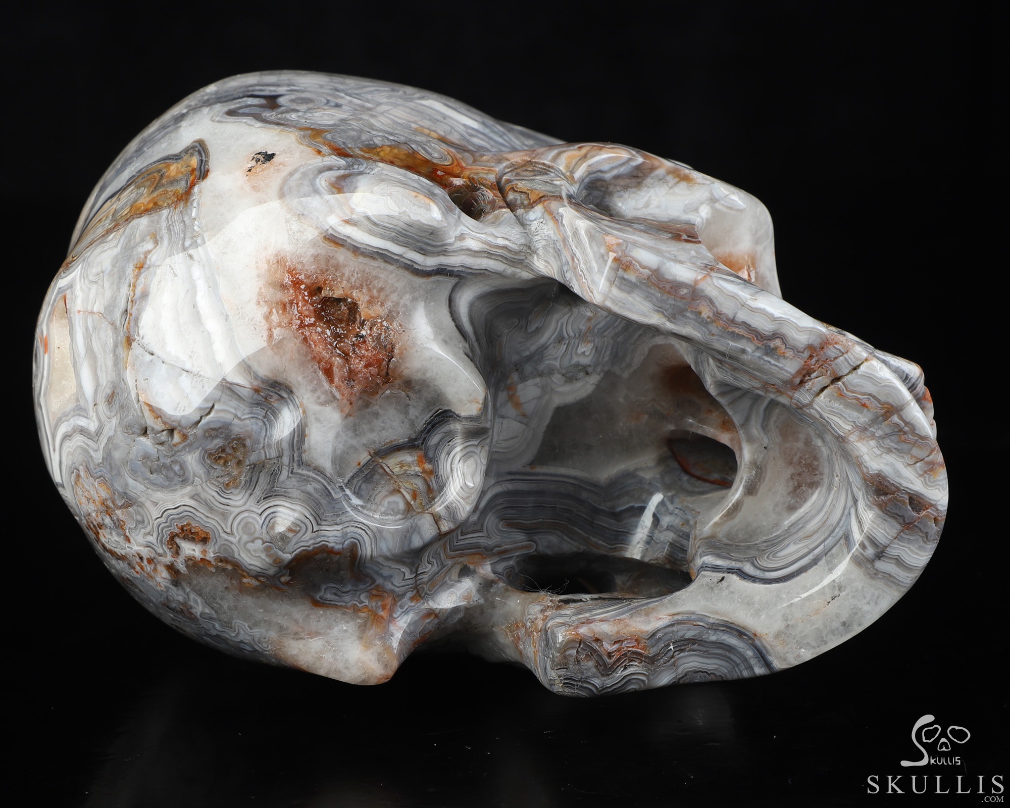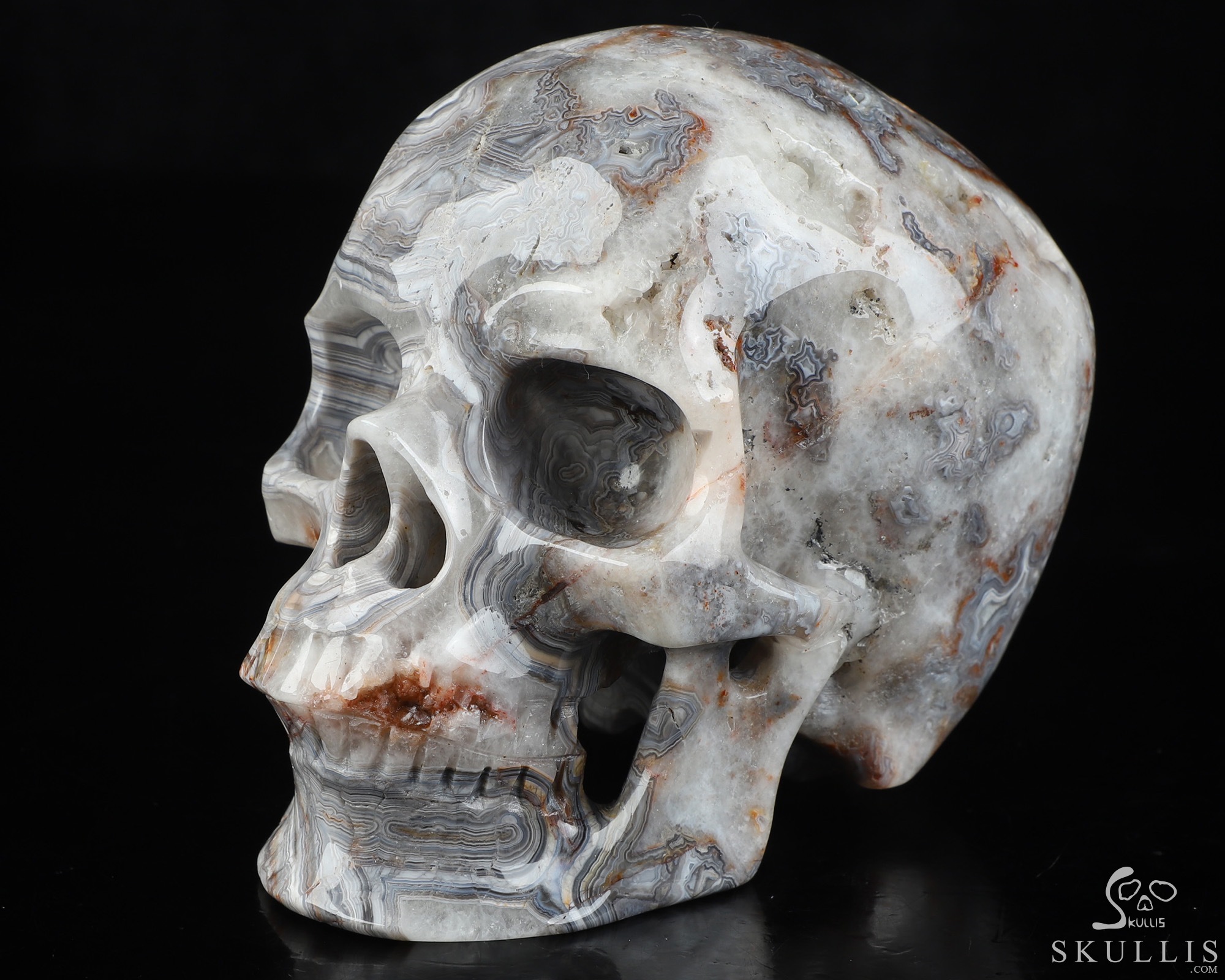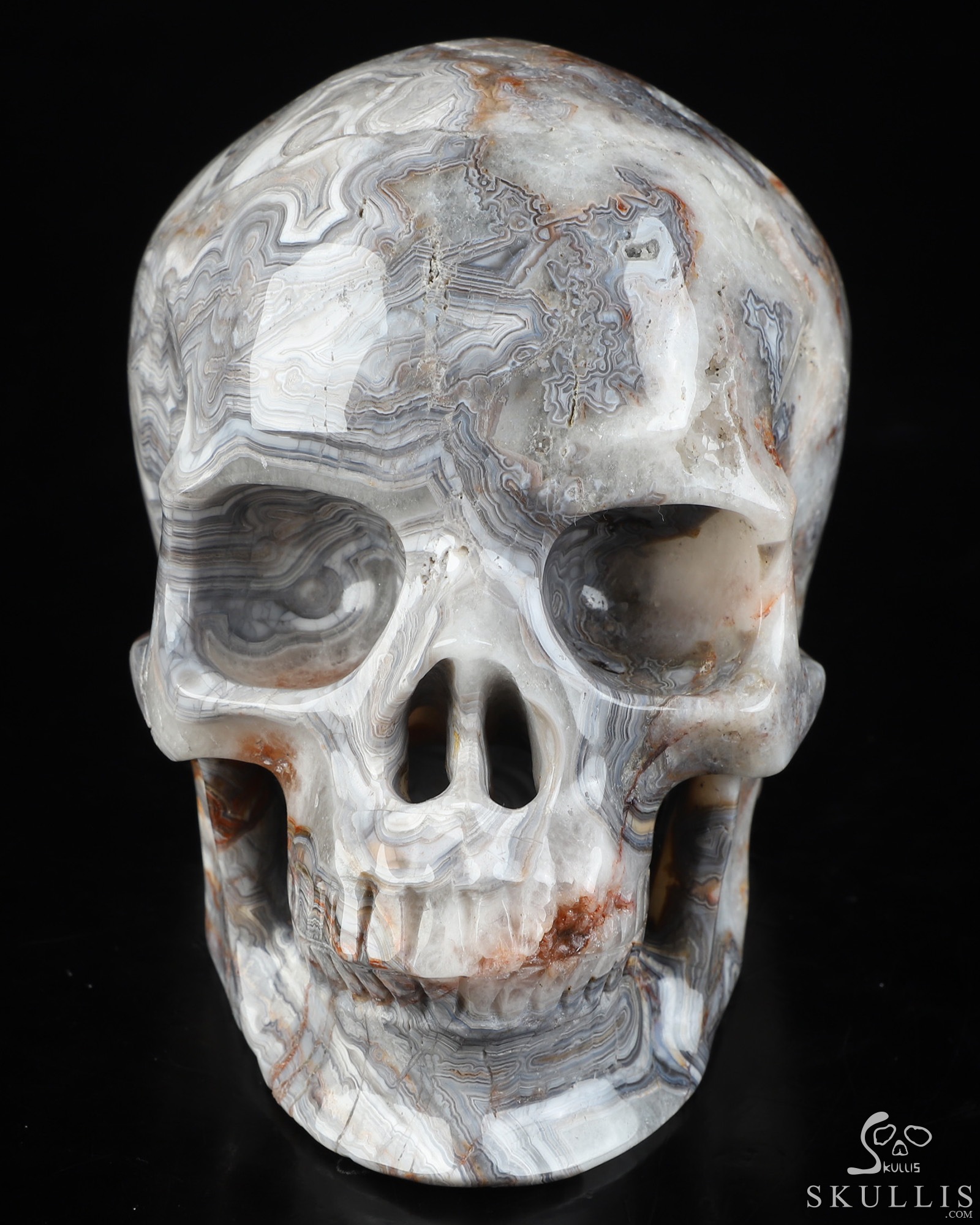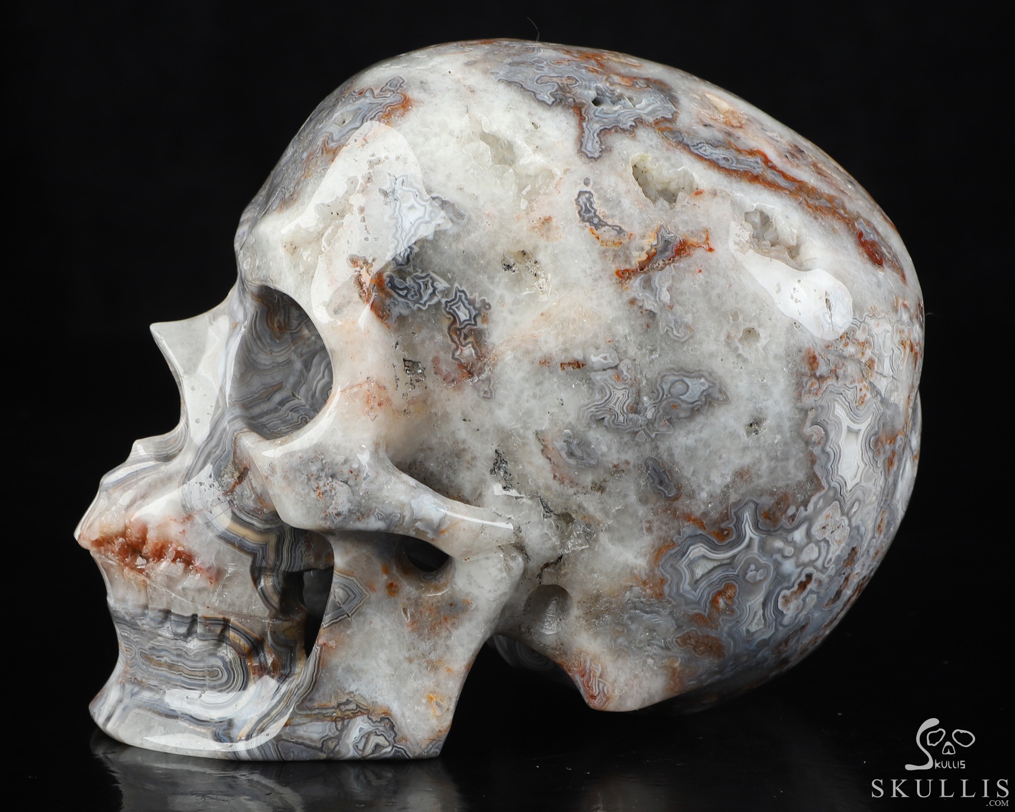 5.0" Red Crazy Lace Agate Hand Carved Crystal Skull, Super Realistic, Crystal Healing