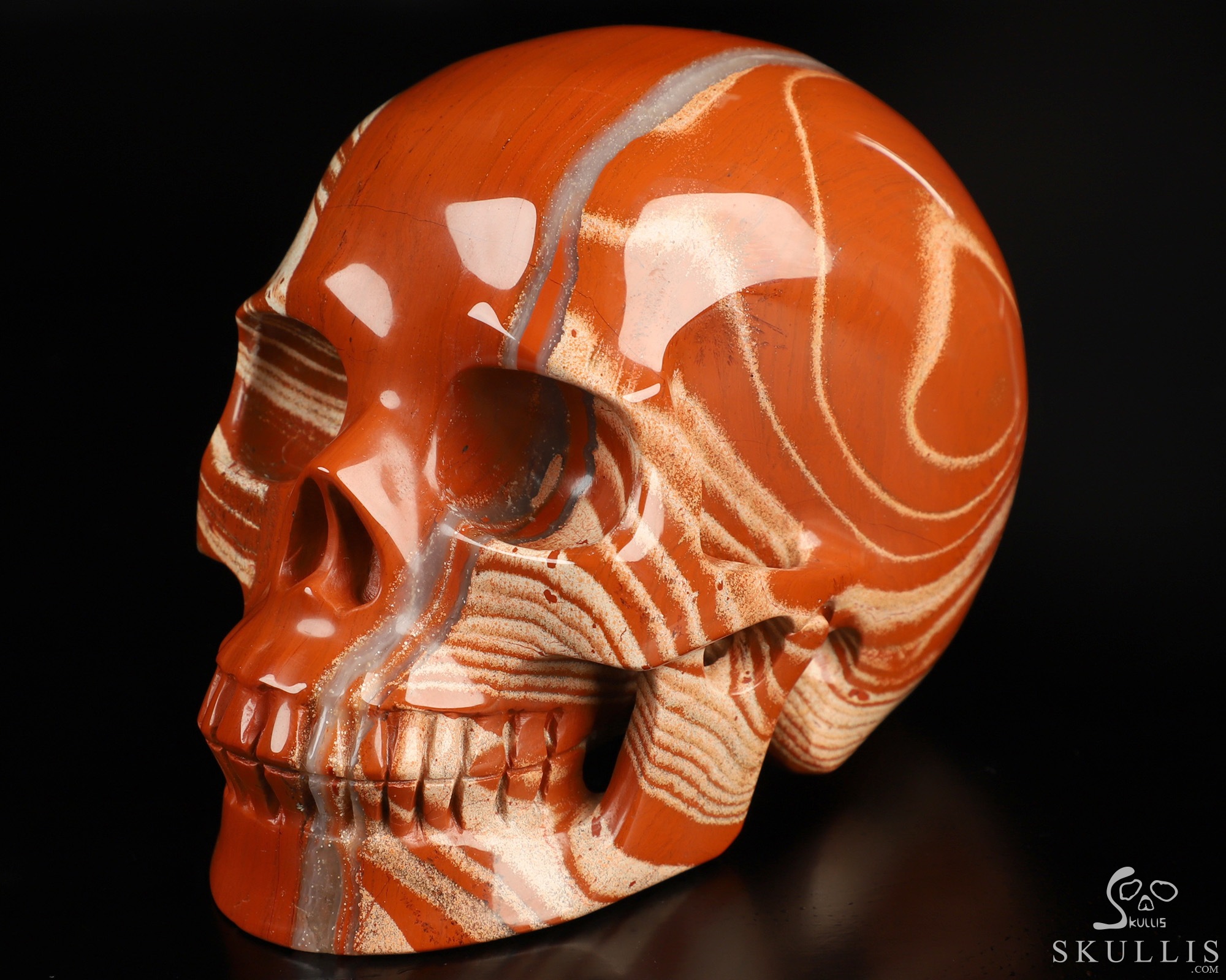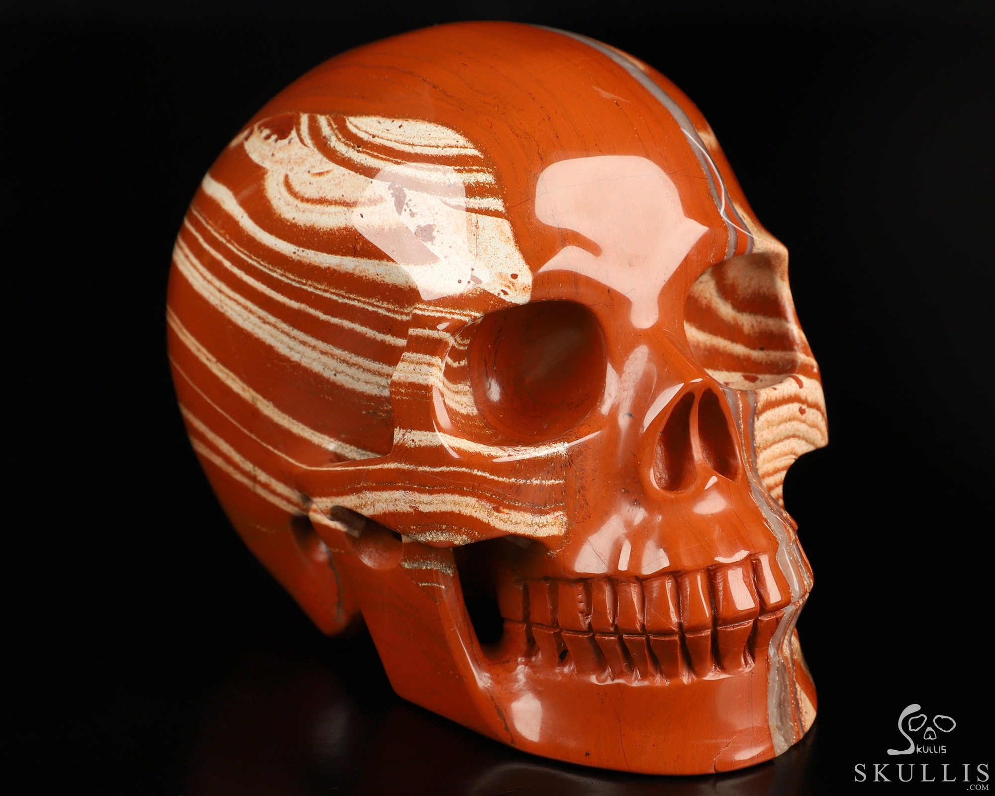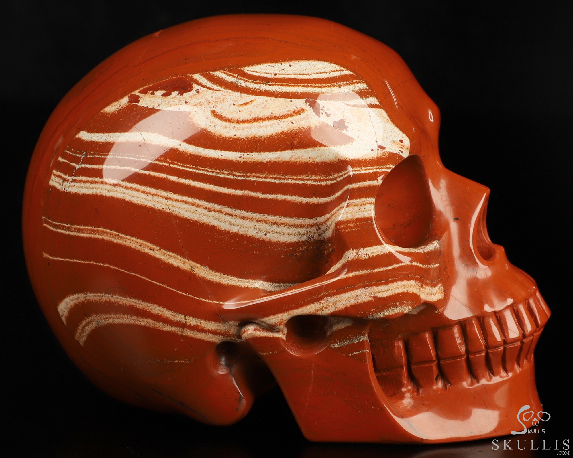 5.0" Red Jasper Hand Carved Crystal Skull, Realistic, Crystal Healing