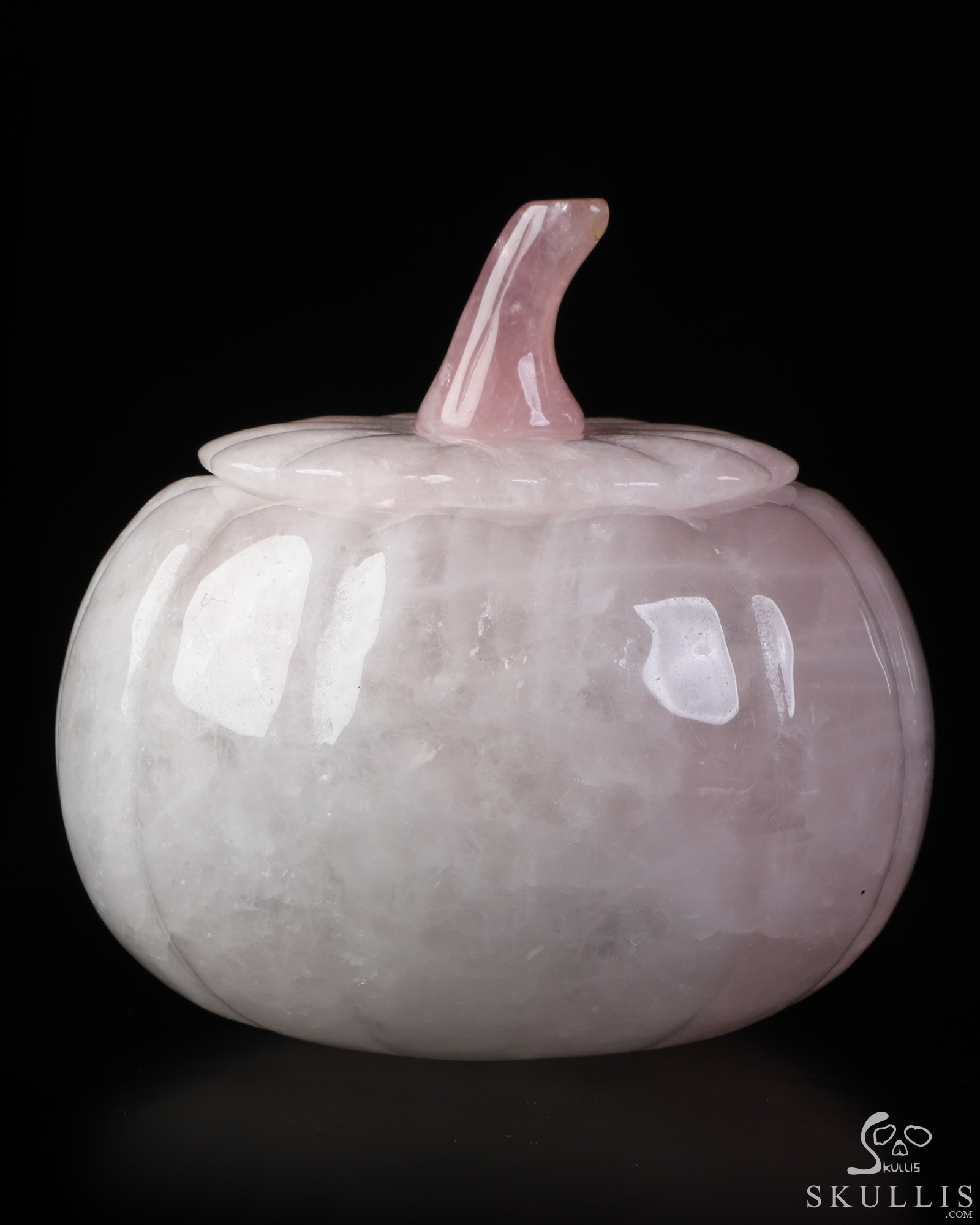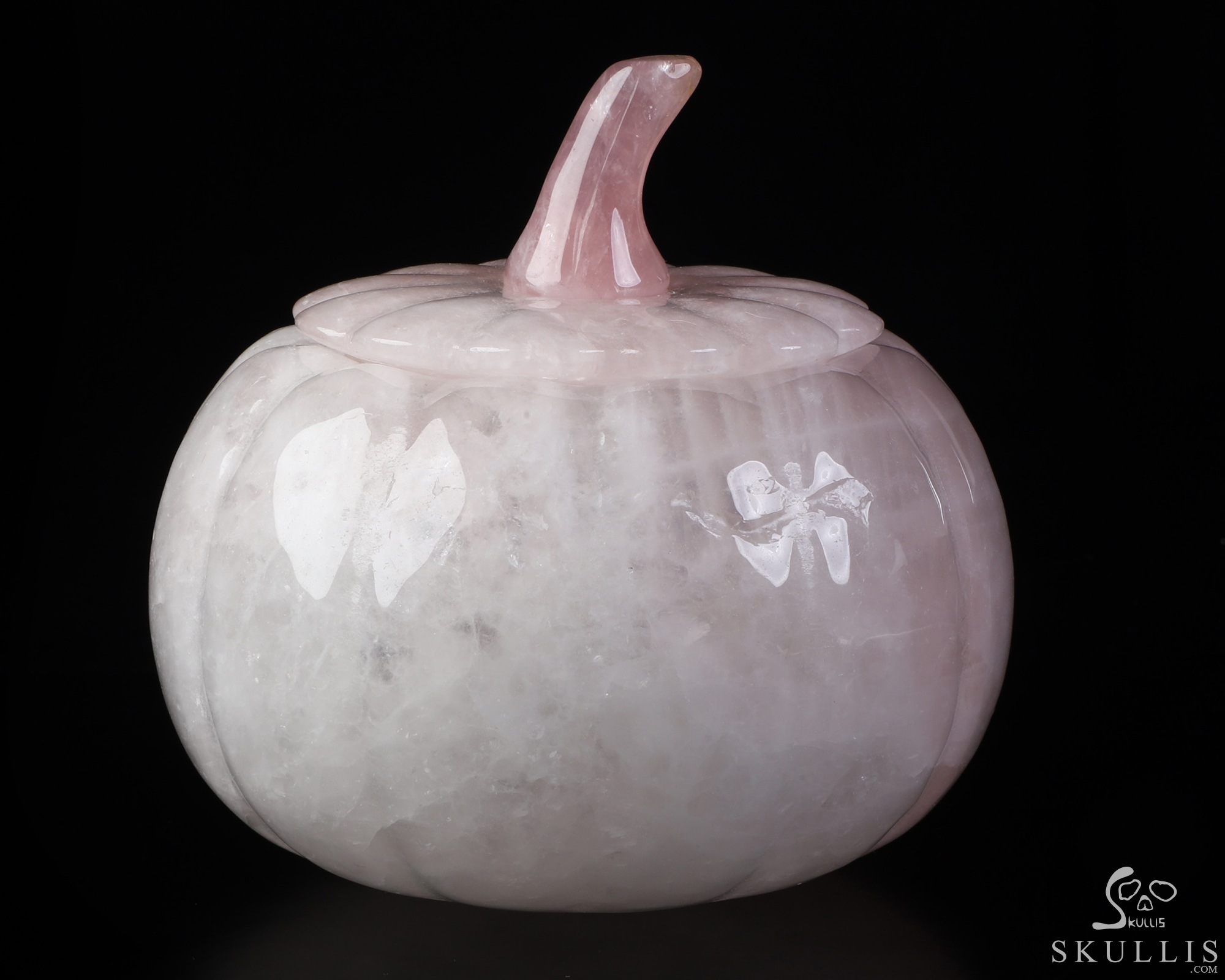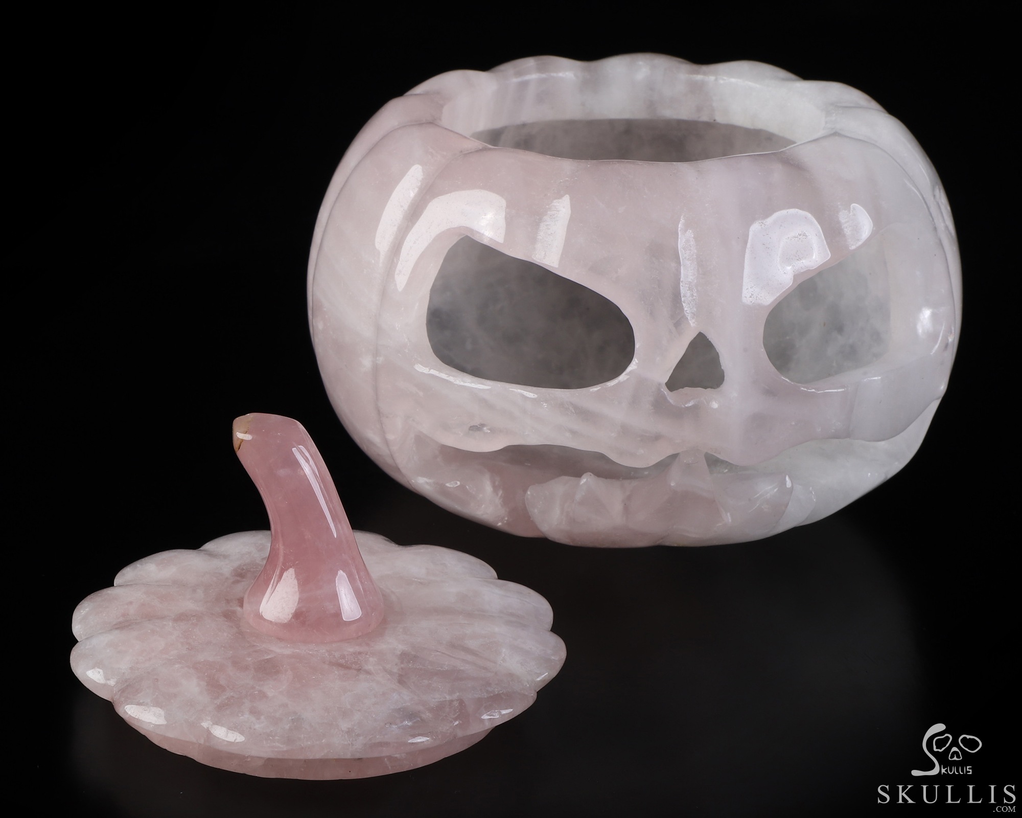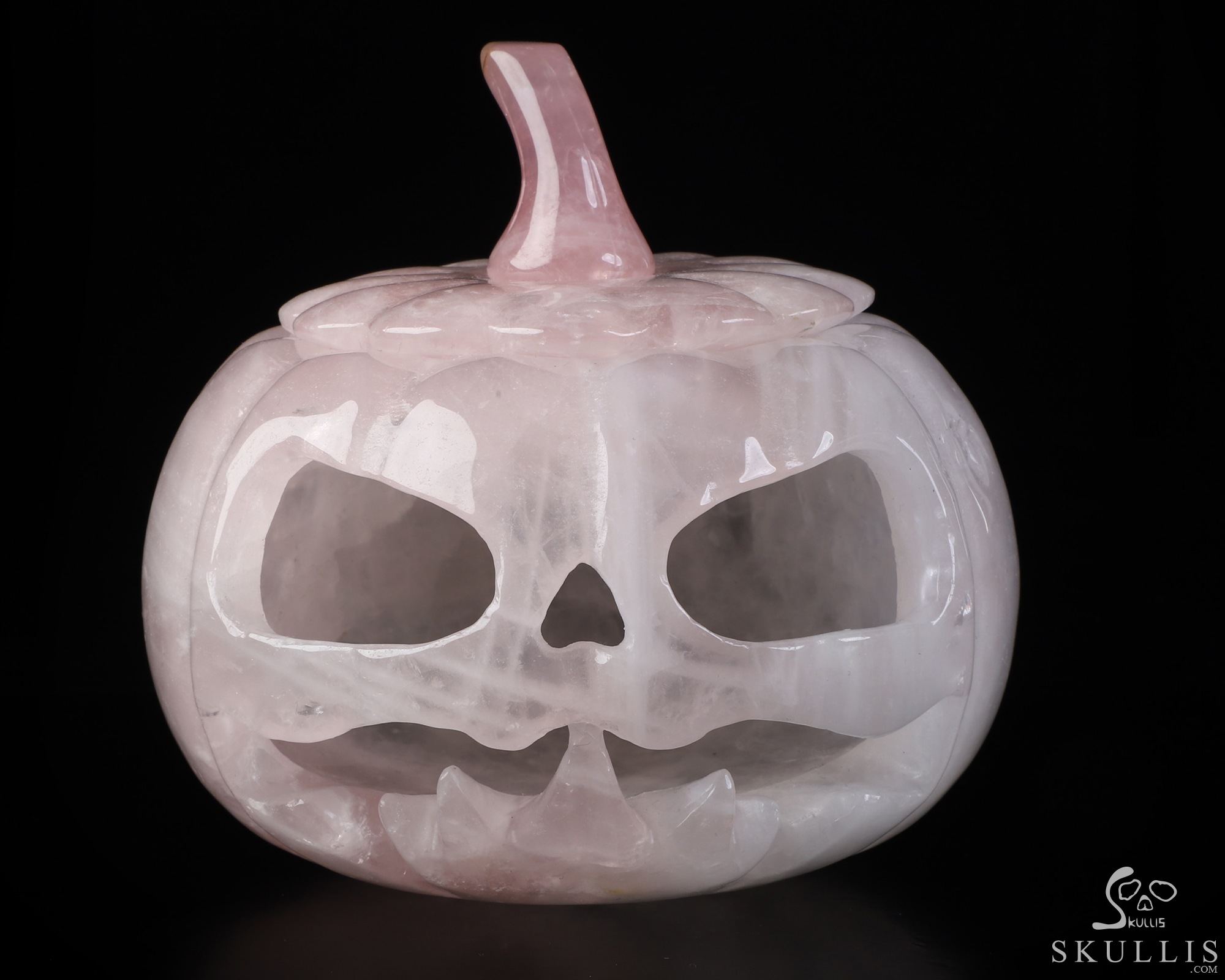 5.0" Rose Quartz Hand Carved Hollow Pumpkin Crystal Skull Sculpture, Crystal Healing