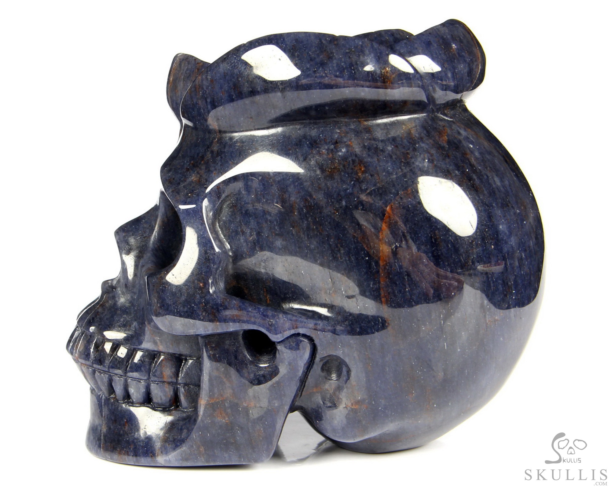 4.0" Royal Dumortierite Hand Carved Crystal Skull, Super Realistic, Crystal Healing