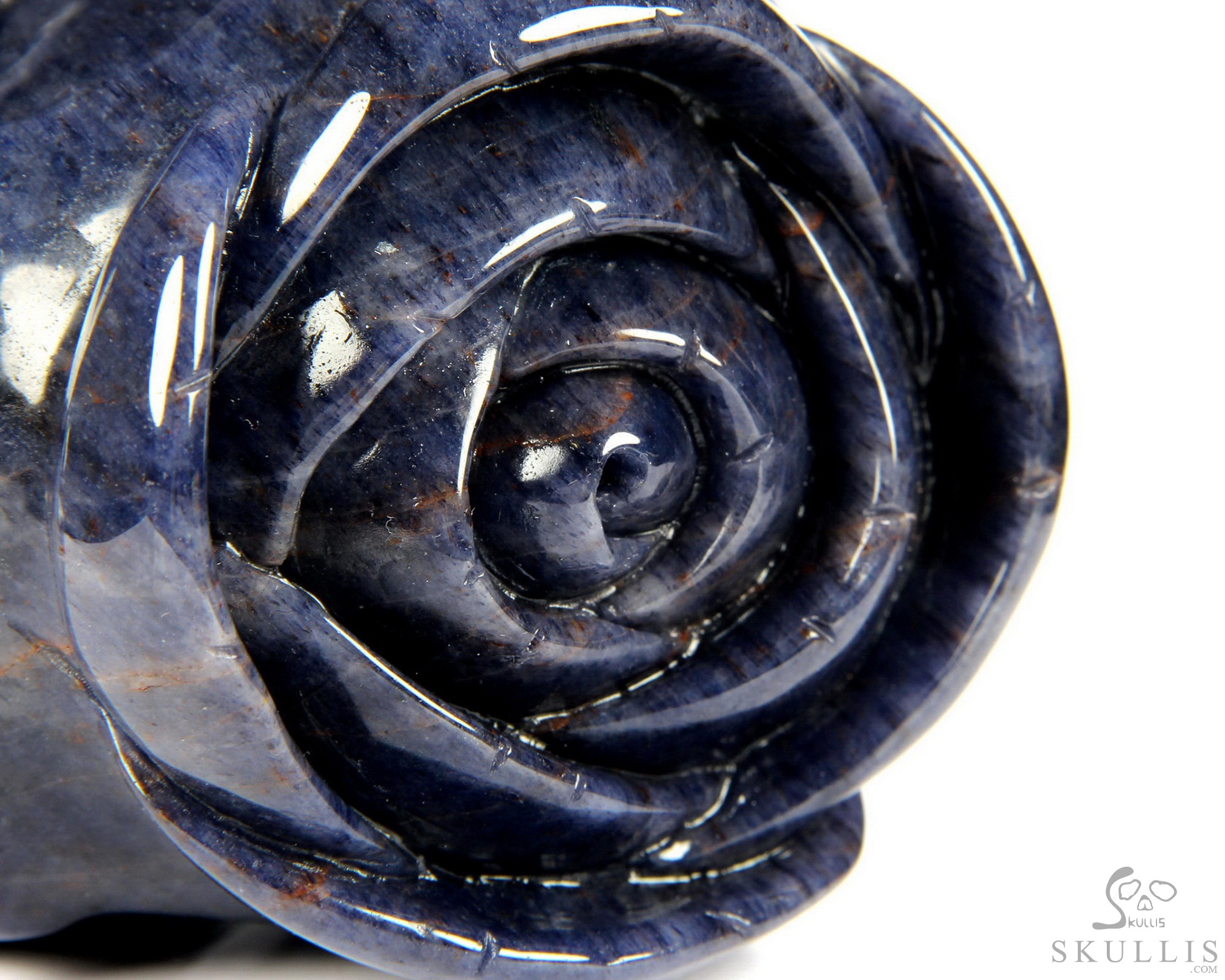 5.0" Royal Dumortierite Hand Carved Crystal Skull and Flower Fine Art Sculpture, Crystal Healing