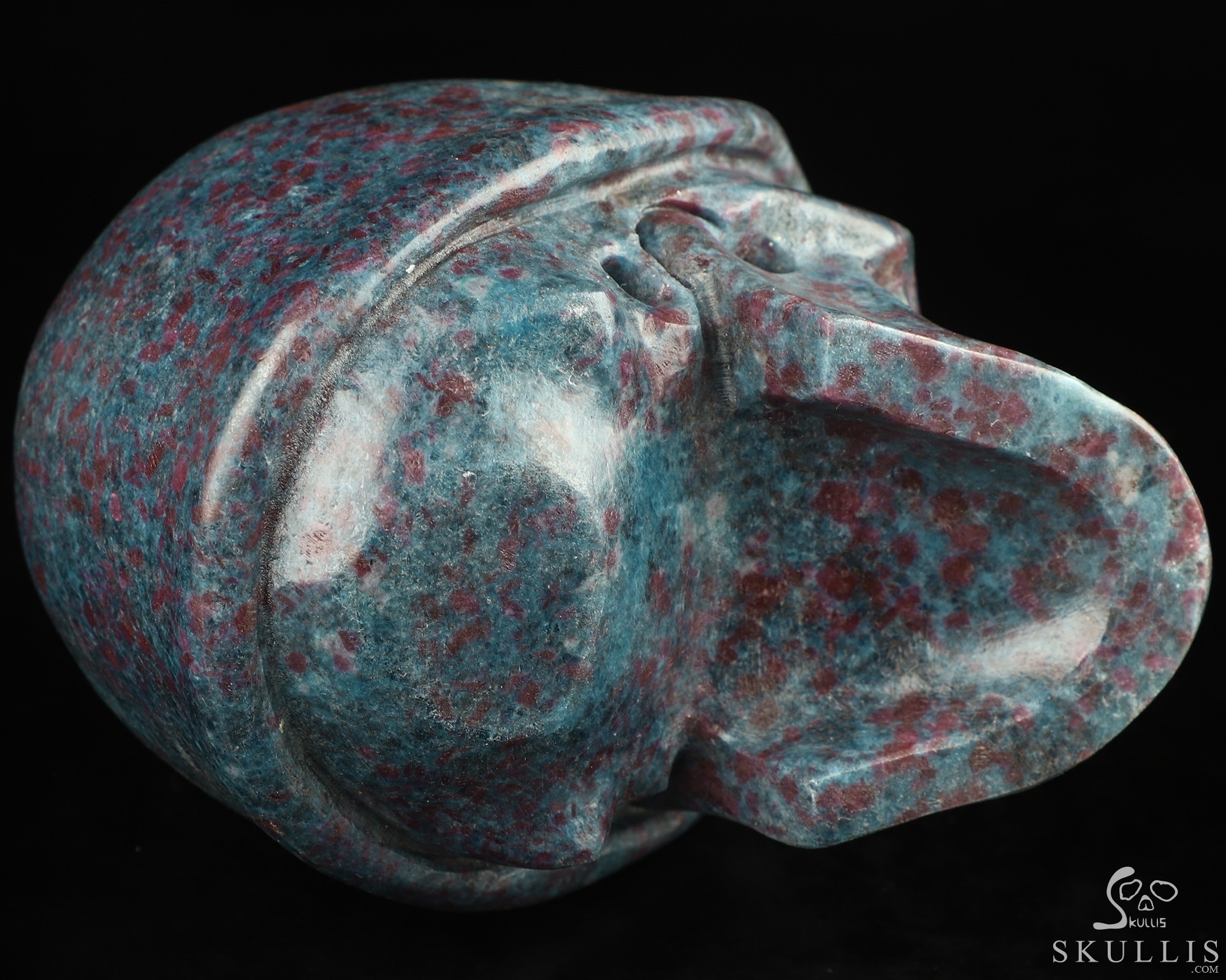 You are looking at a Ruby Kyanite skull. The skull is 5 inches from front to back.