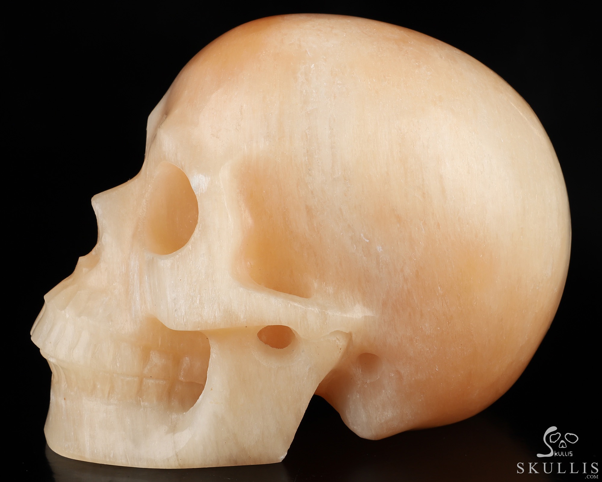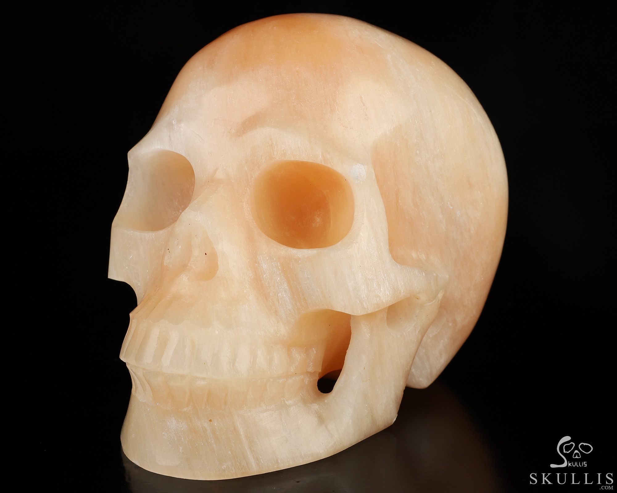 5.0" Selenite Hand Carved Crystal Skull, Realistic, Crystal Healing