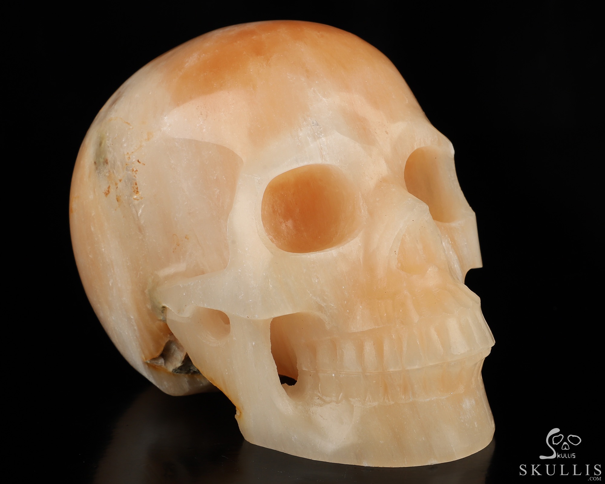 4.4" Selenite Hand Carved Crystal Skull, Realistic, Crystal Healing