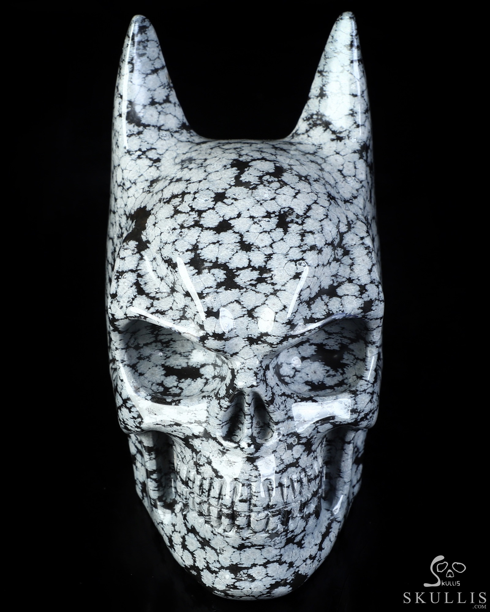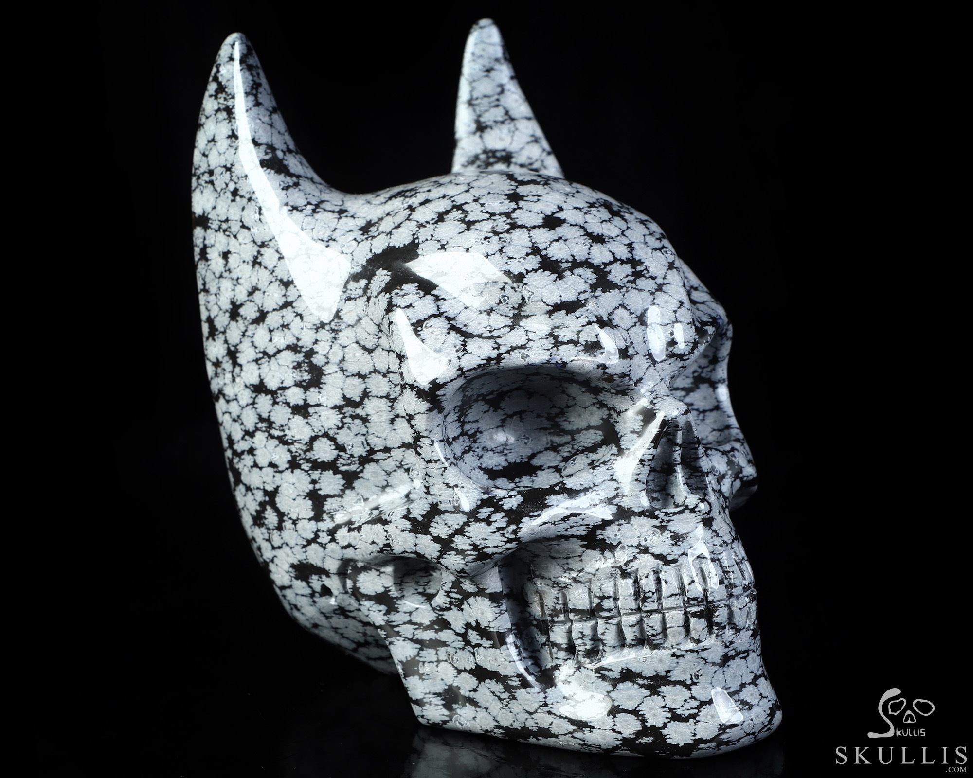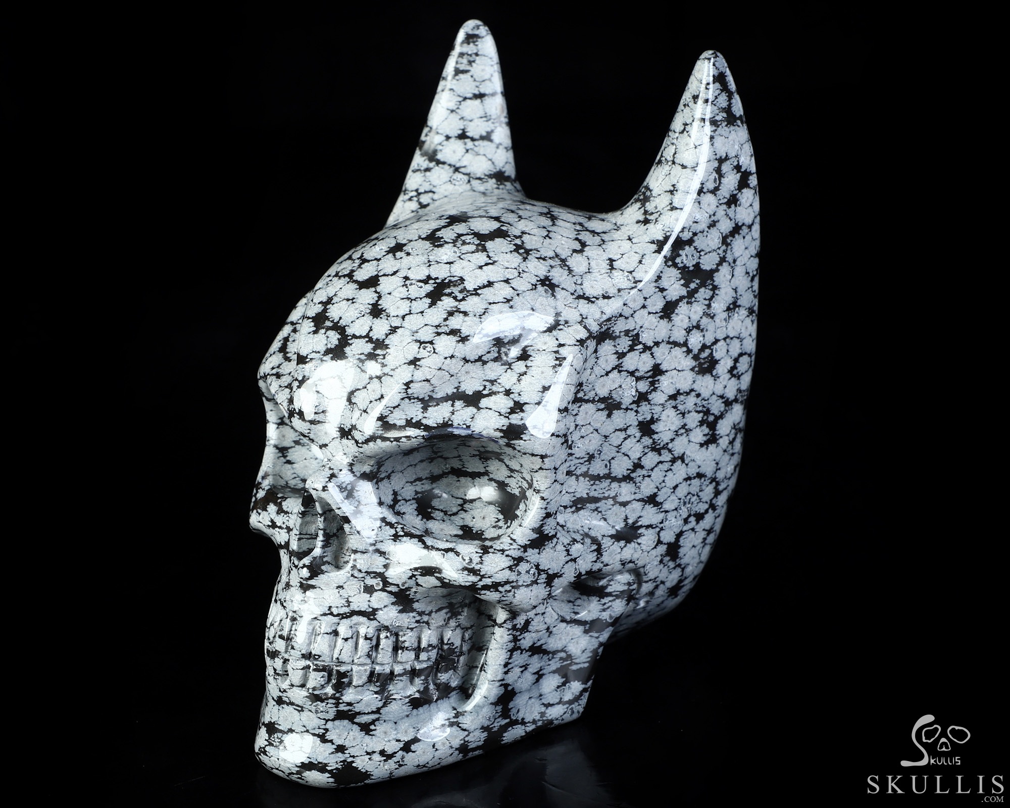 5.0" Snowflake Obsidian Hand Carved Batman Crystal Skull Fine Art Sculpture, Crystal Healing