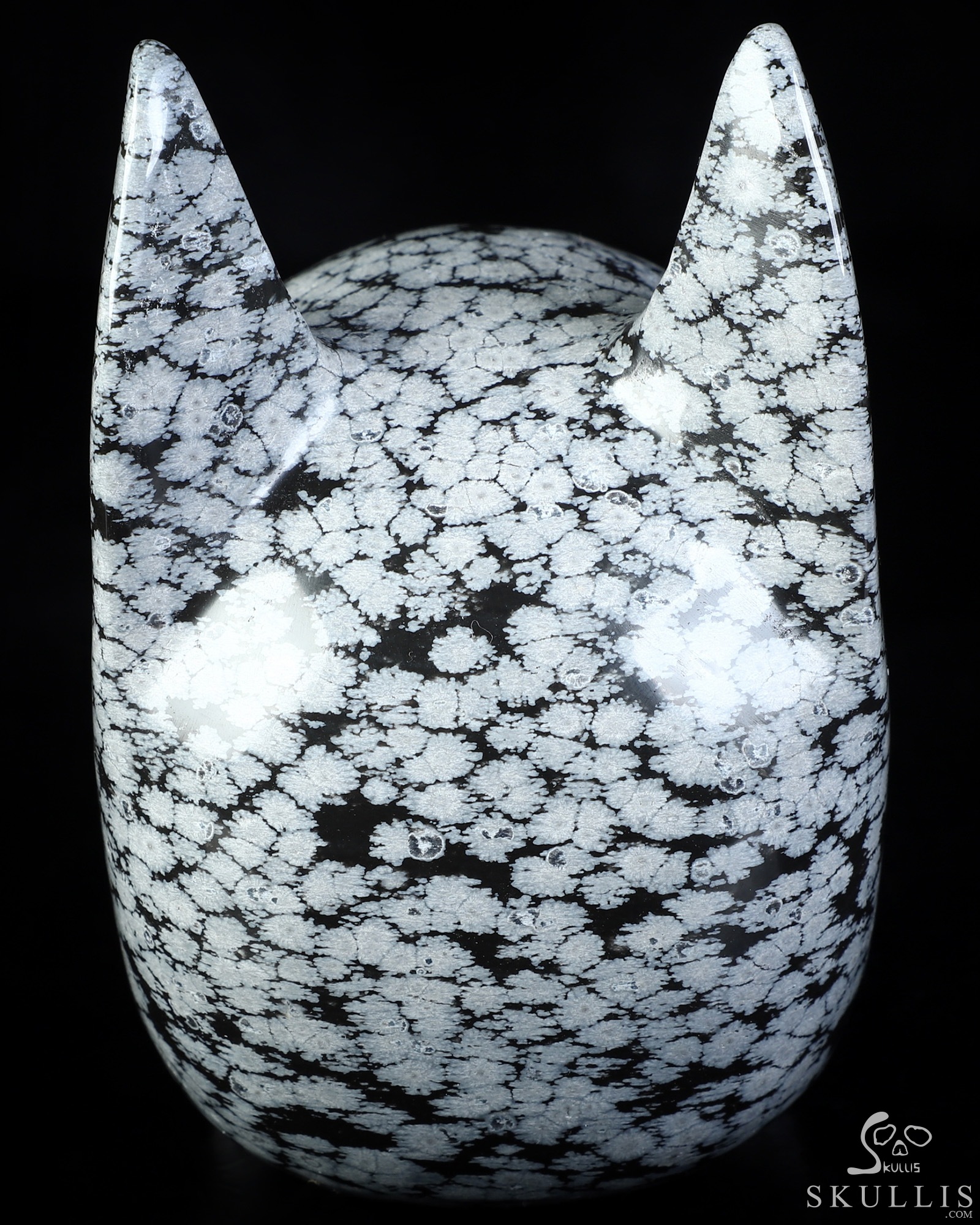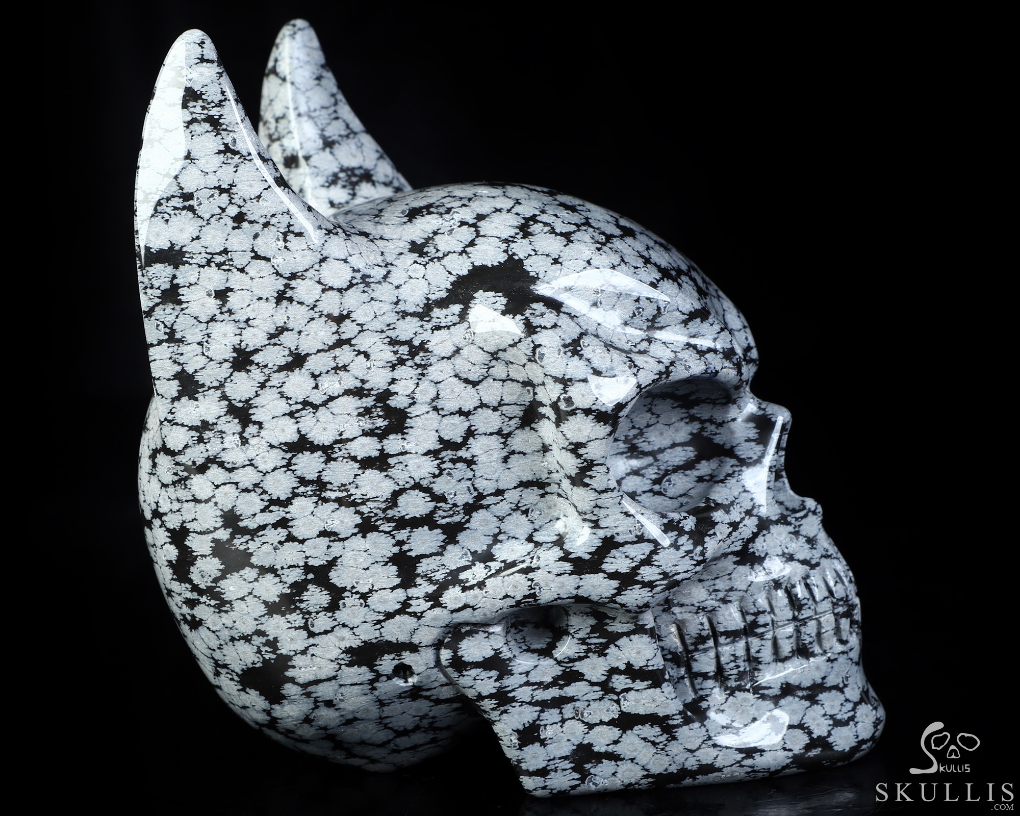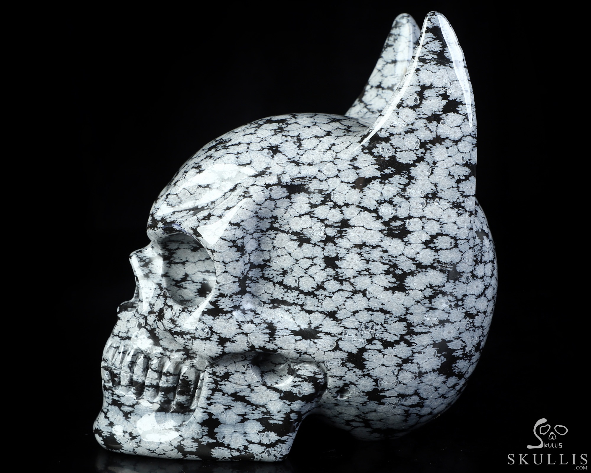 5.0" Snowflake Obsidian Hand Carved Batman Crystal Skull Fine Art Sculpture, Crystal Healing