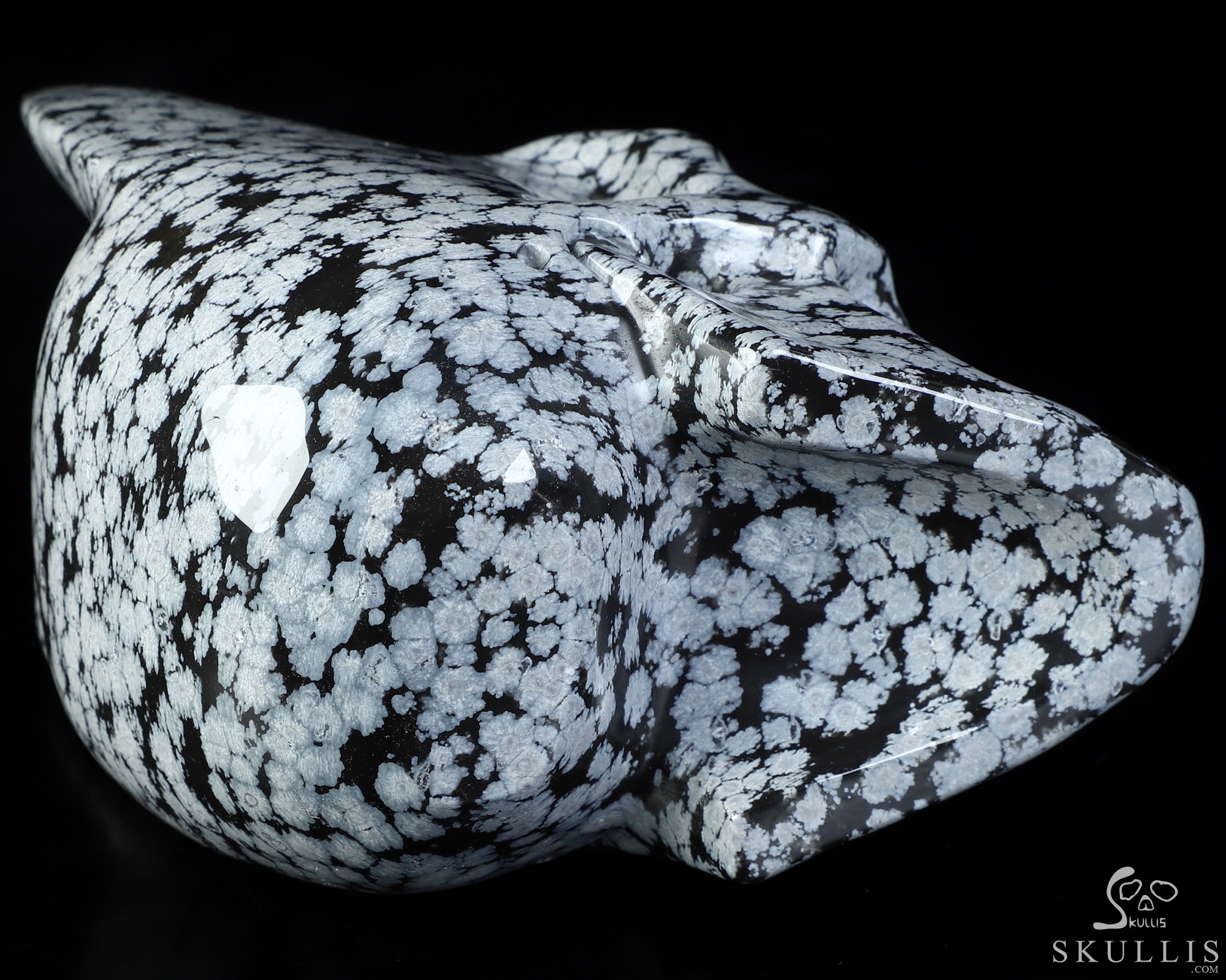 5.0" Snowflake Obsidian Hand Carved Crystal Skull, Super Realistic, Crystal Healing
